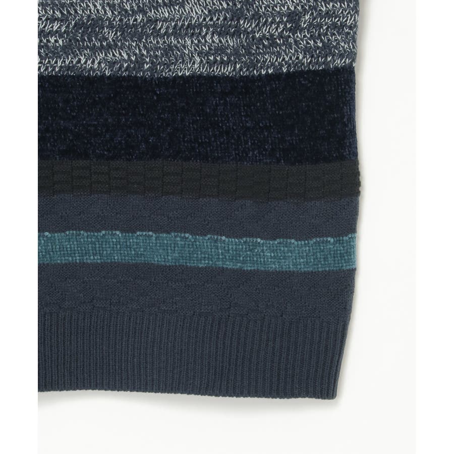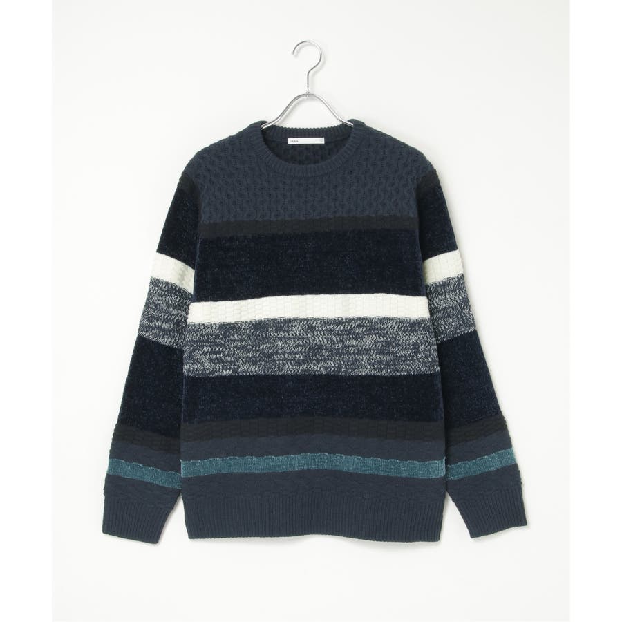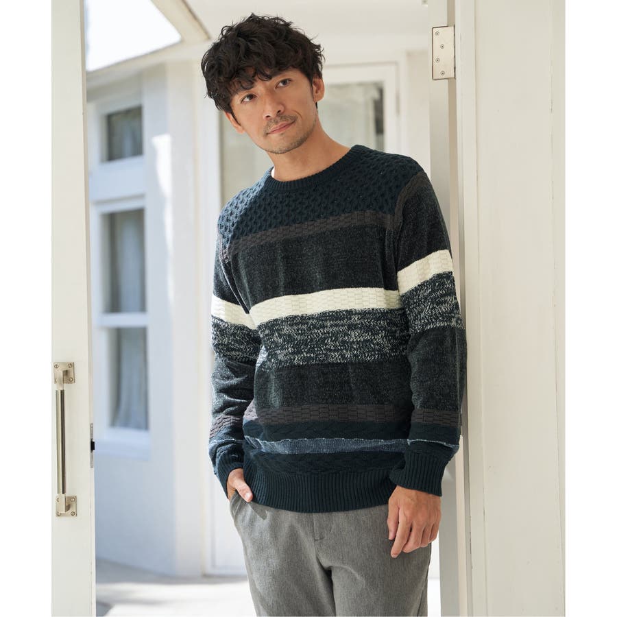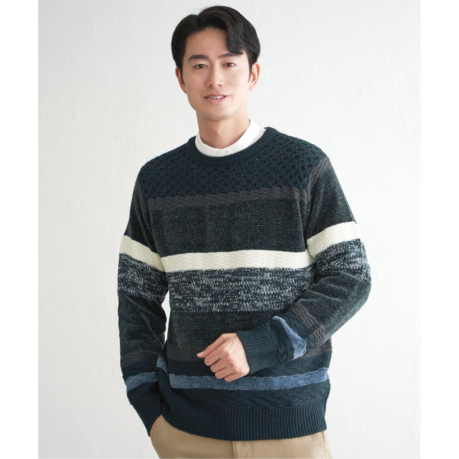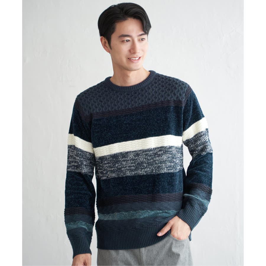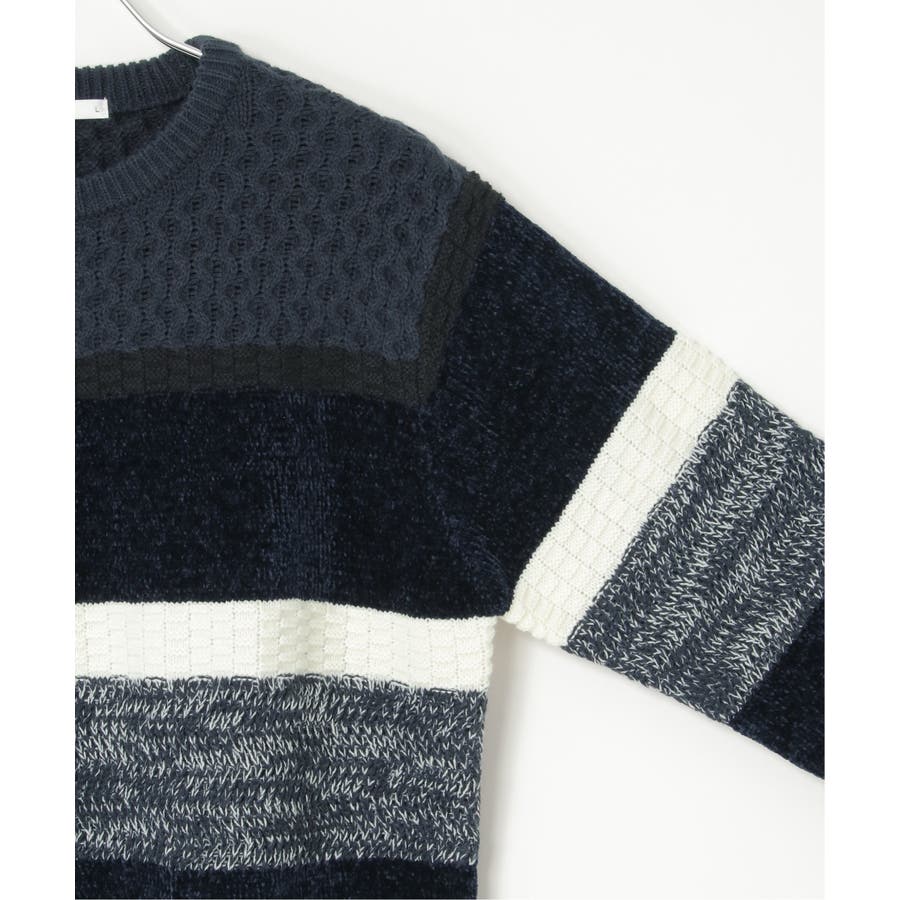 2つの糸を組み合わせた編地変化のボーダーニット。