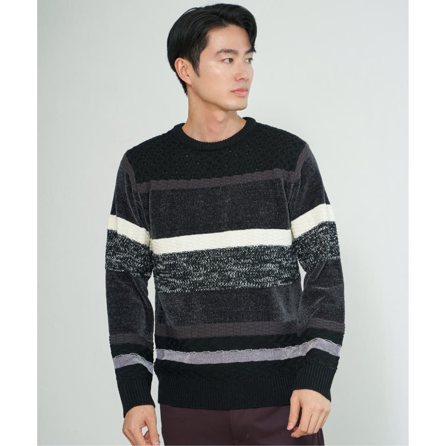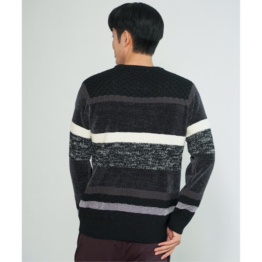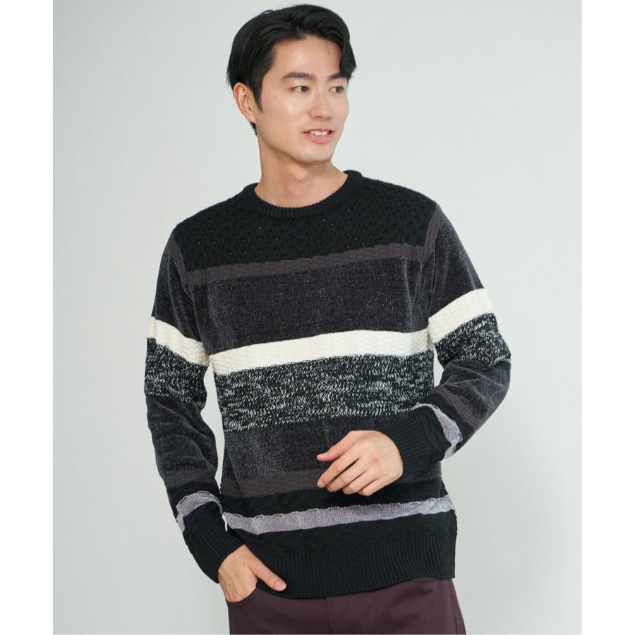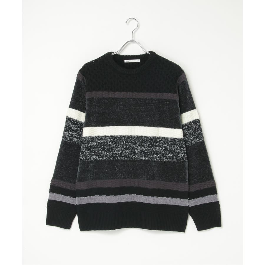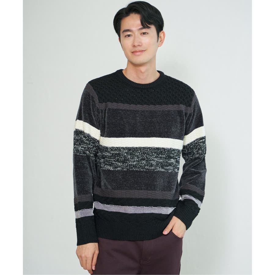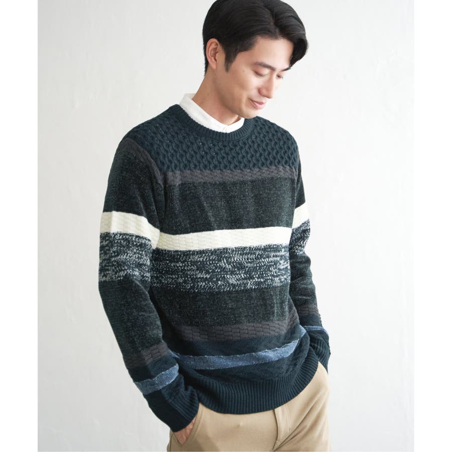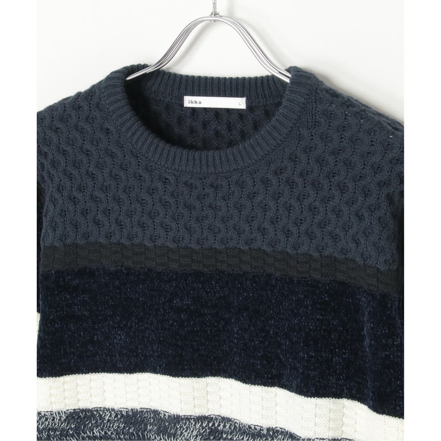 2つの糸を組み合わせた編地変化のボーダーニット。