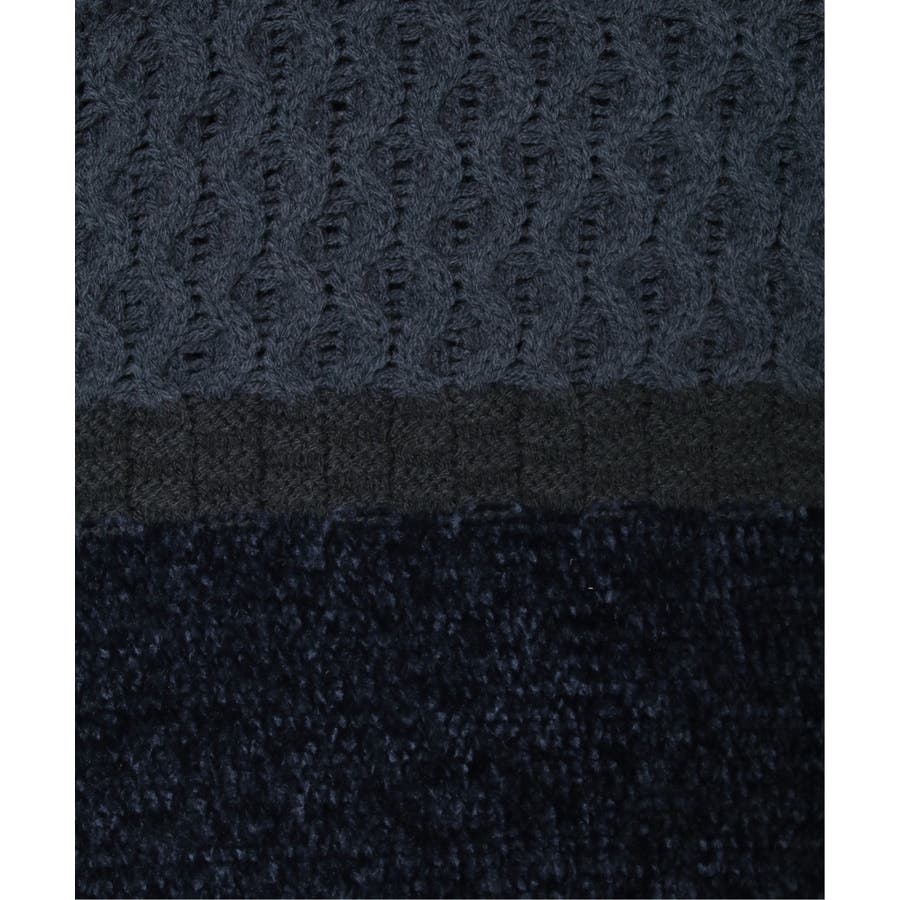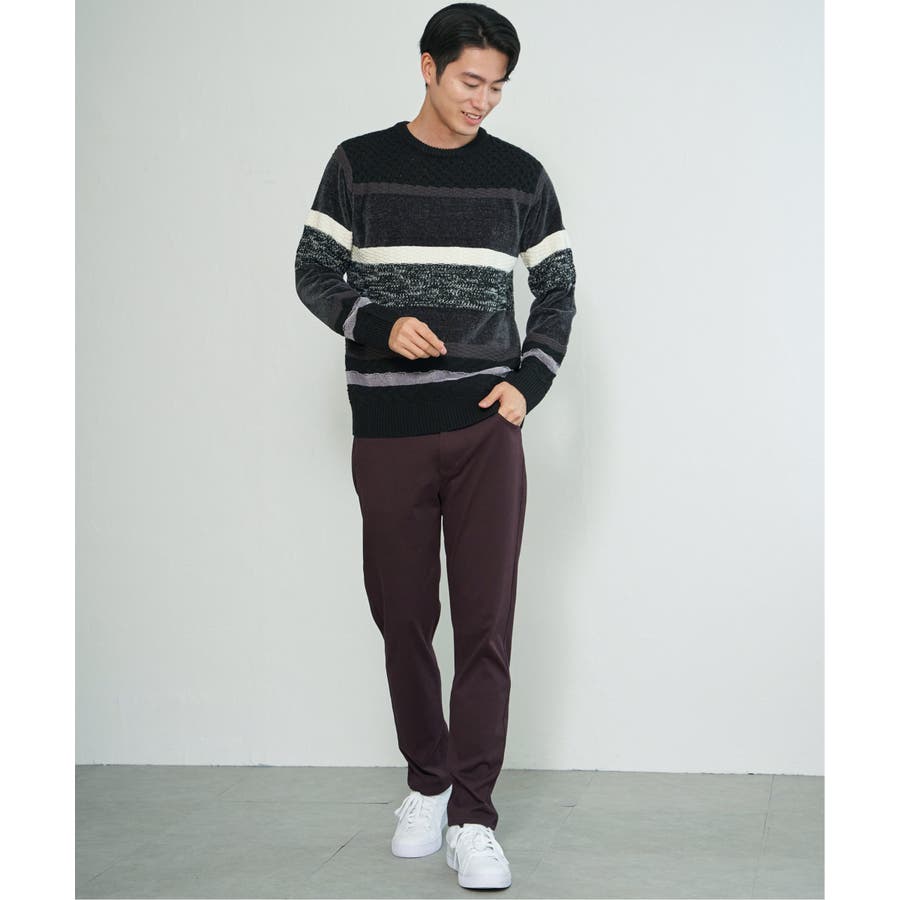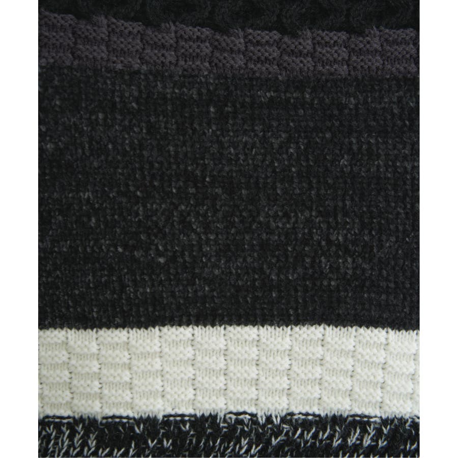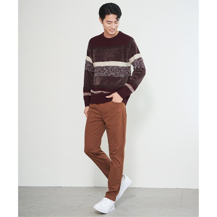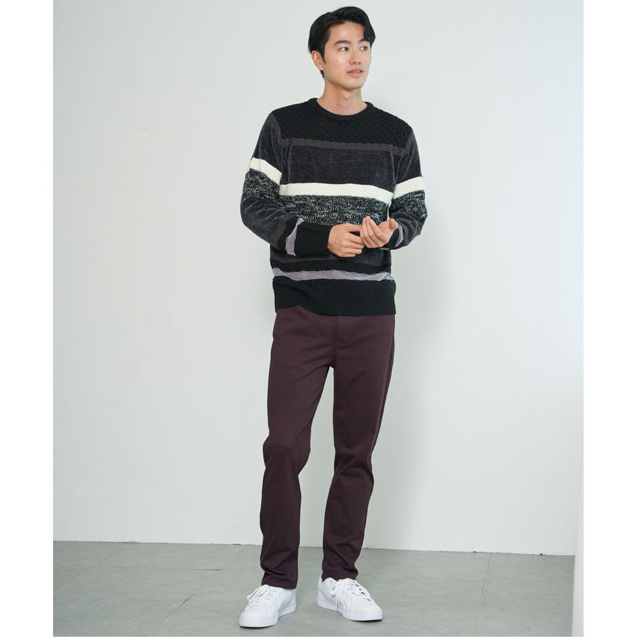 発色の良いモール糸と、汎用性のあるアクリル糸を配色使いしたボーダーニット。