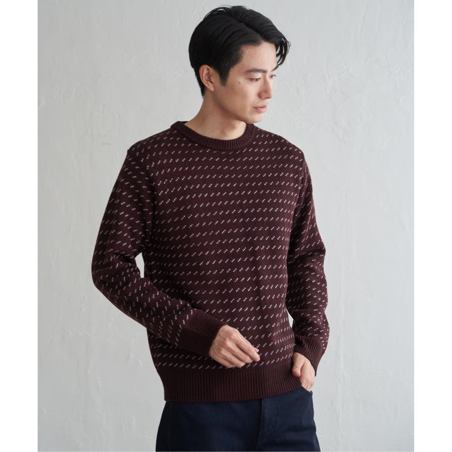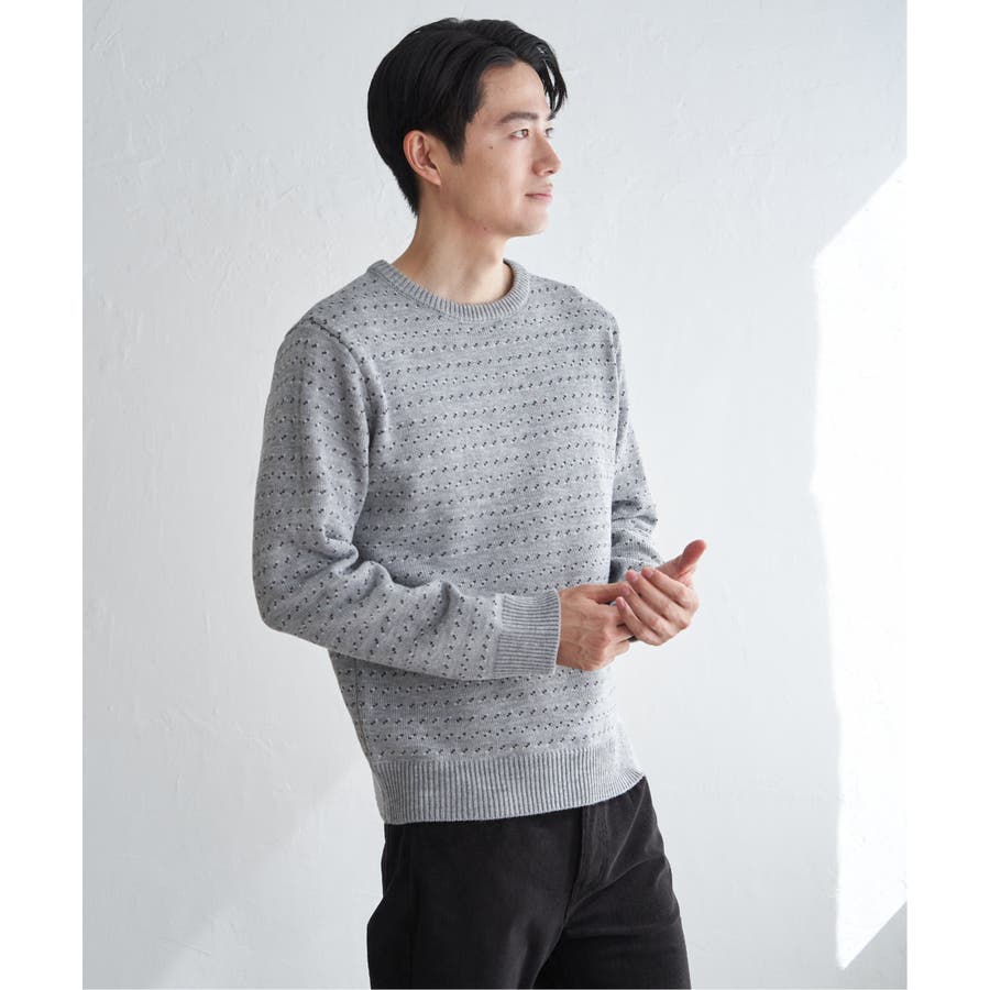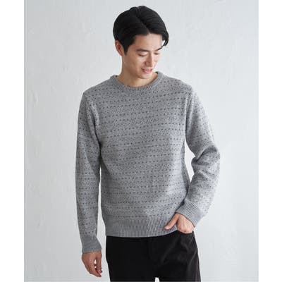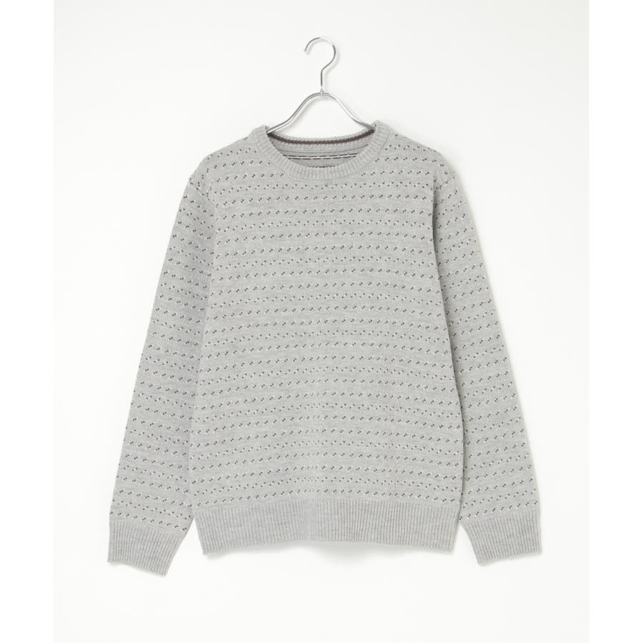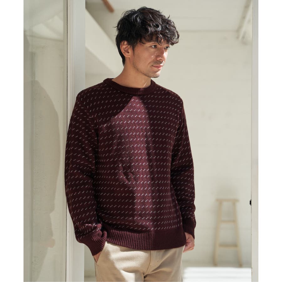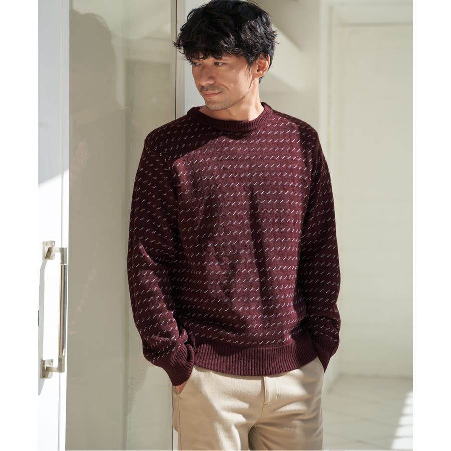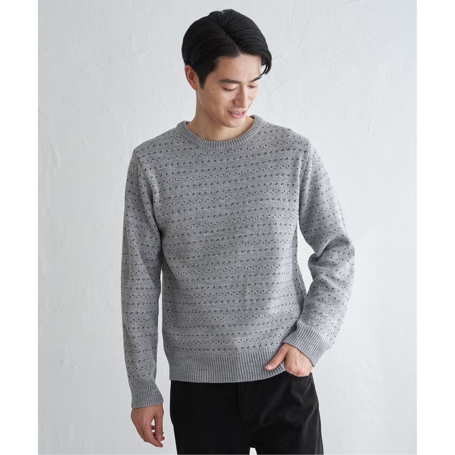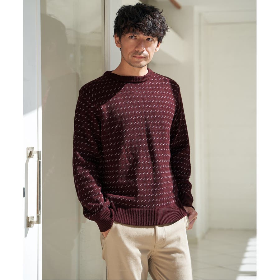 膨らみのあるアクリル糸をジャカード編みしたプルオーバーニット。