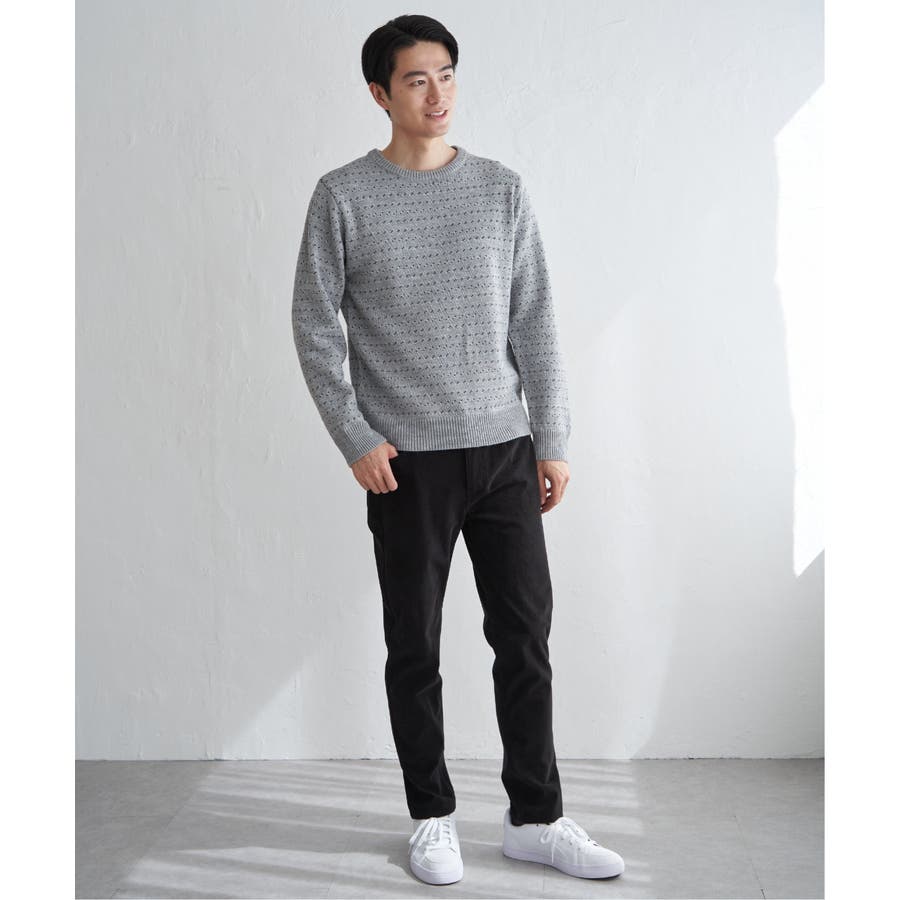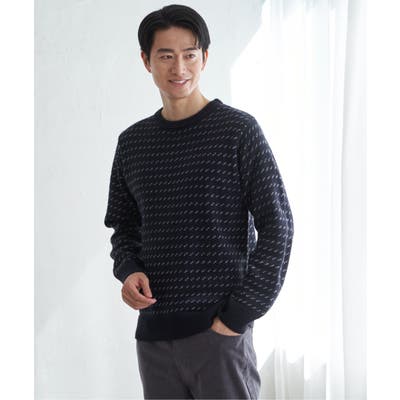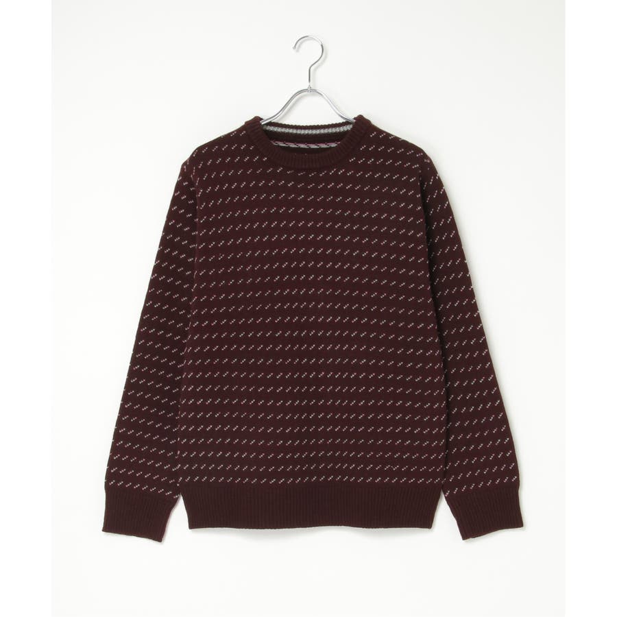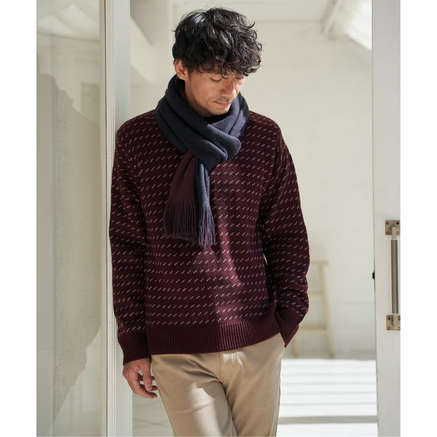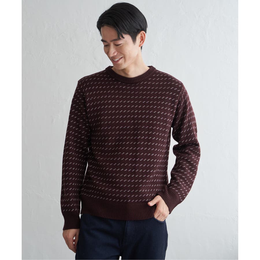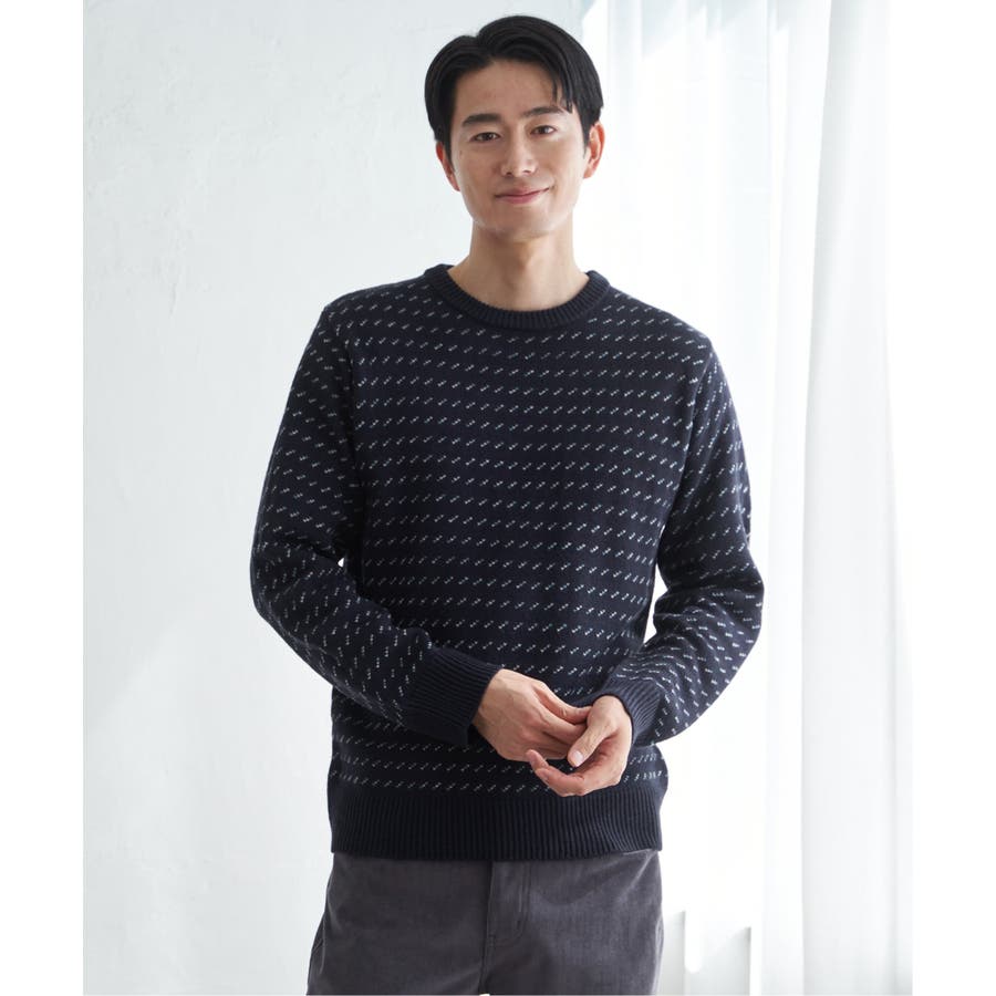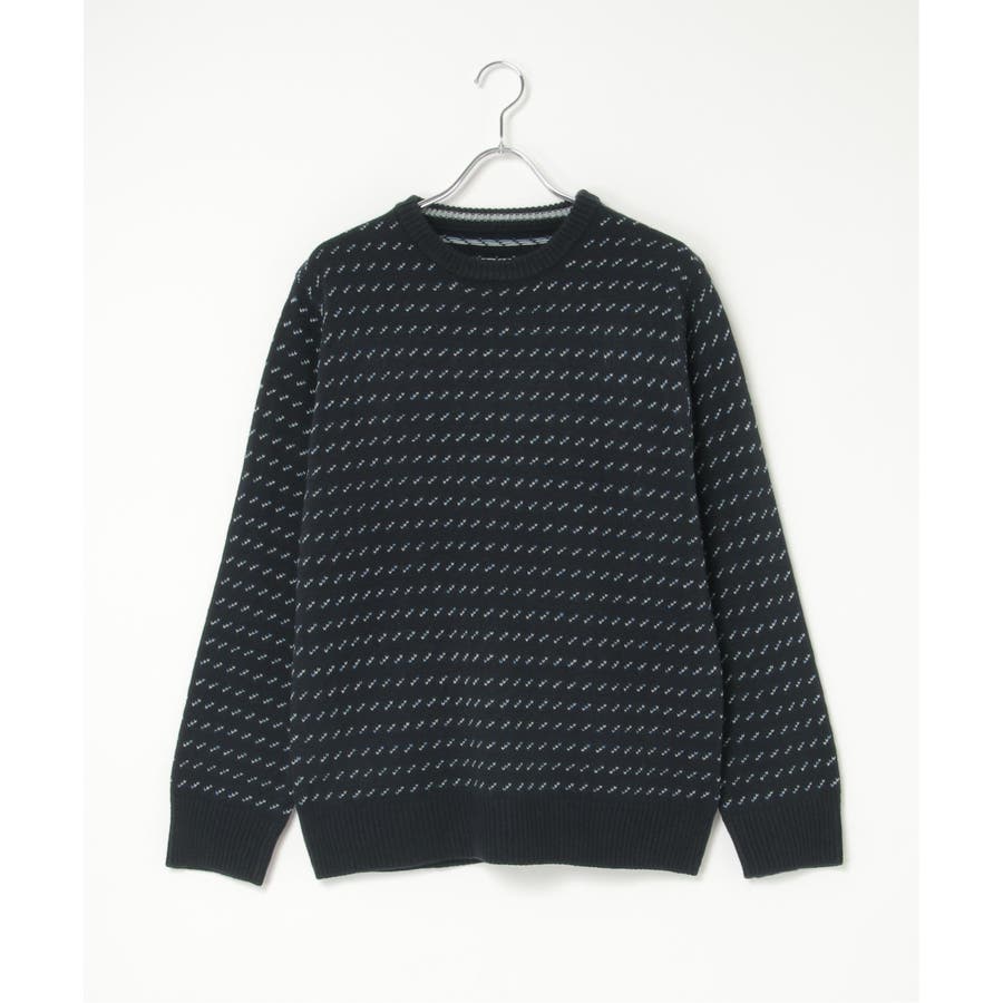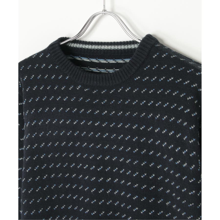 膨らみのあるアクリル糸をジャカード編みしたプルオーバーニット。