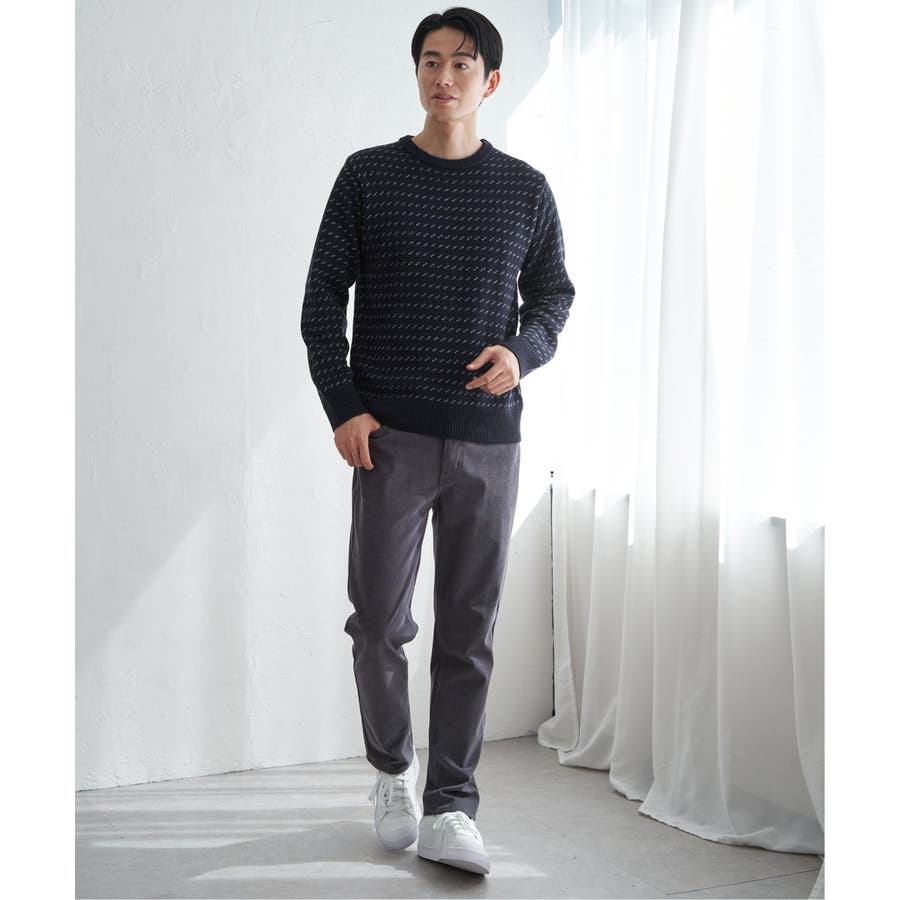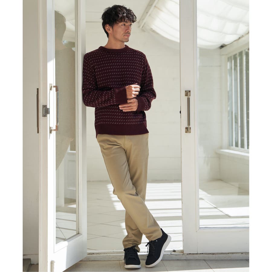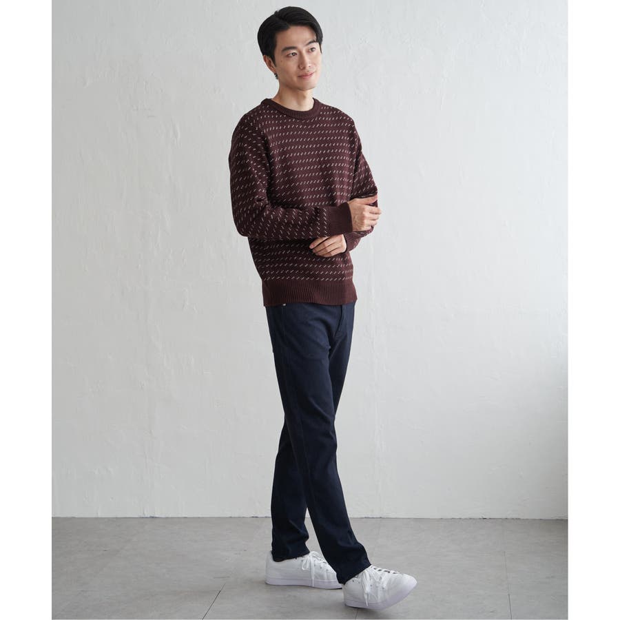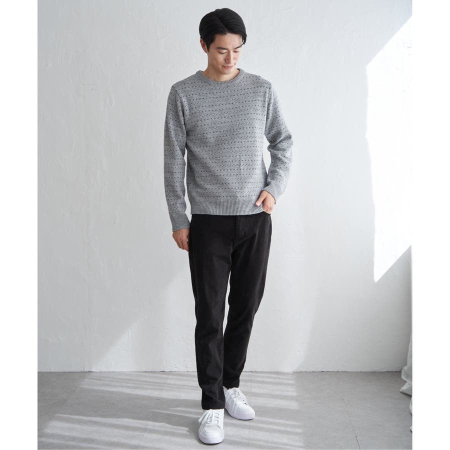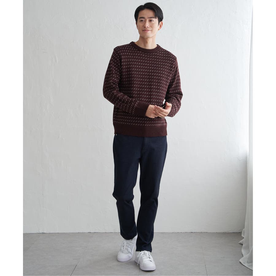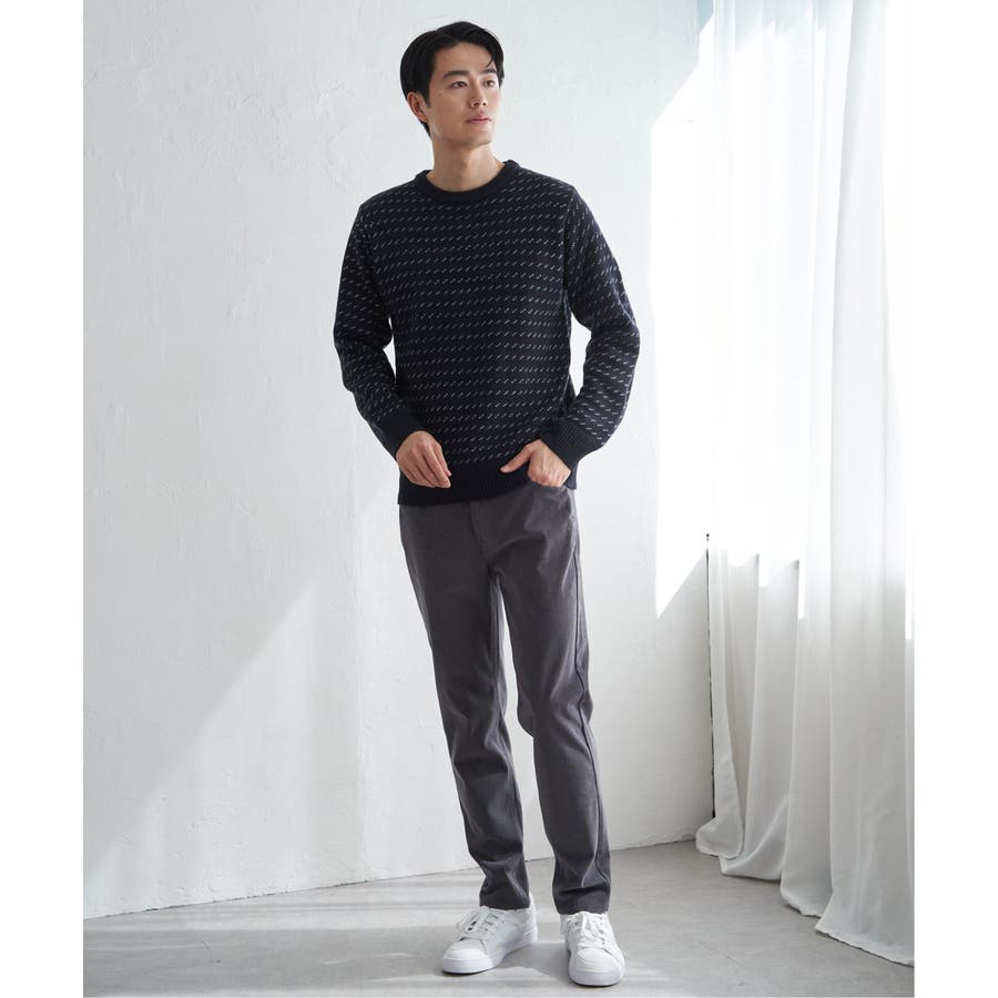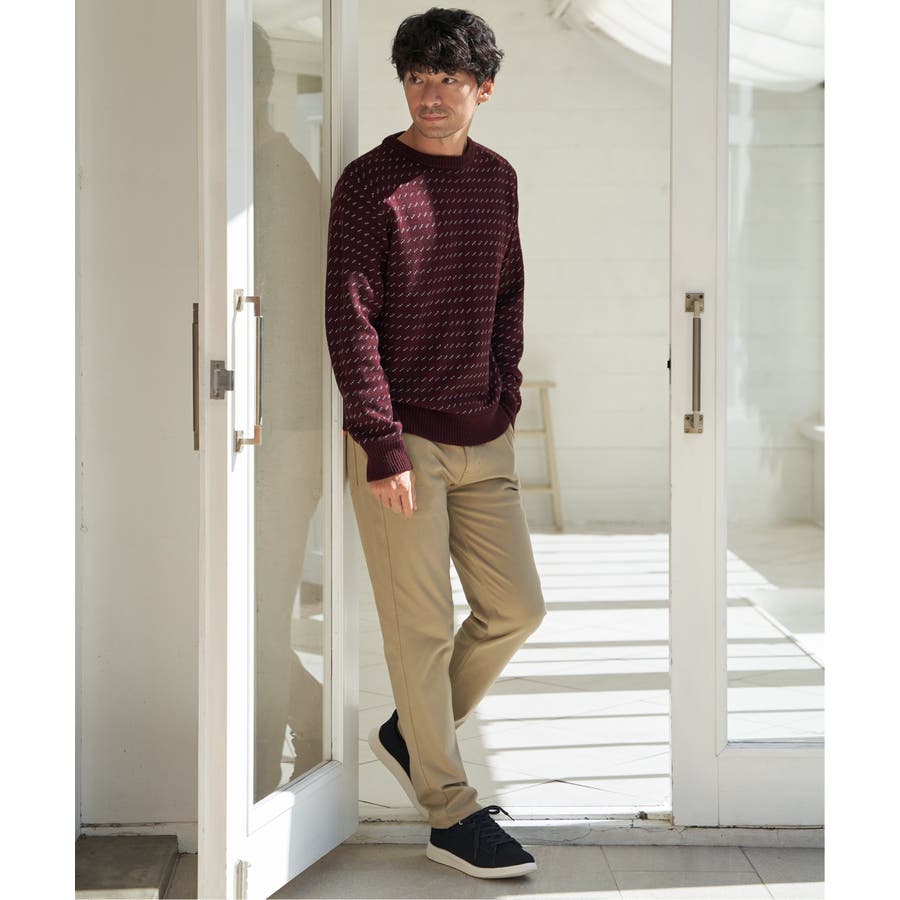 膨らみのあるアクリル糸をジャカード編みしたプルオーバーニット。