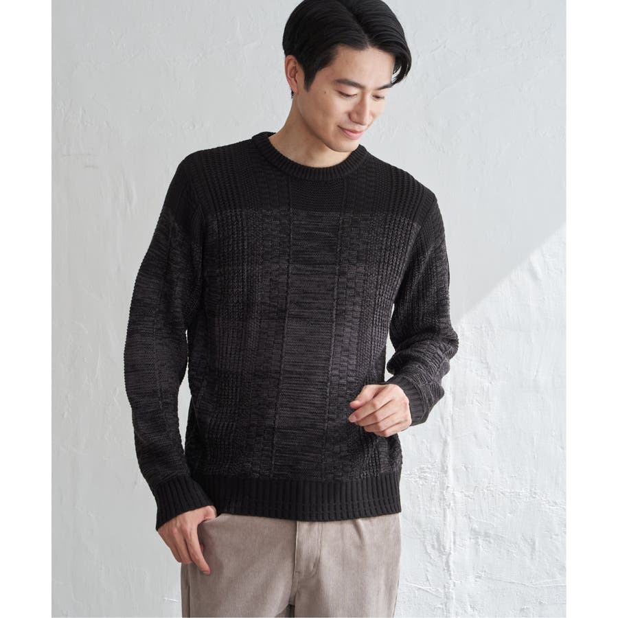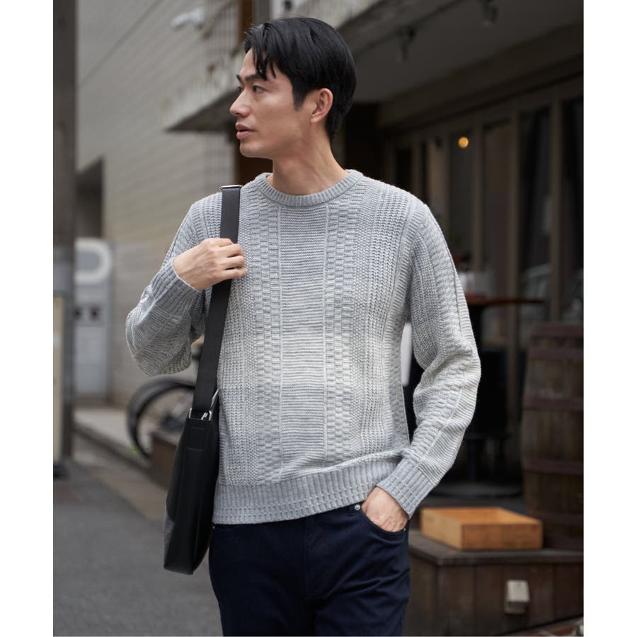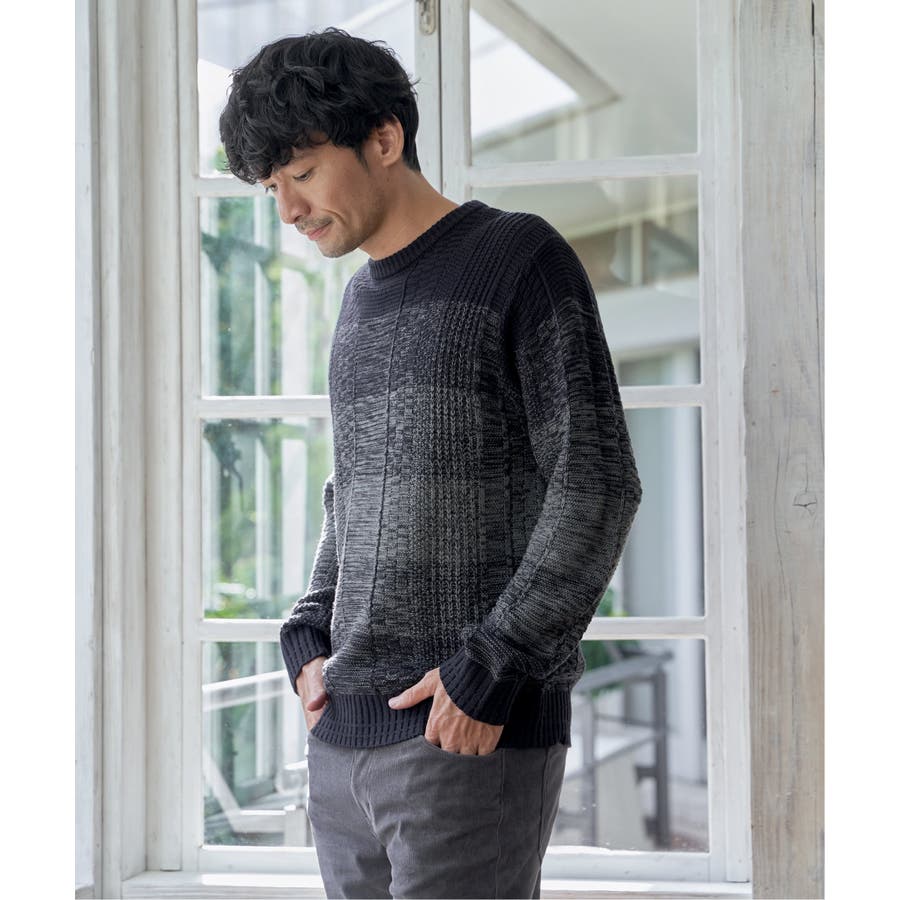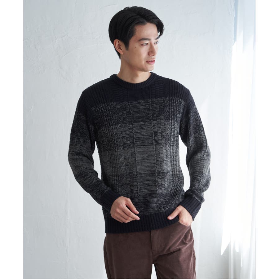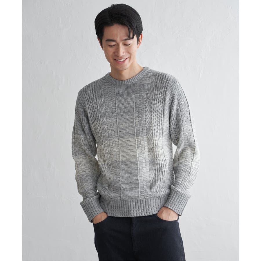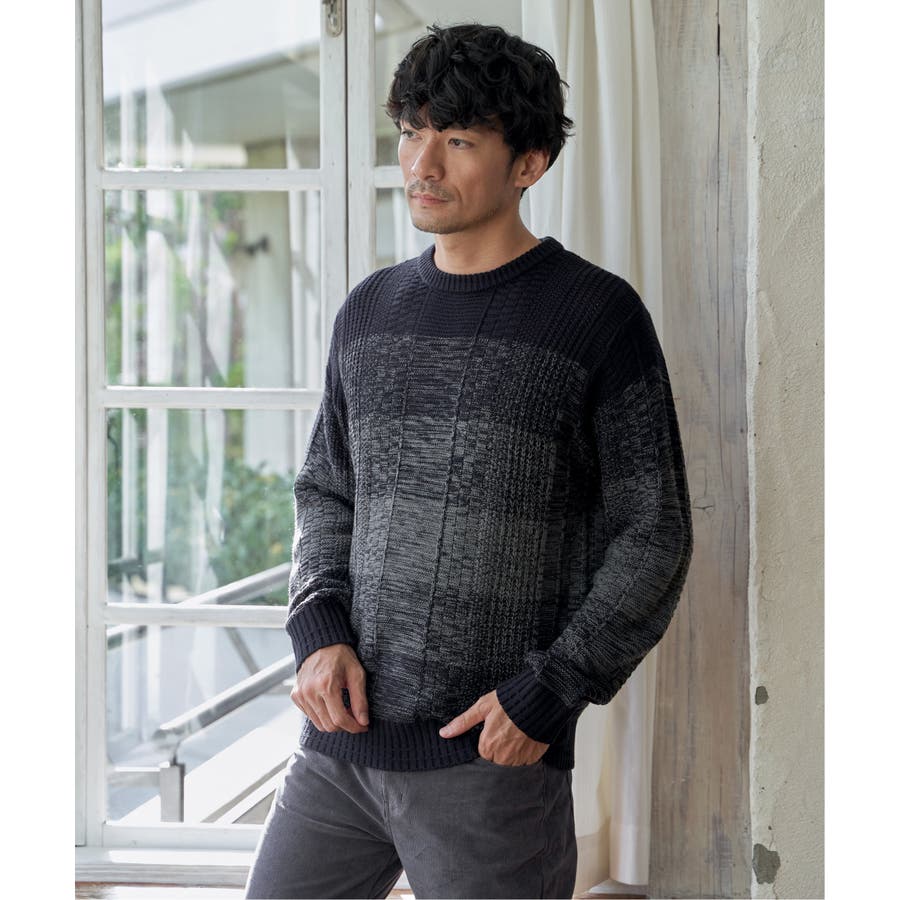 糸の色味を巧みに配合し、メランジ調の濃淡でグラデーションを表現したニット。