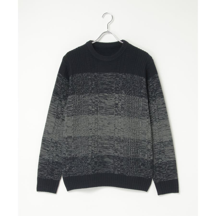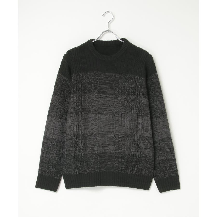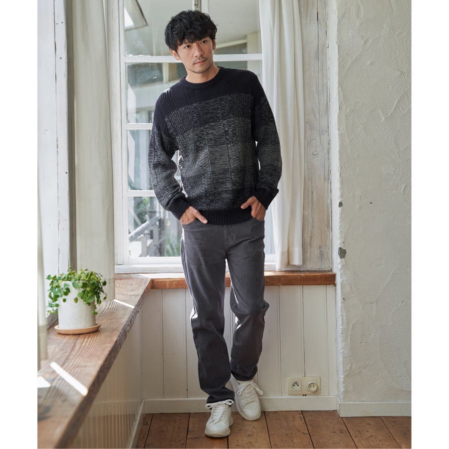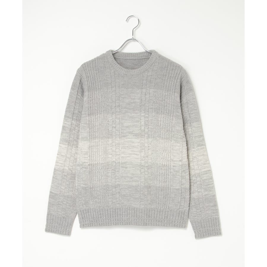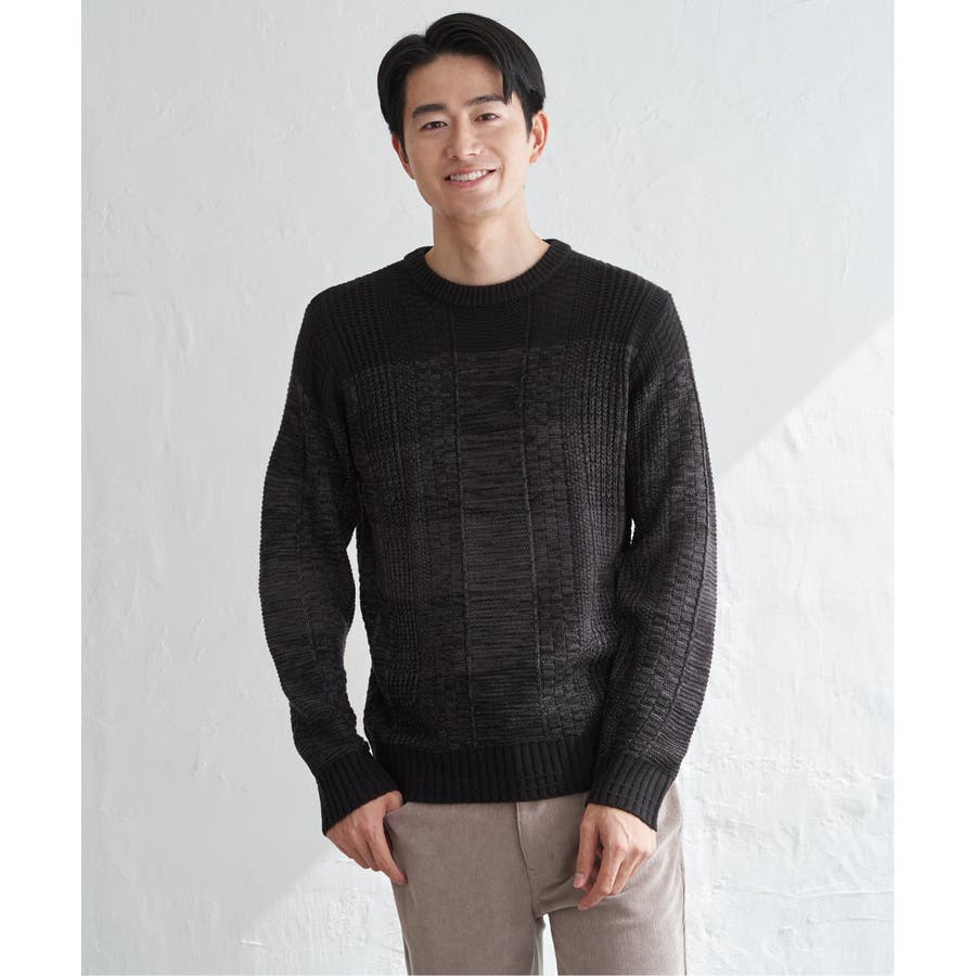 糸の色味を巧みに配合し、メランジ調の濃淡でグラデーションを表現したニット。