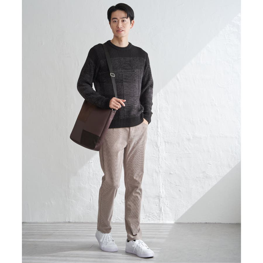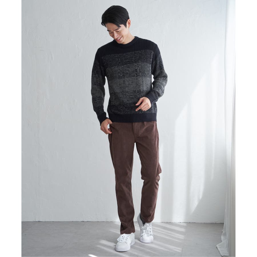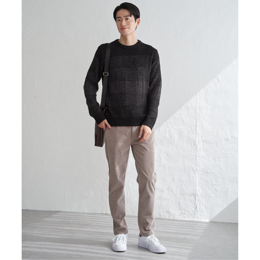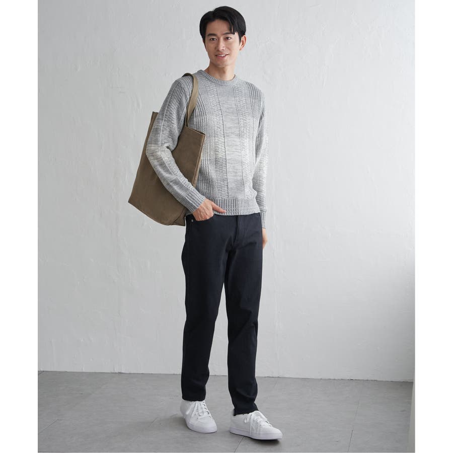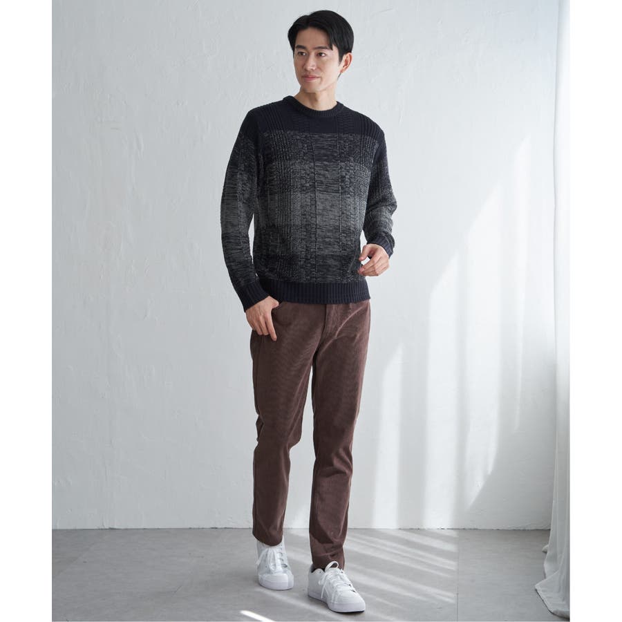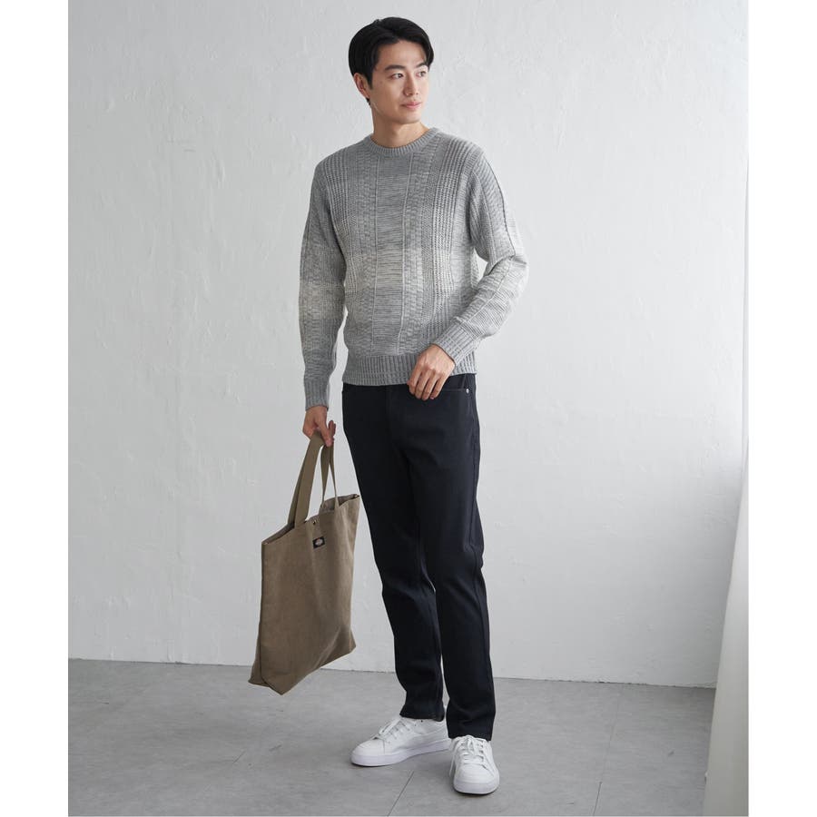 糸の色味を巧みに配合し、メランジ調の濃淡でグラデーションを表現したニット。