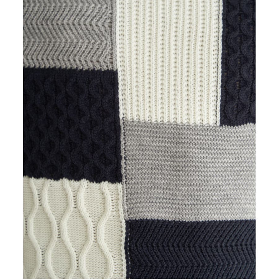 ブロック毎に編地や色を変えたこだわりニット。
