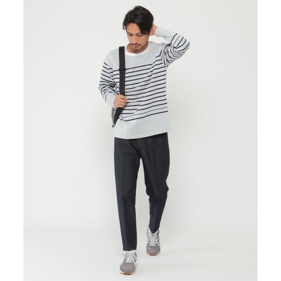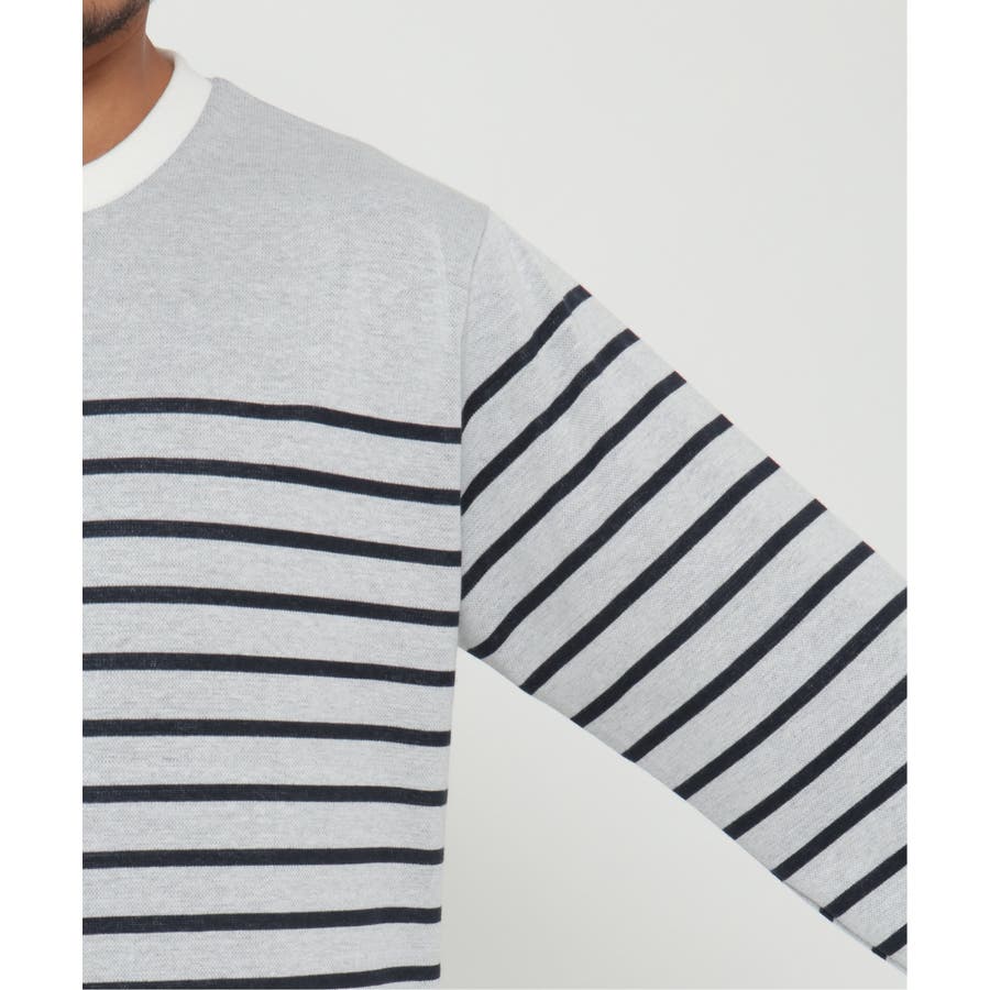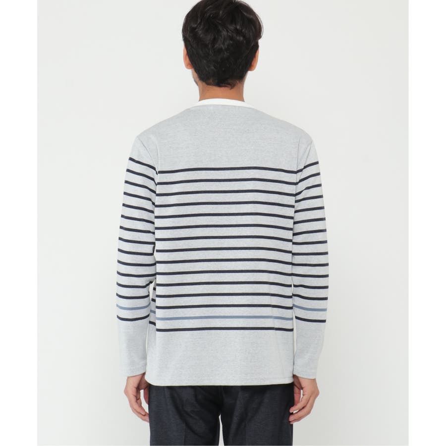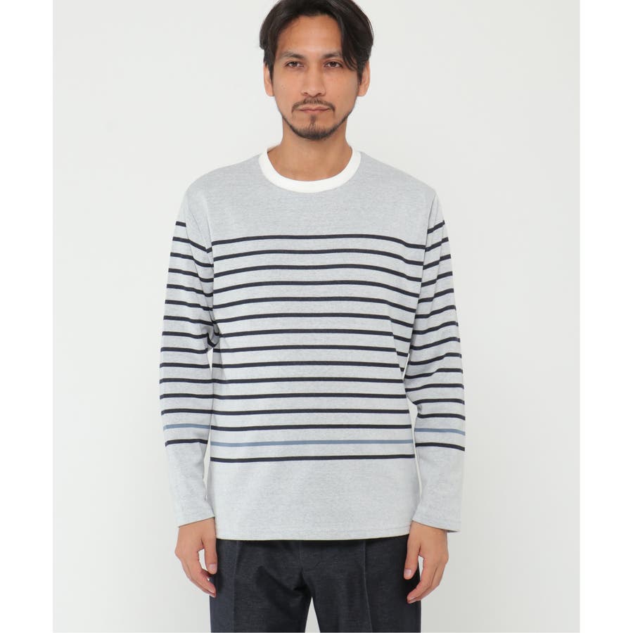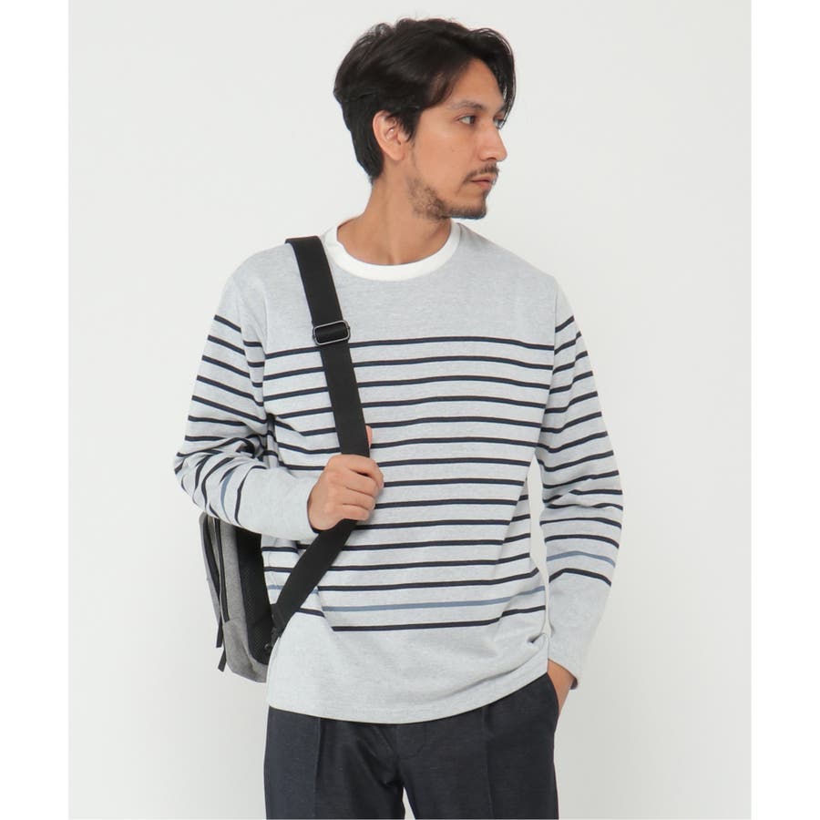 季節感のあるカラーのボーダーは、一枚着としても羽織りのインナーとしても活躍。