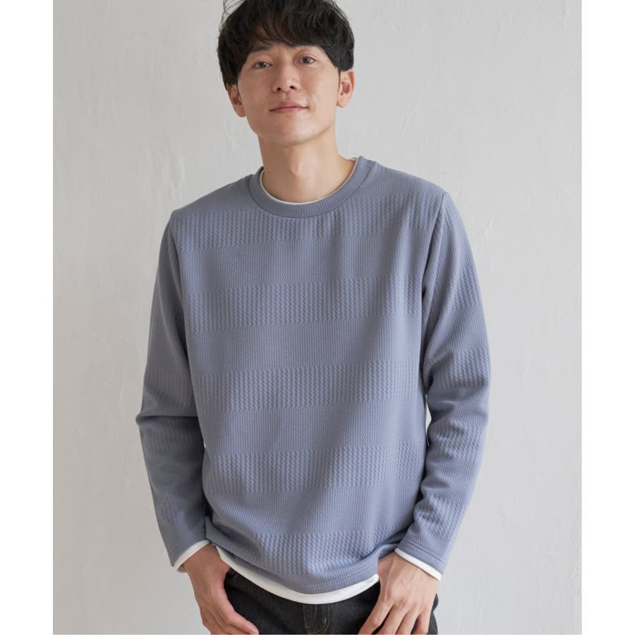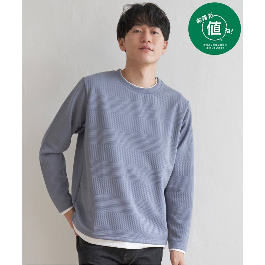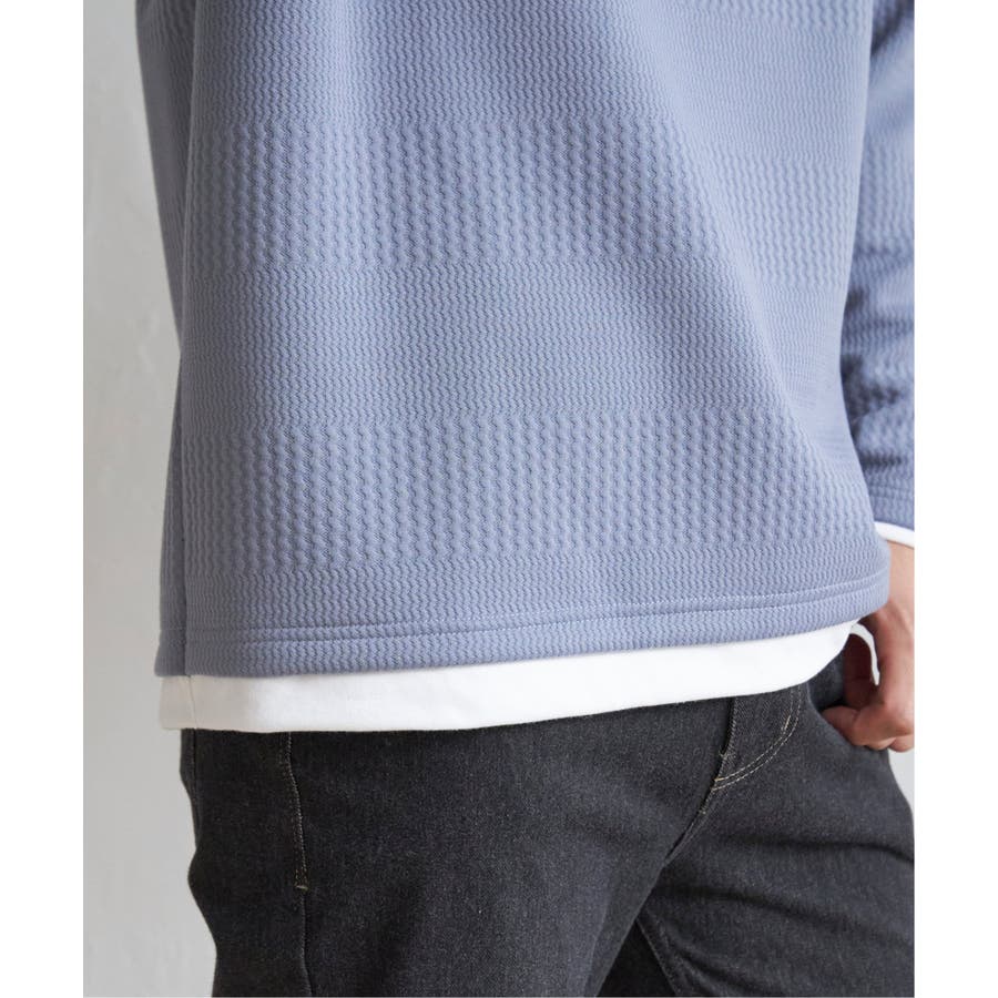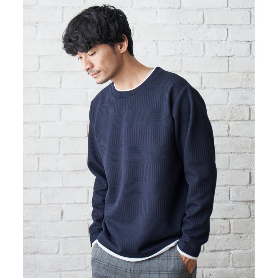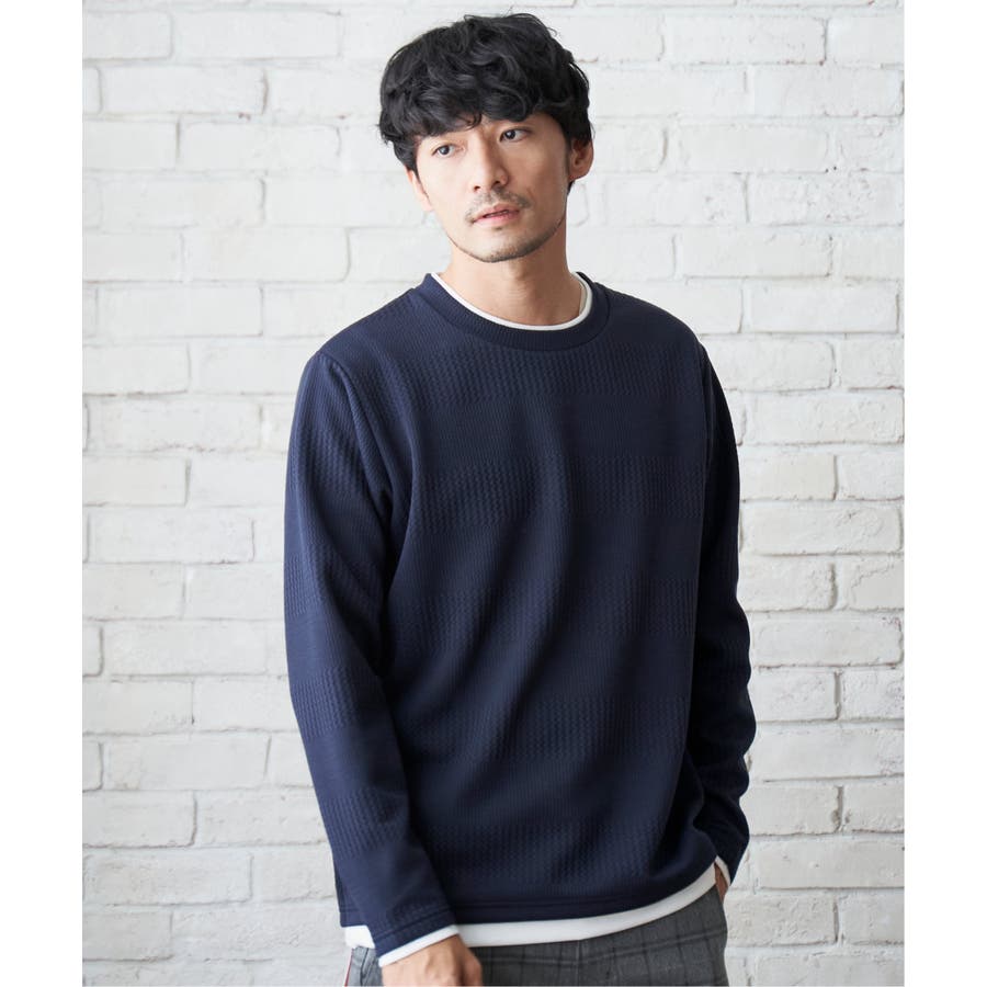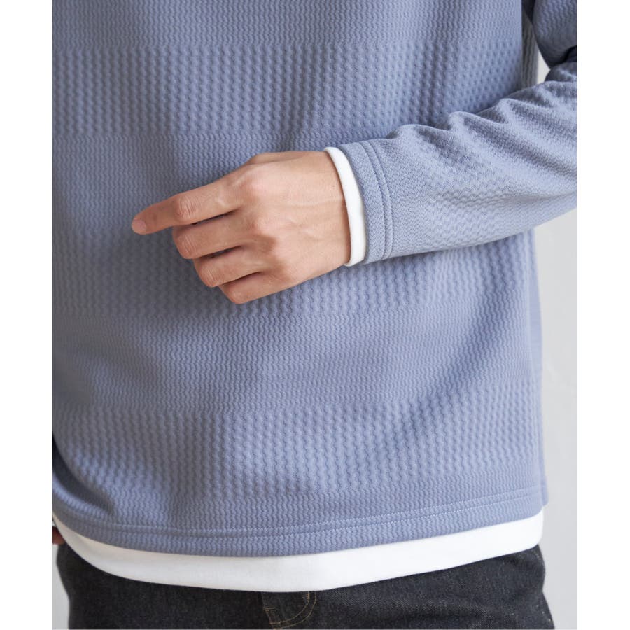 裾や首元、袖口からチラっとインナーを覗かせているような、フェイクレイヤードのプルオーバー。