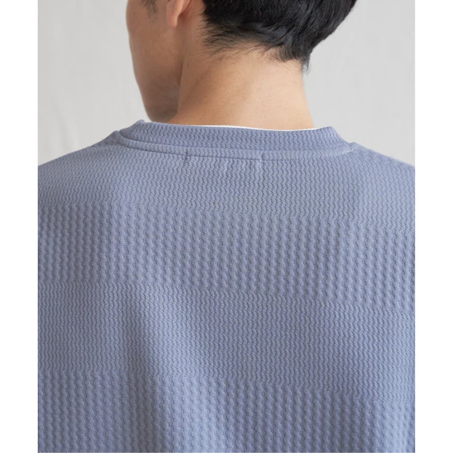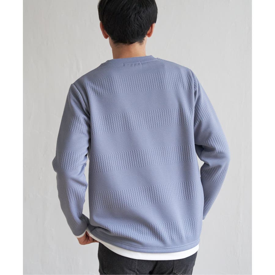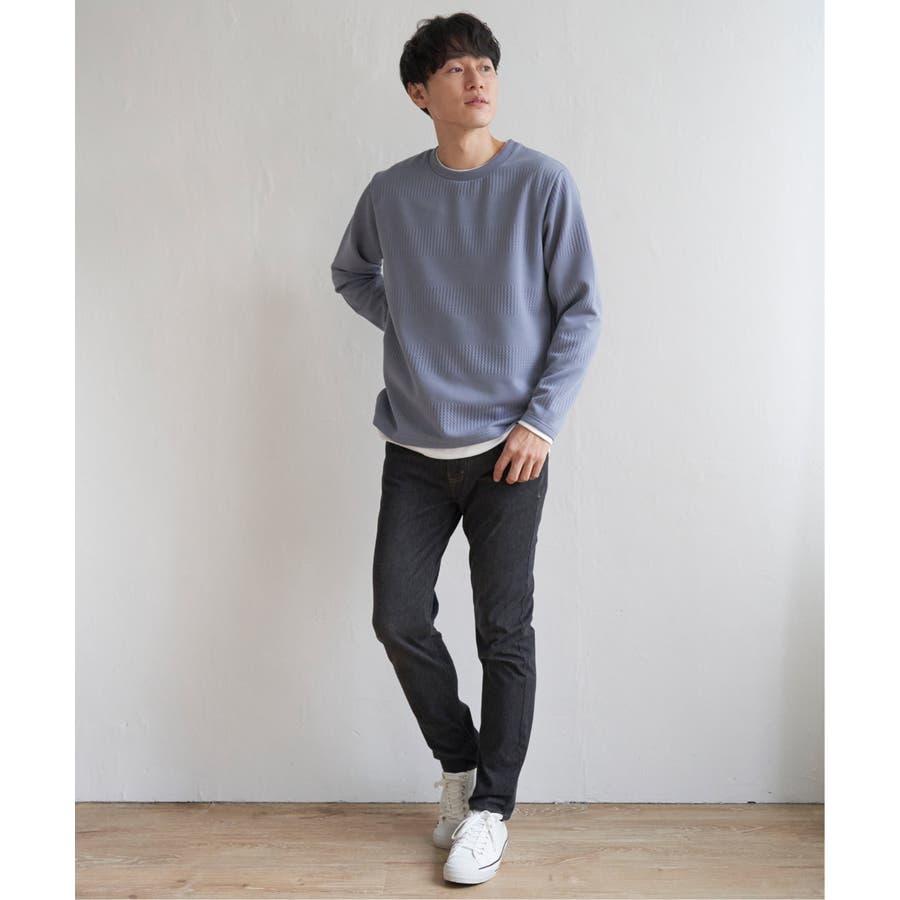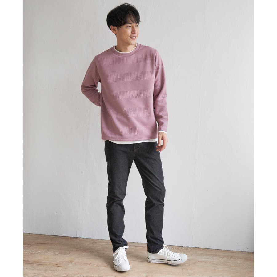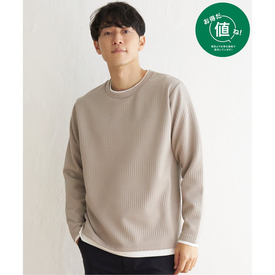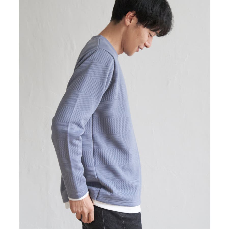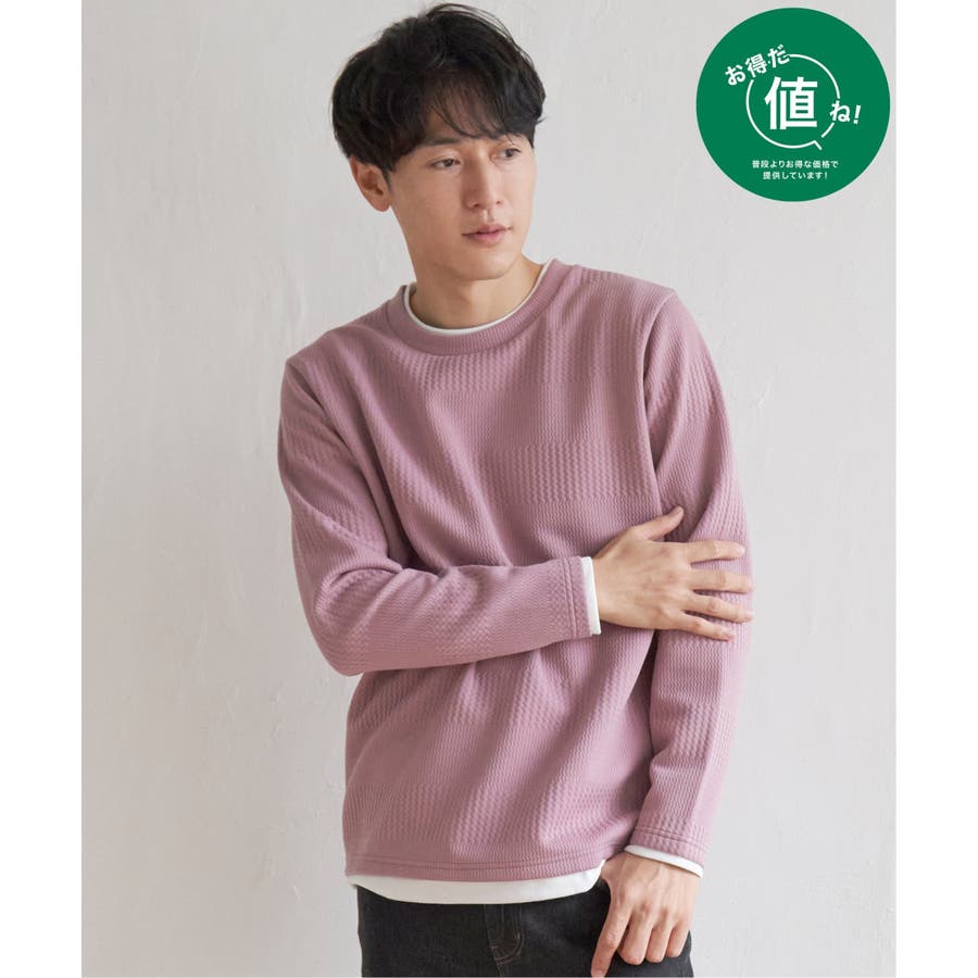 裾や首元、袖口からチラっとインナーを覗かせているような、フェイクレイヤードのプルオーバー。