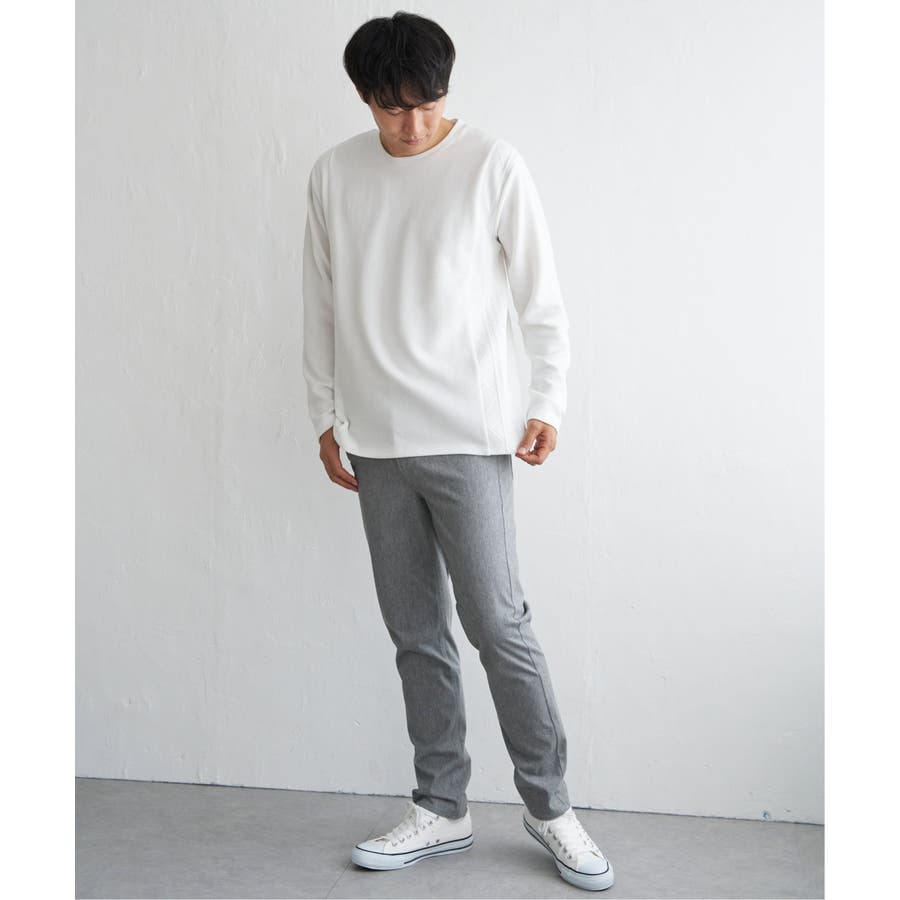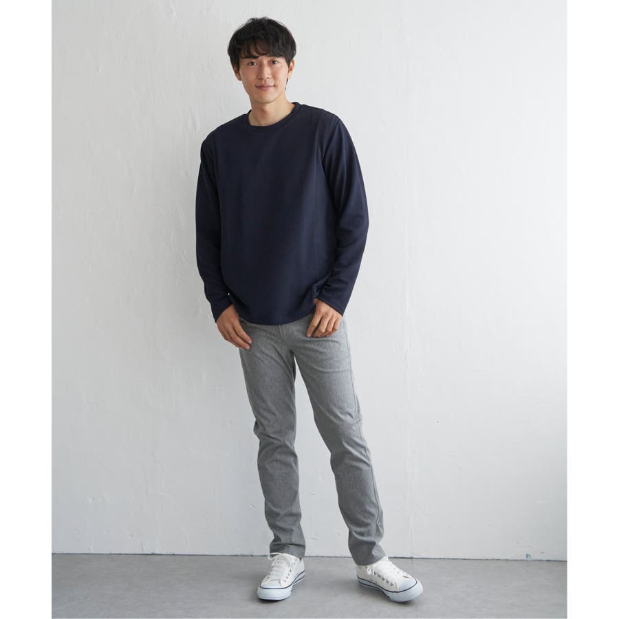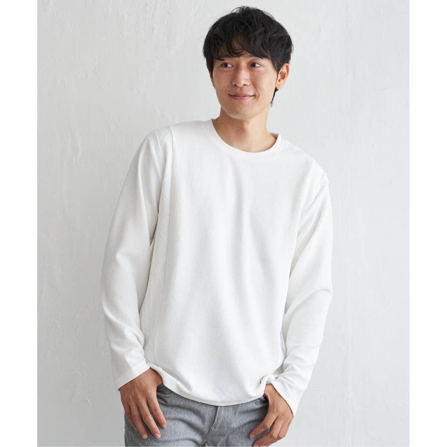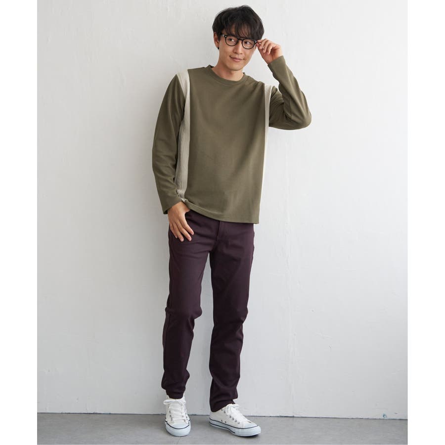 シンプルながら異素材で切り替えたロンT。