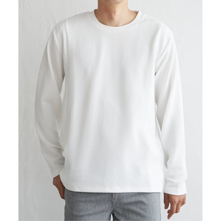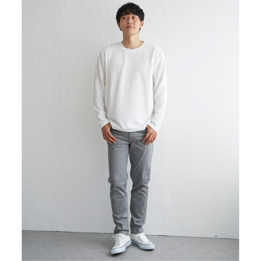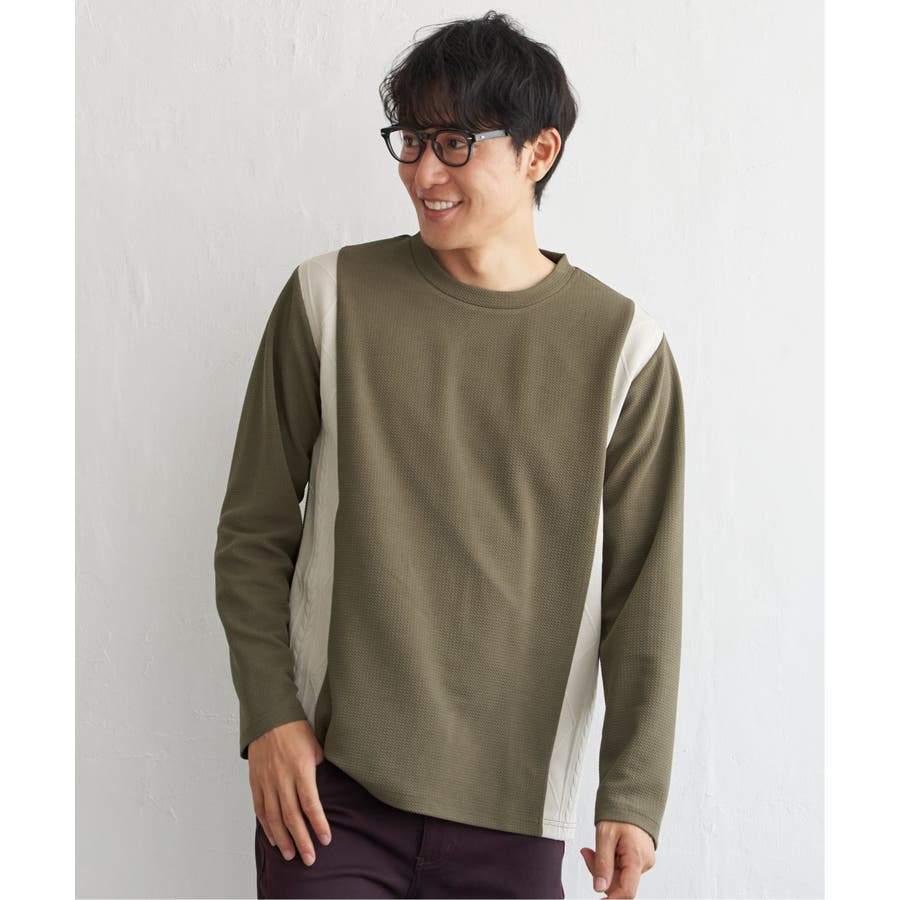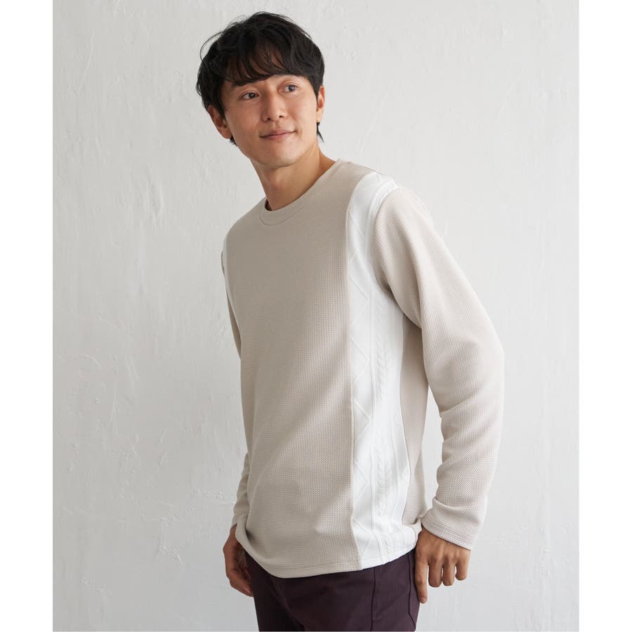 シンプルながら異素材で切り替えたロンT。