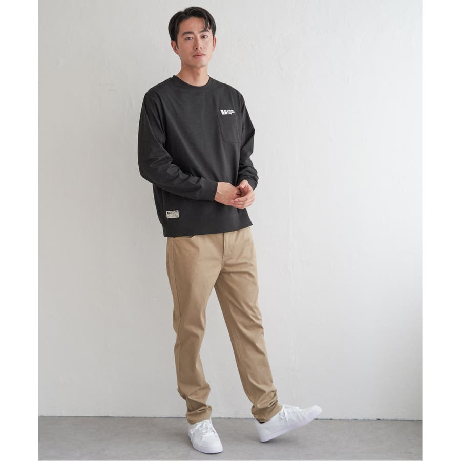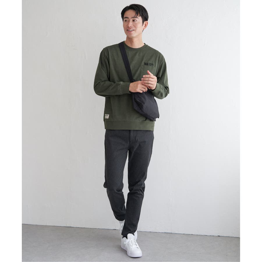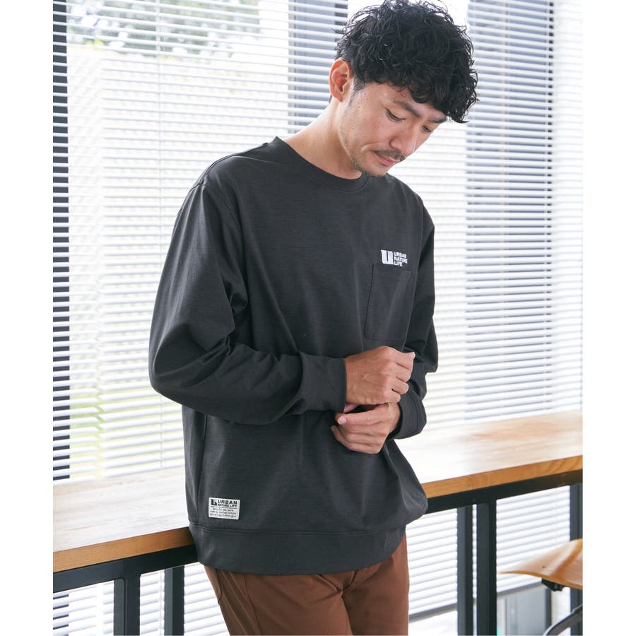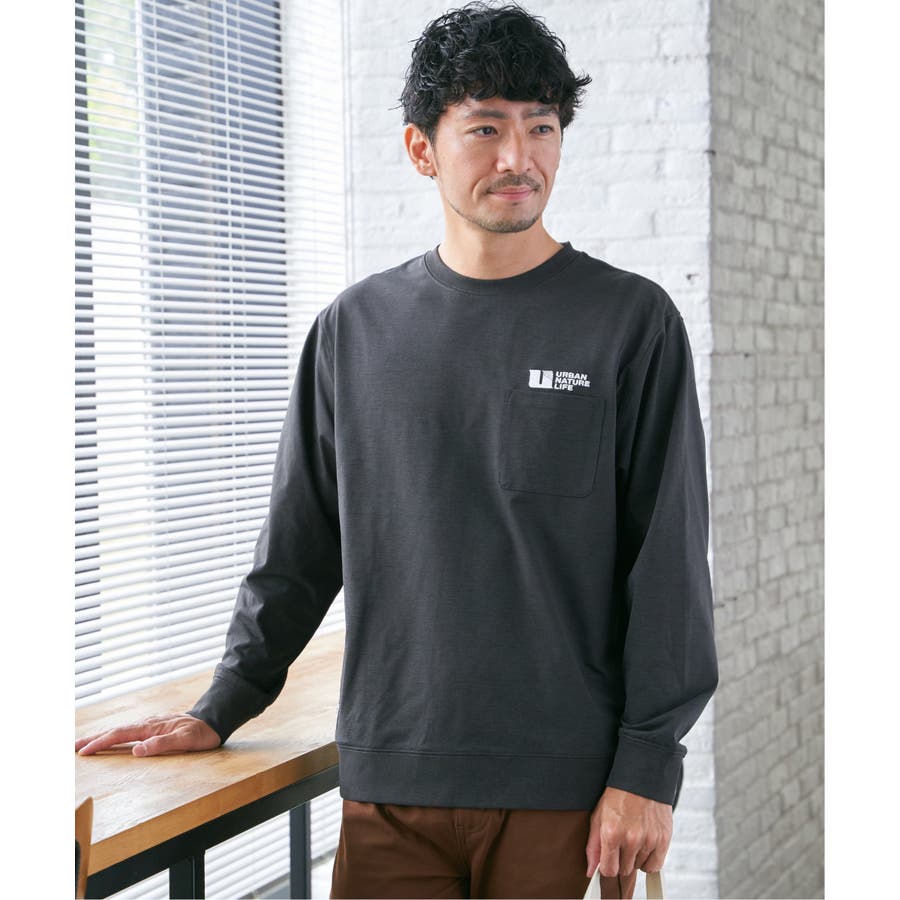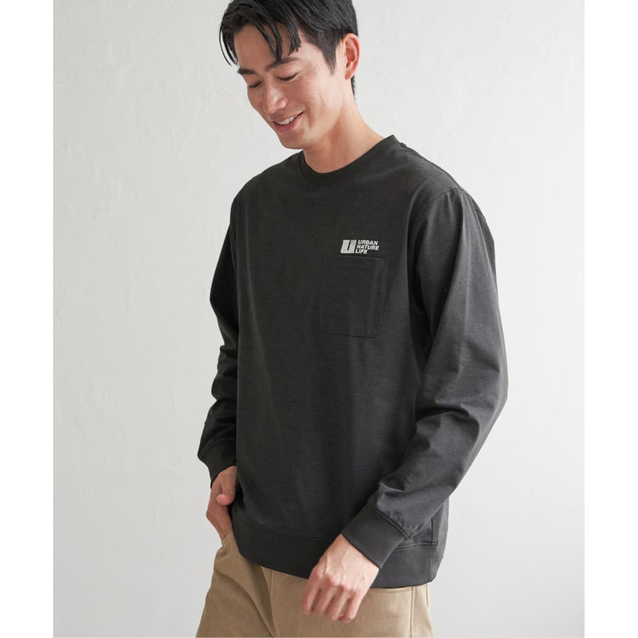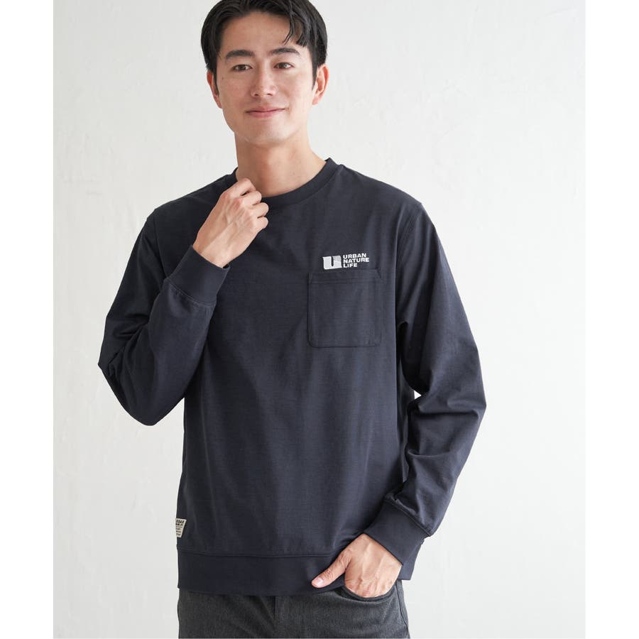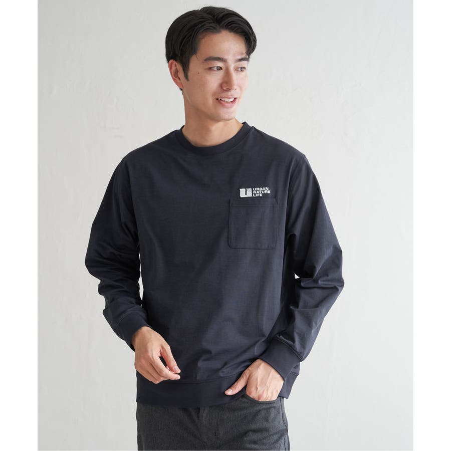 左胸に刺繍の入ったポケット付き長袖T。