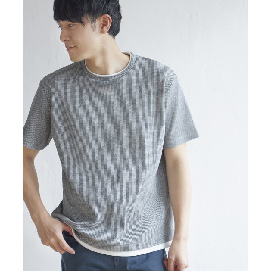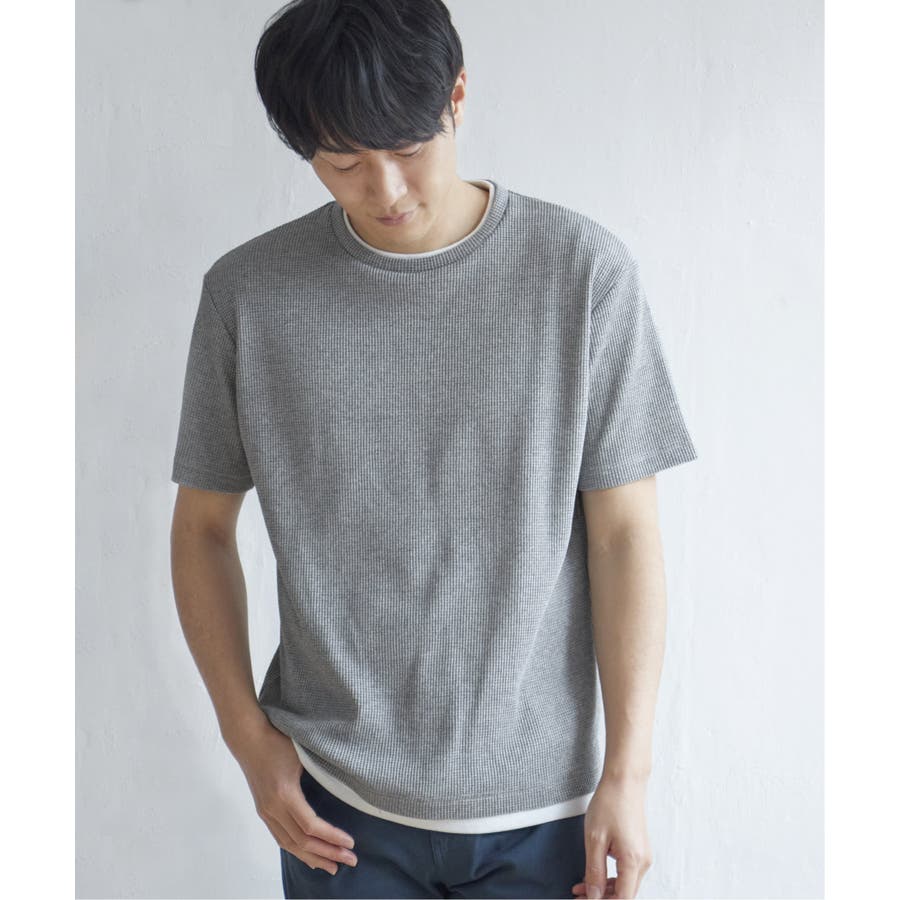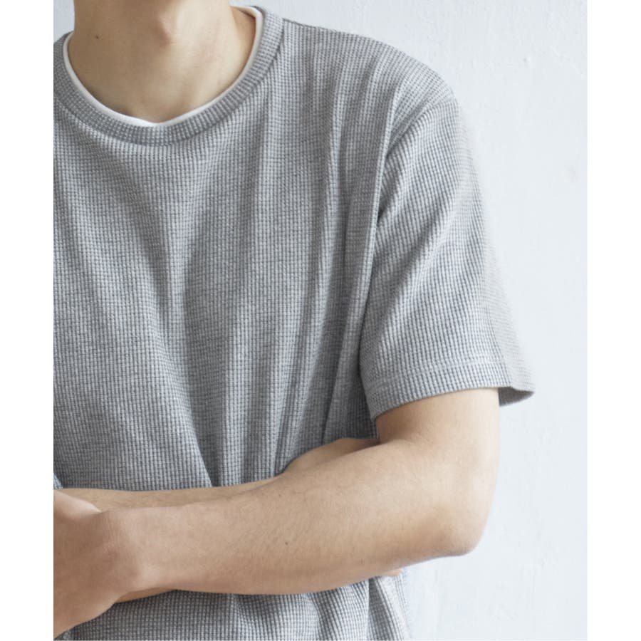 インナーをレイヤードしているような、ワッフル生地のシンプルTシャツ。