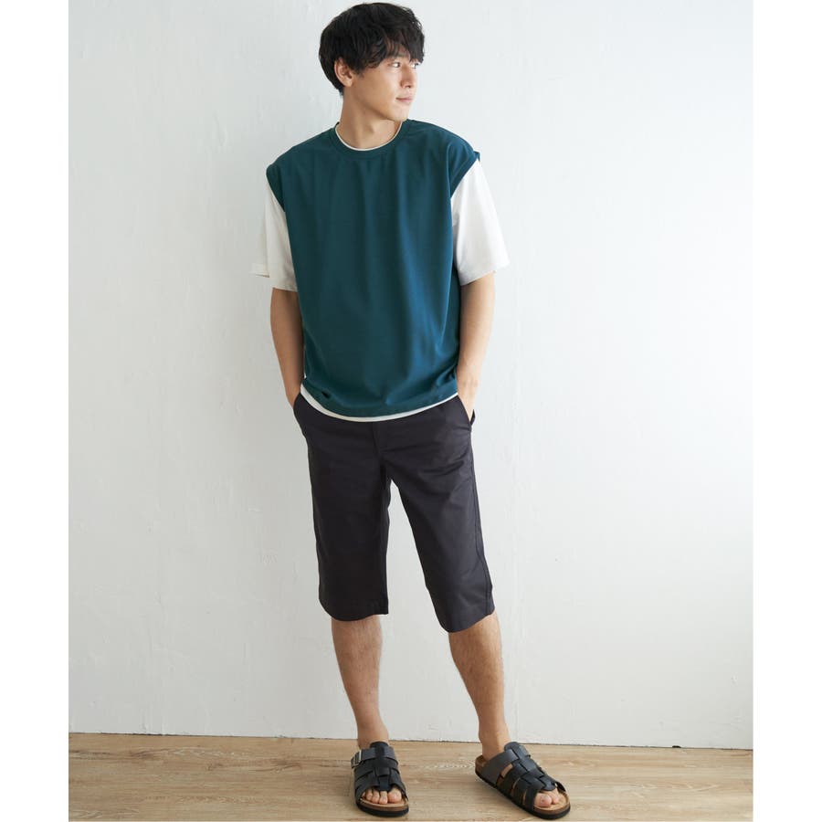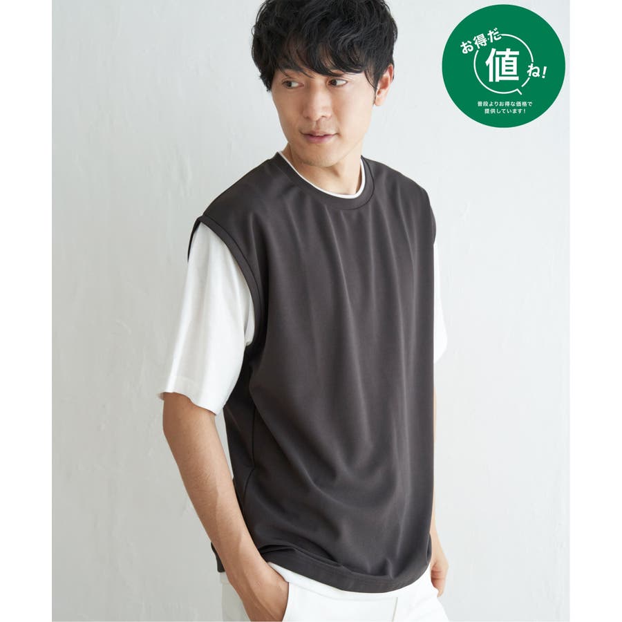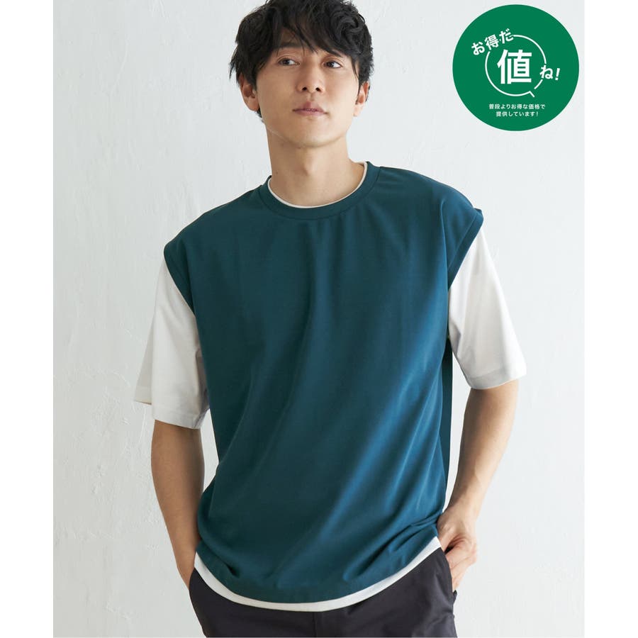 人気の1枚でコーデが完成する便利なフェイクベストTシャツ。