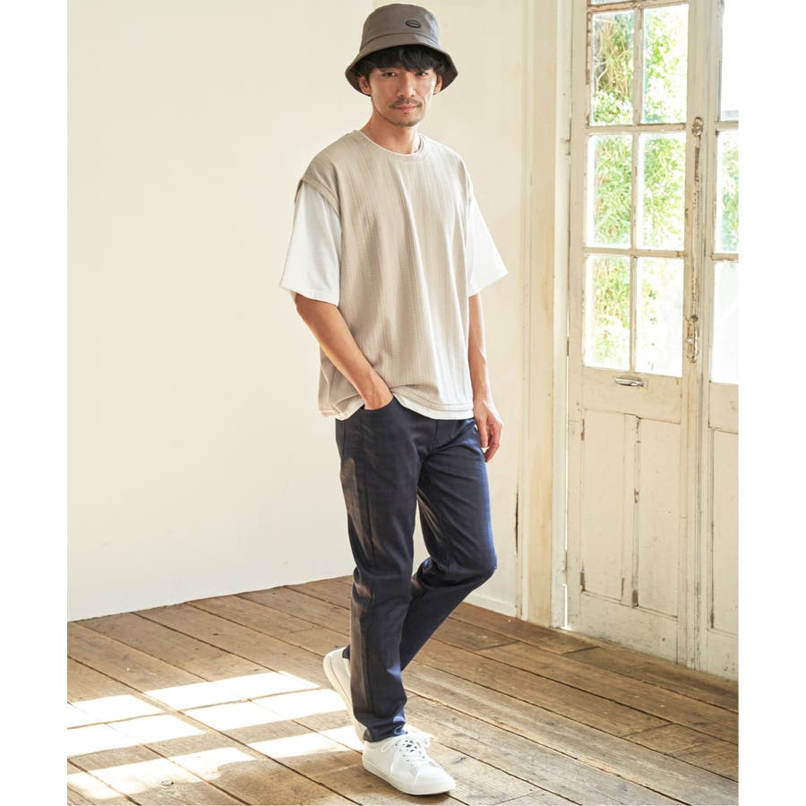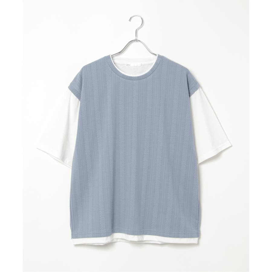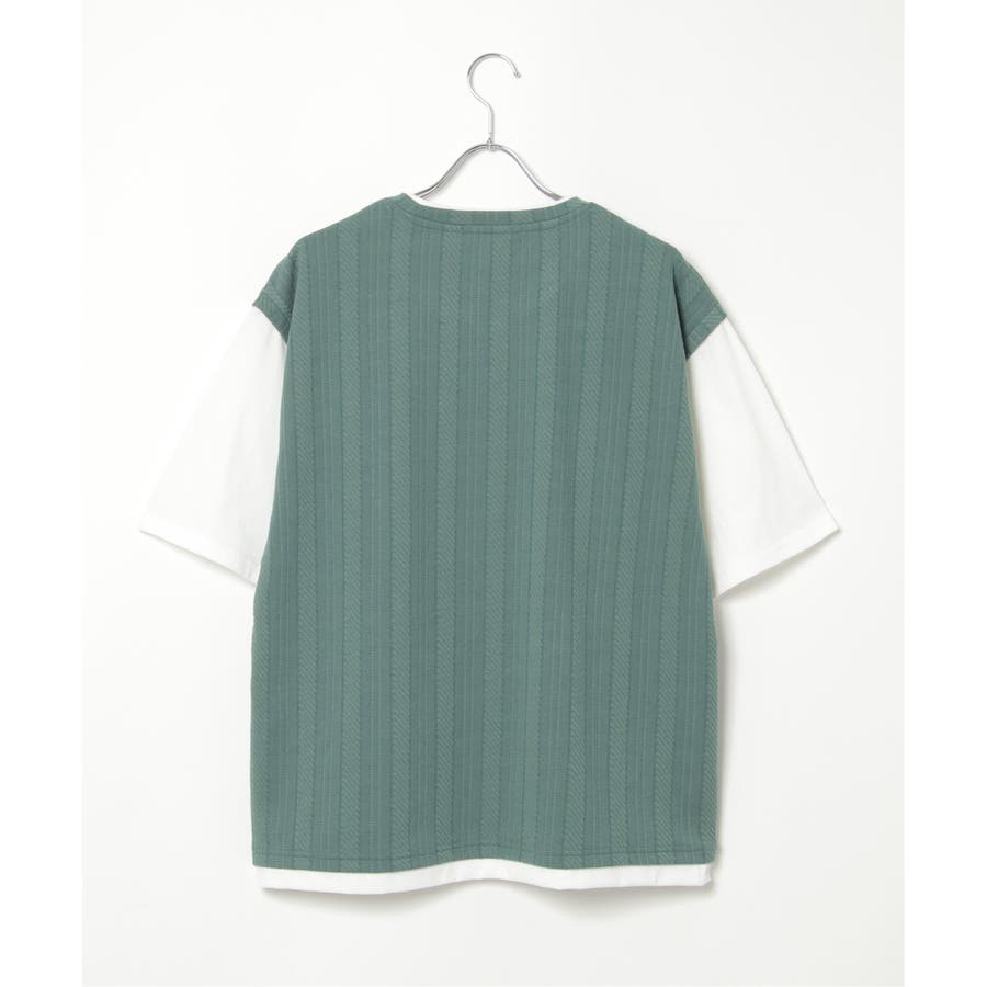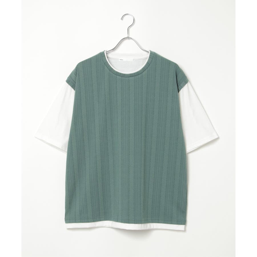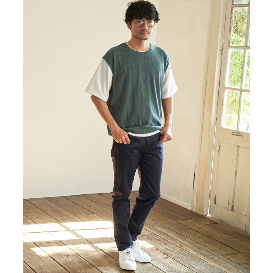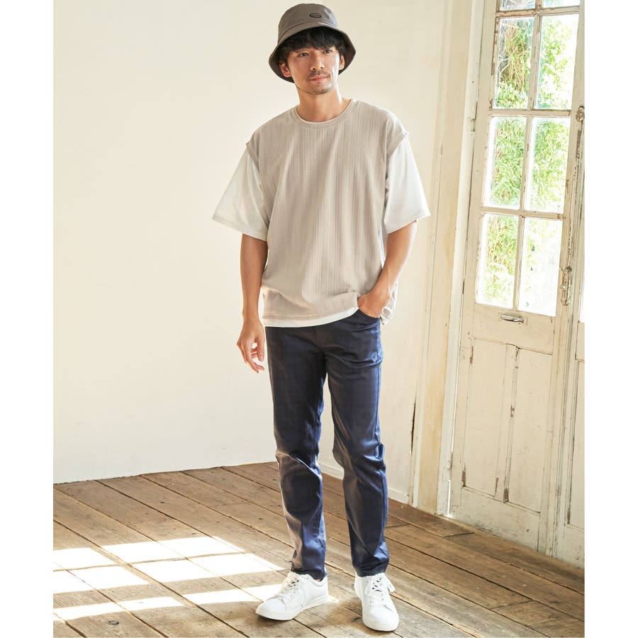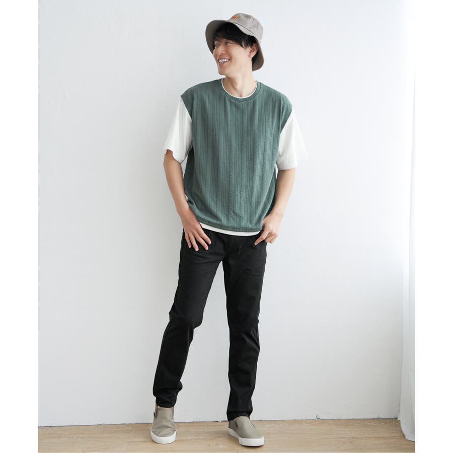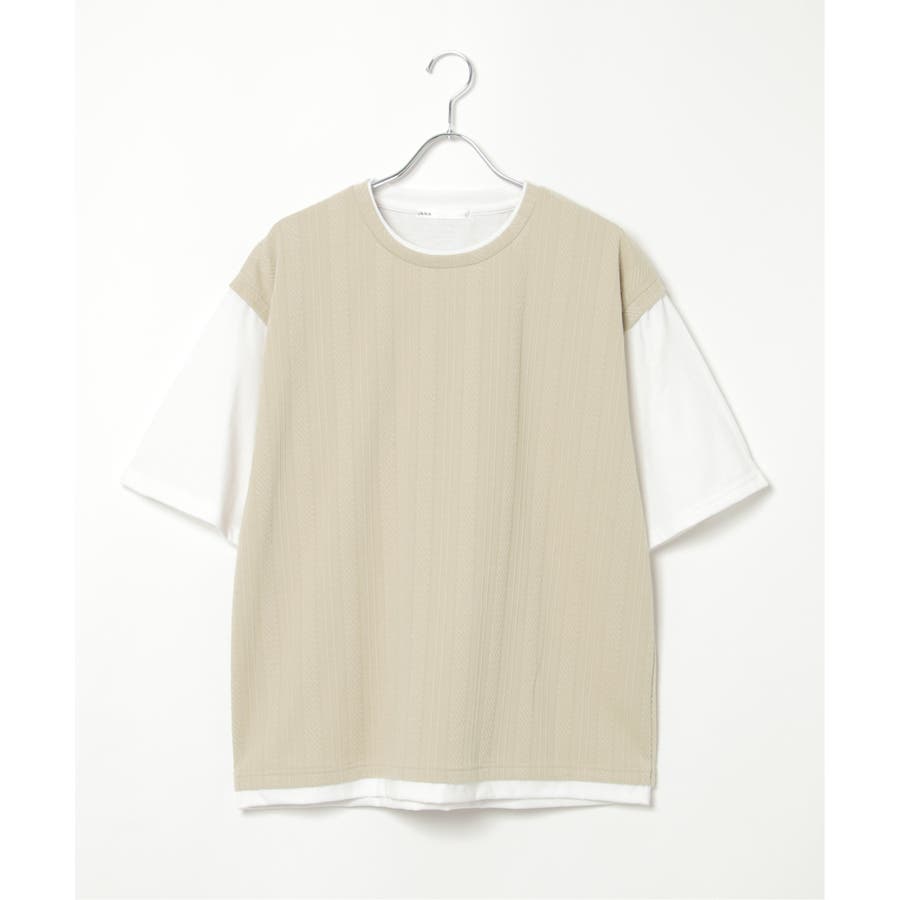 Tシャツとベストを重ね着しているようなフェイクデザイン。
