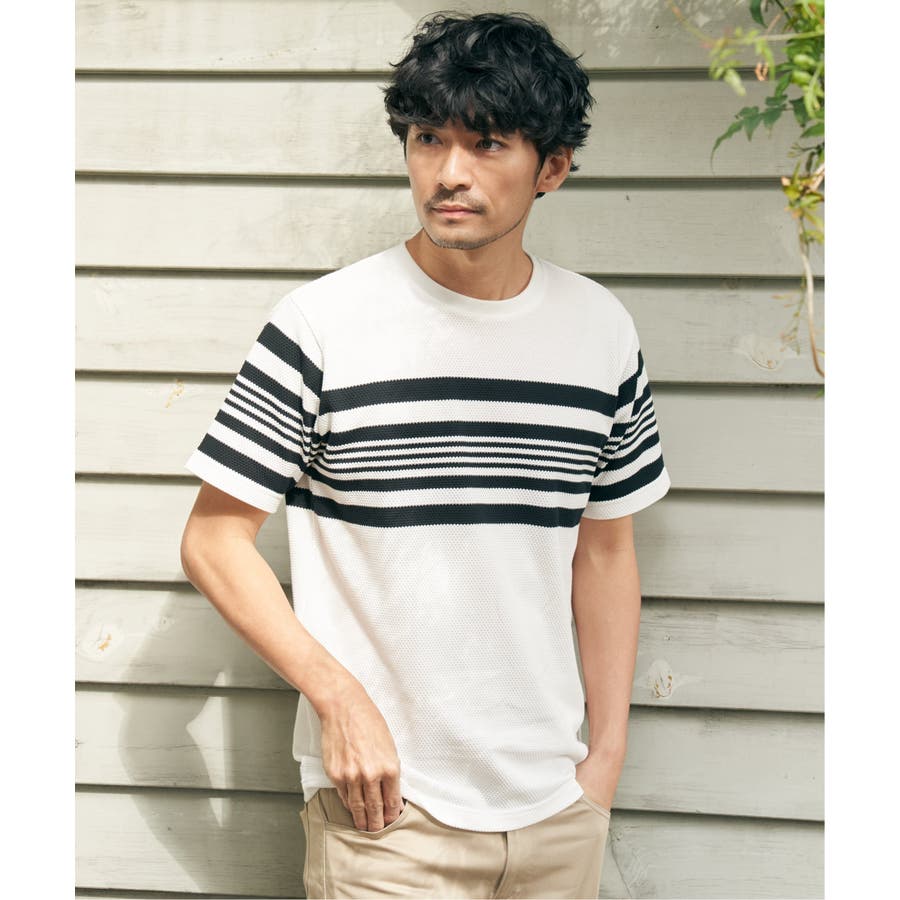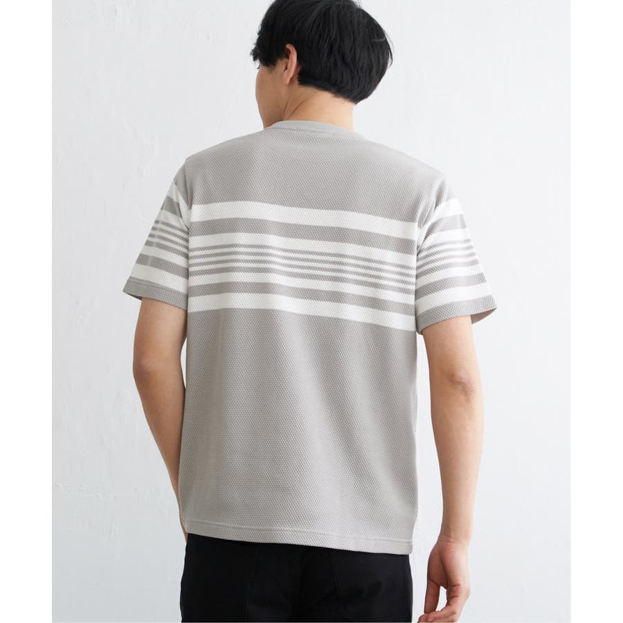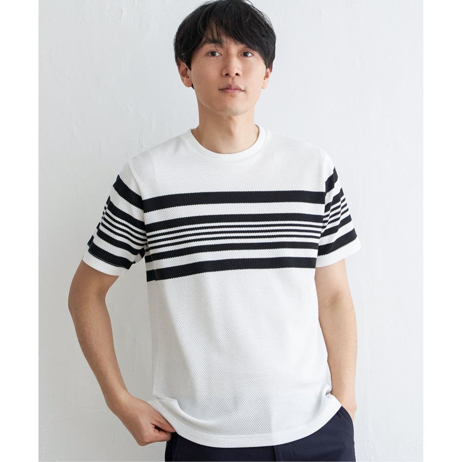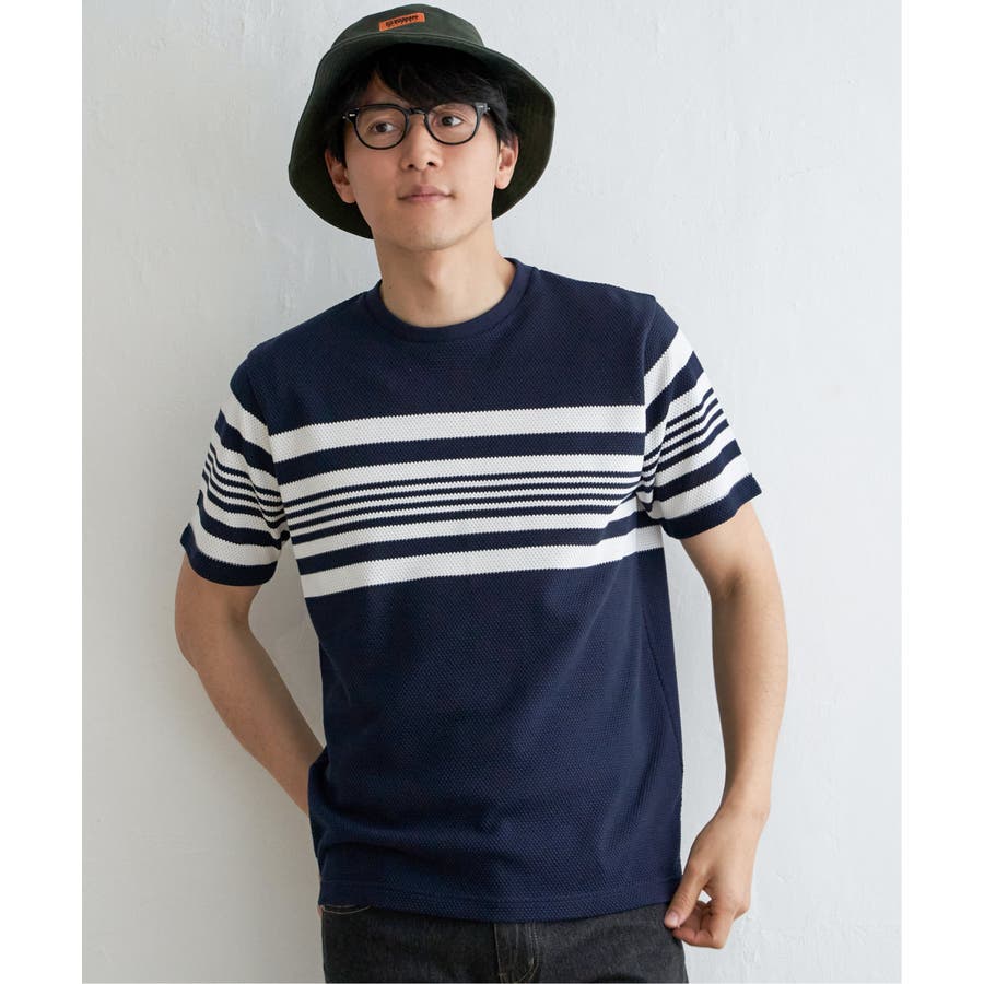 生地表面にポコポコと表情のある、パイナップル素材を使用したボーダー柄Tシャツ。