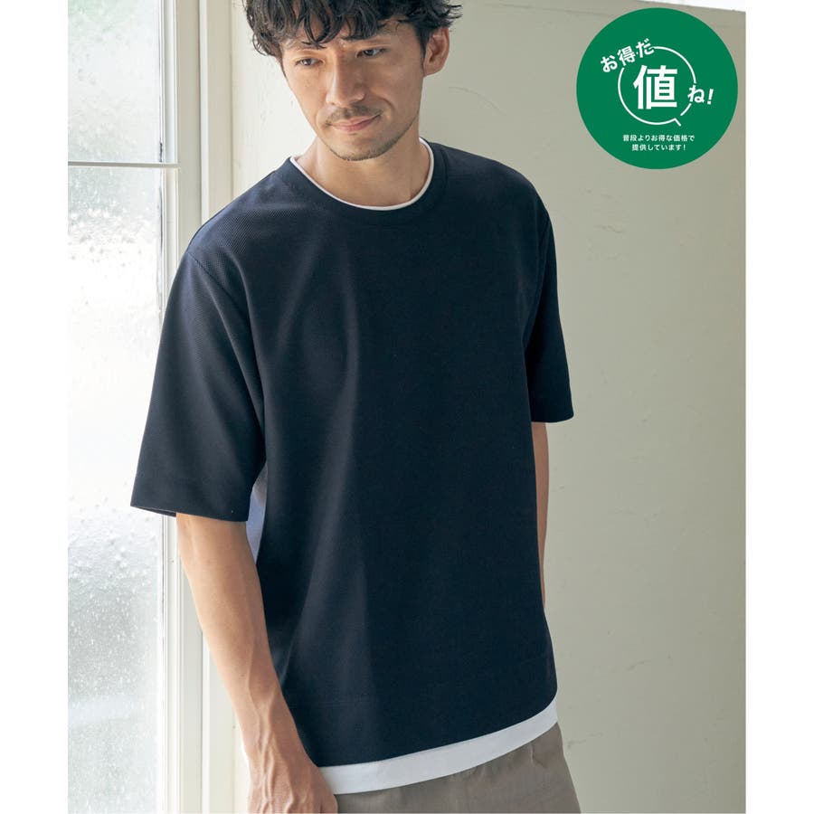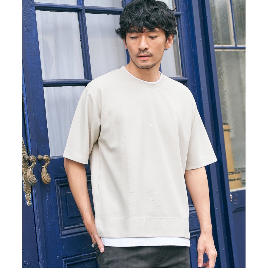 【吸水速乾】ドライ鹿の子5分袖レイヤードTシャツ