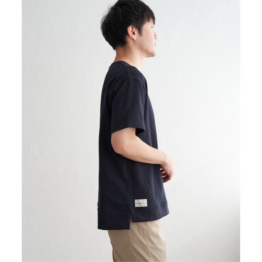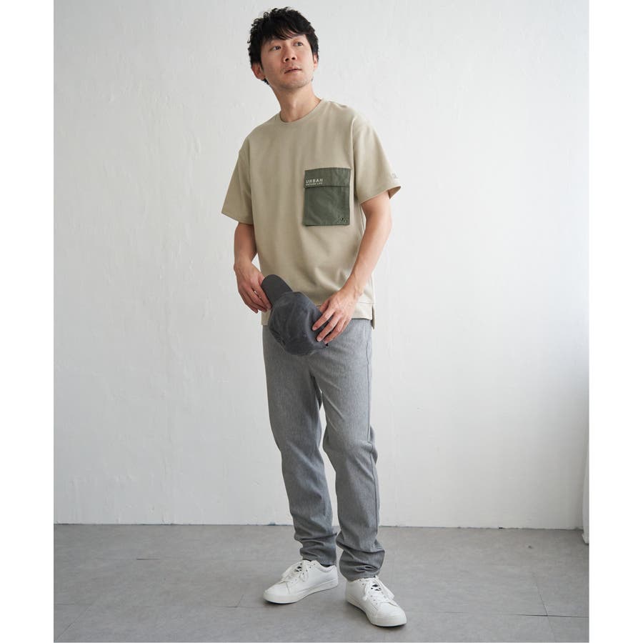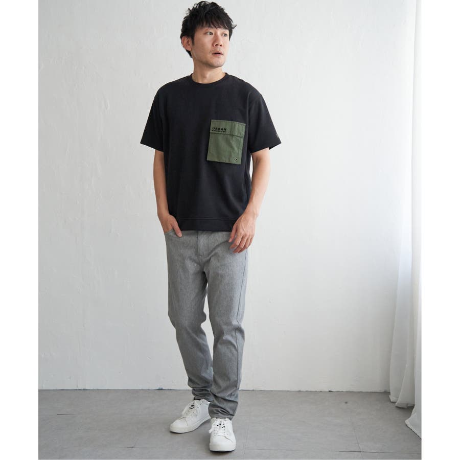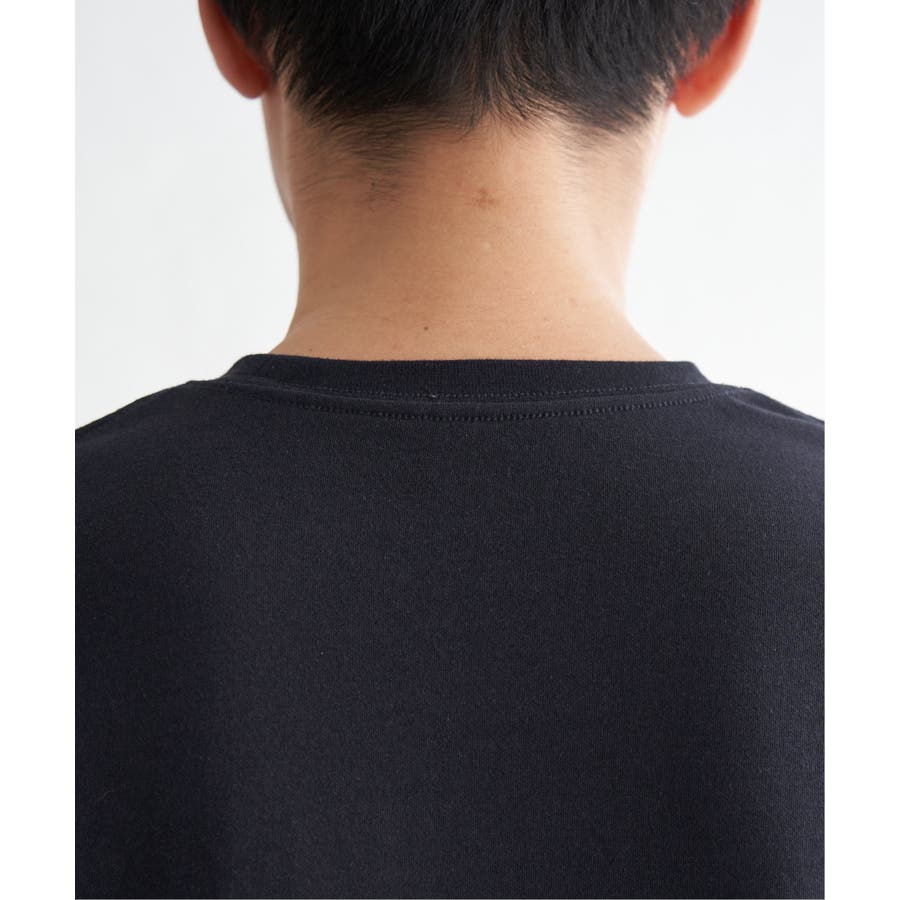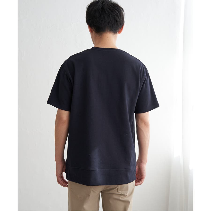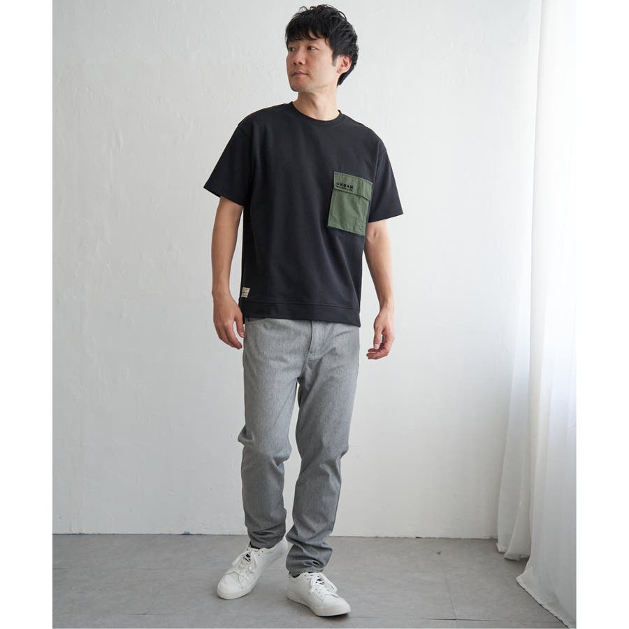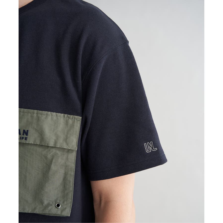 左胸に布帛の配色フラップポケットが付いた半袖Tシャツです。
