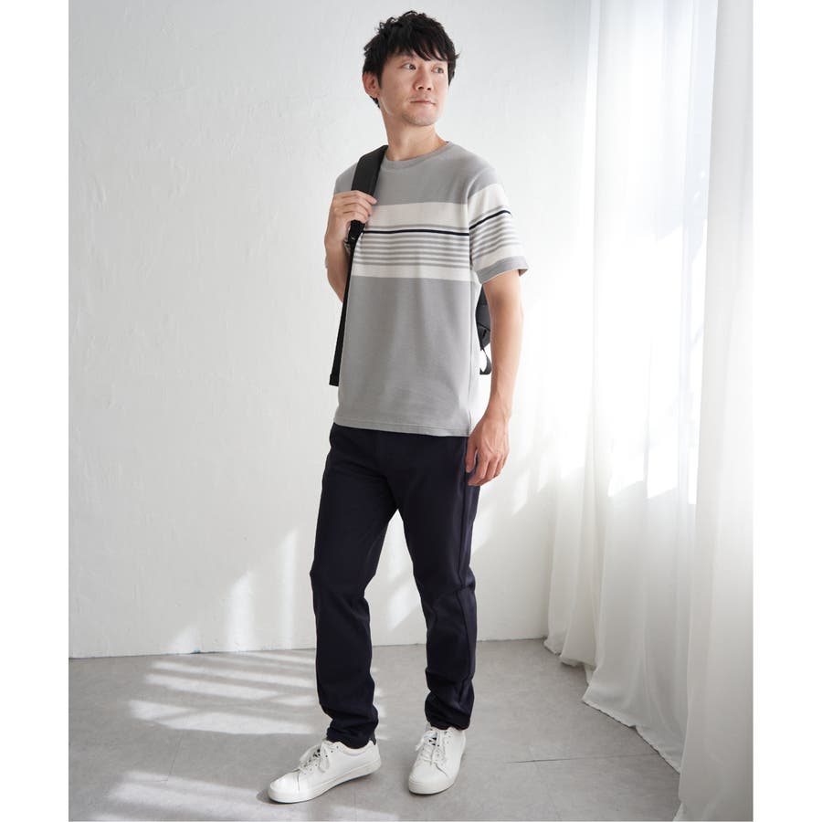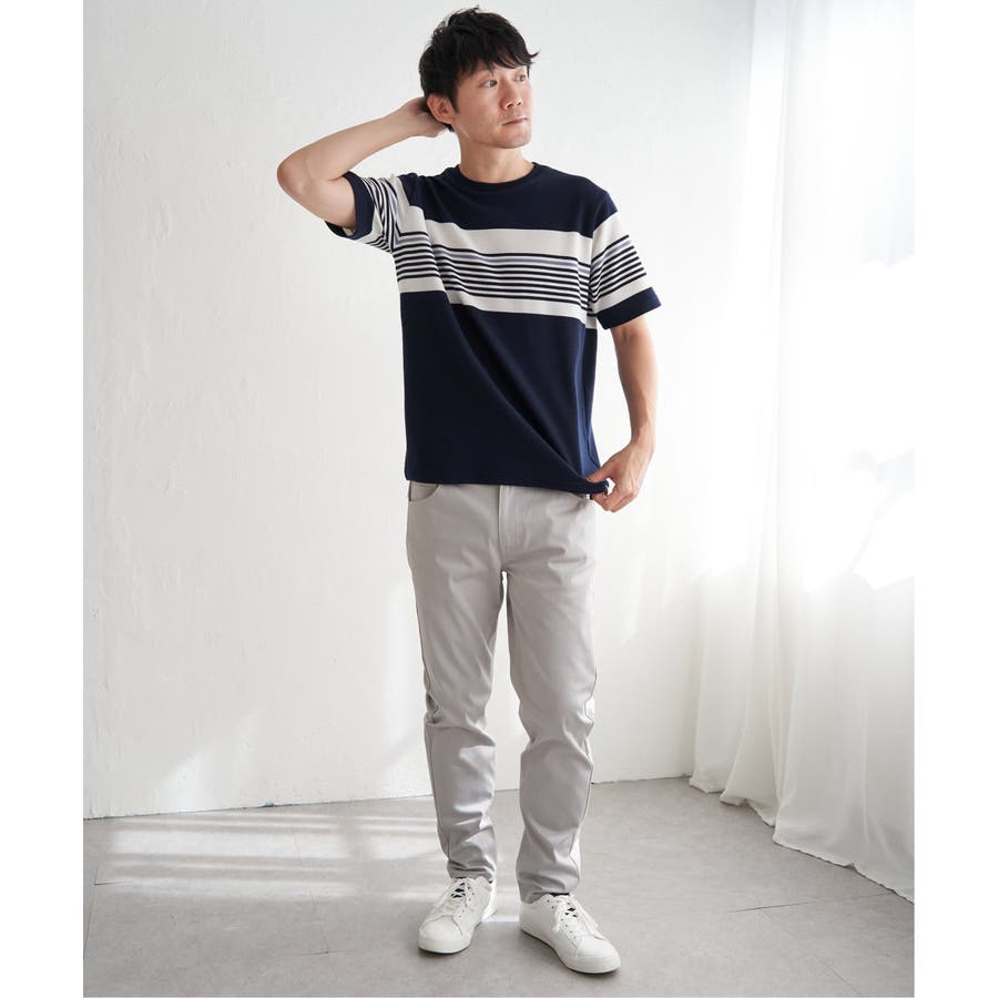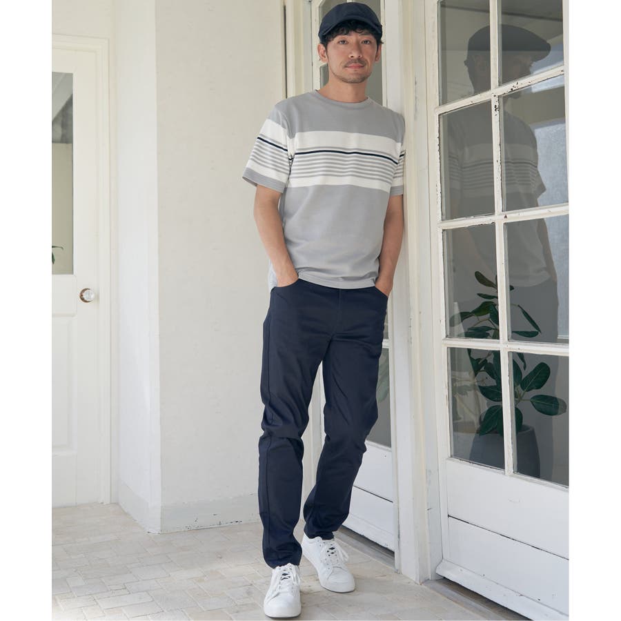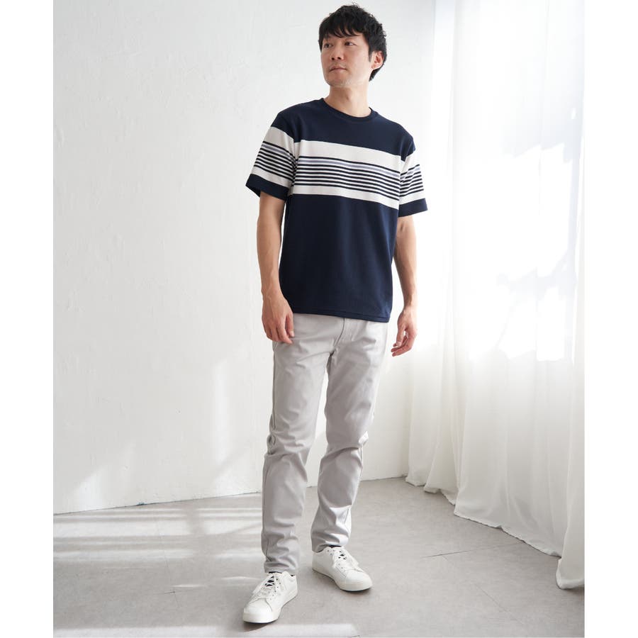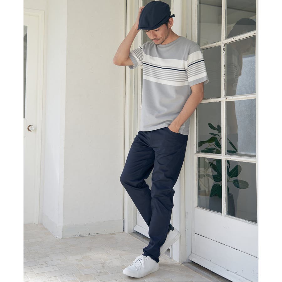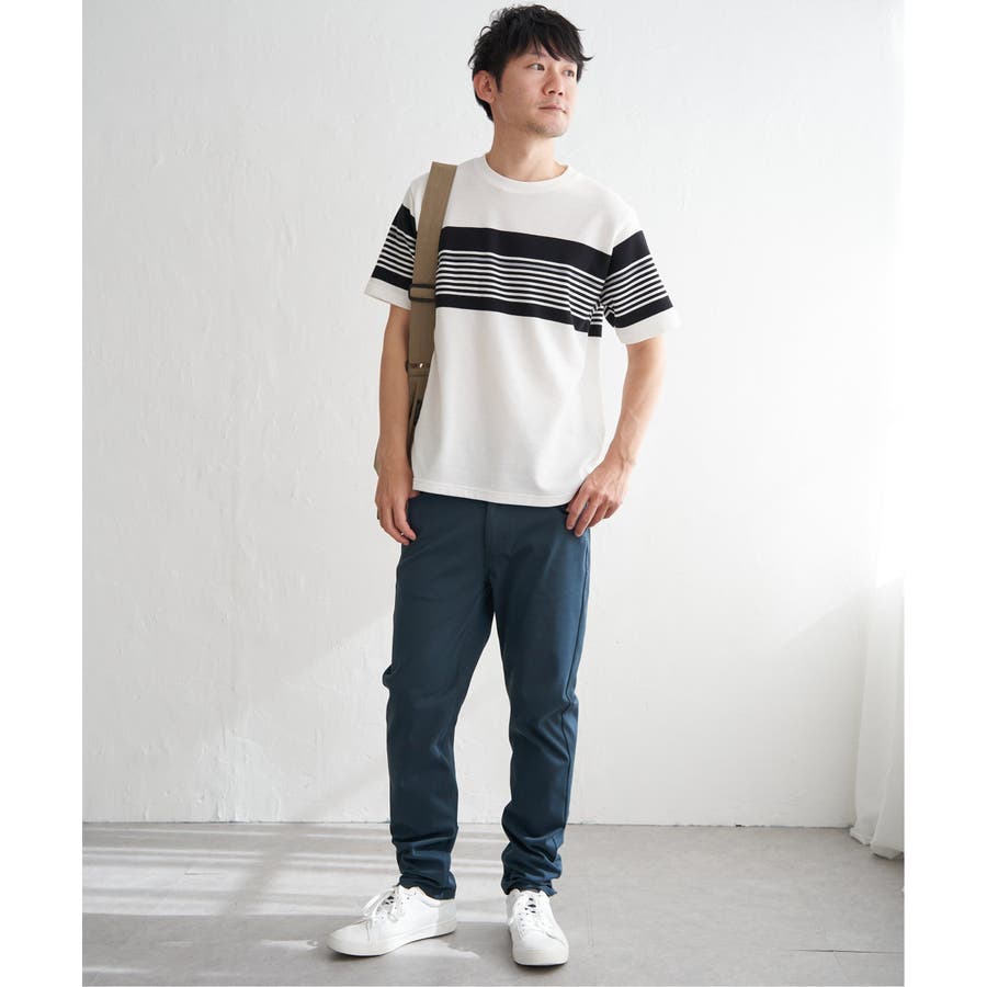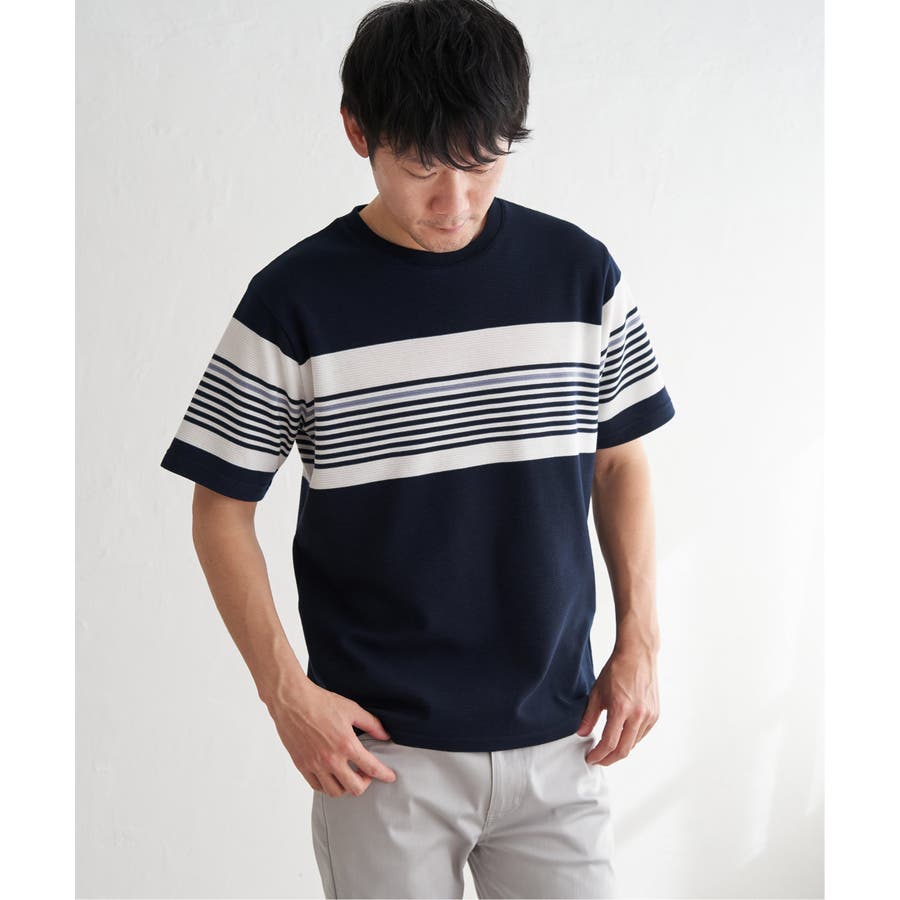 ボーダーの一部分が異なる配色になっており、さりげない遊び心を感じさせるデザイン。