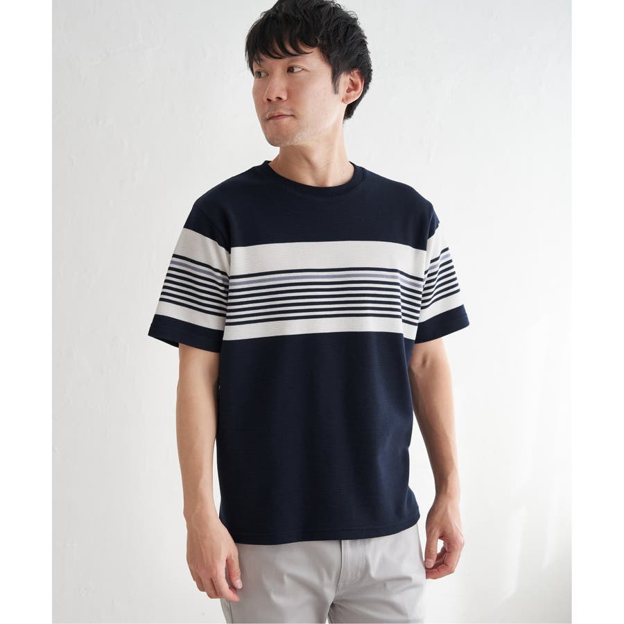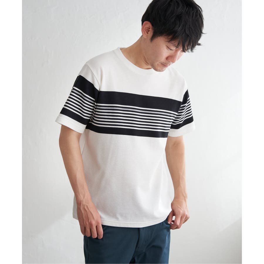凹凸感が特徴的なリップル素材を使用したTシャツ。