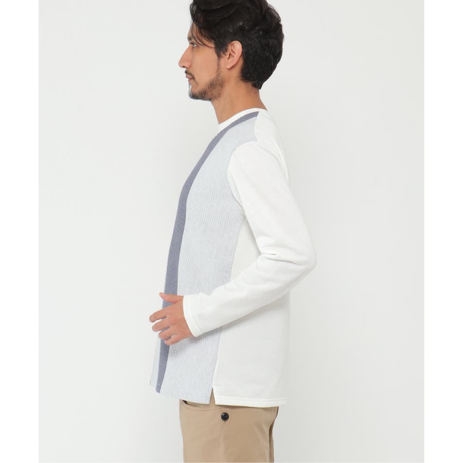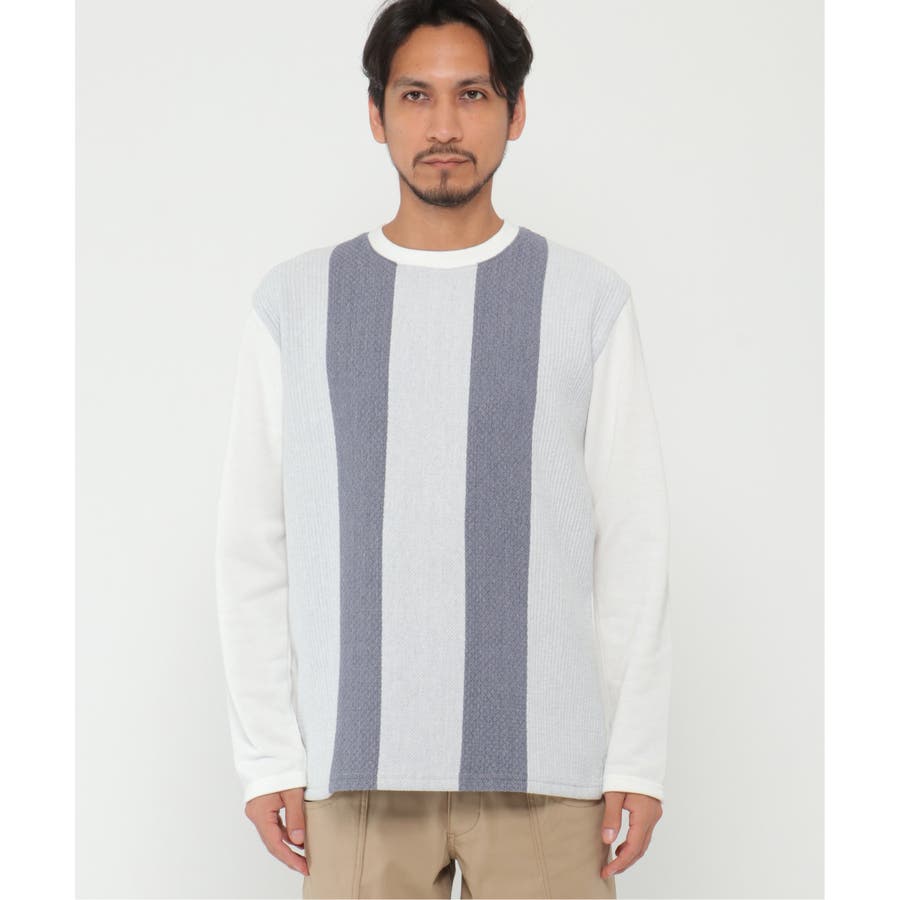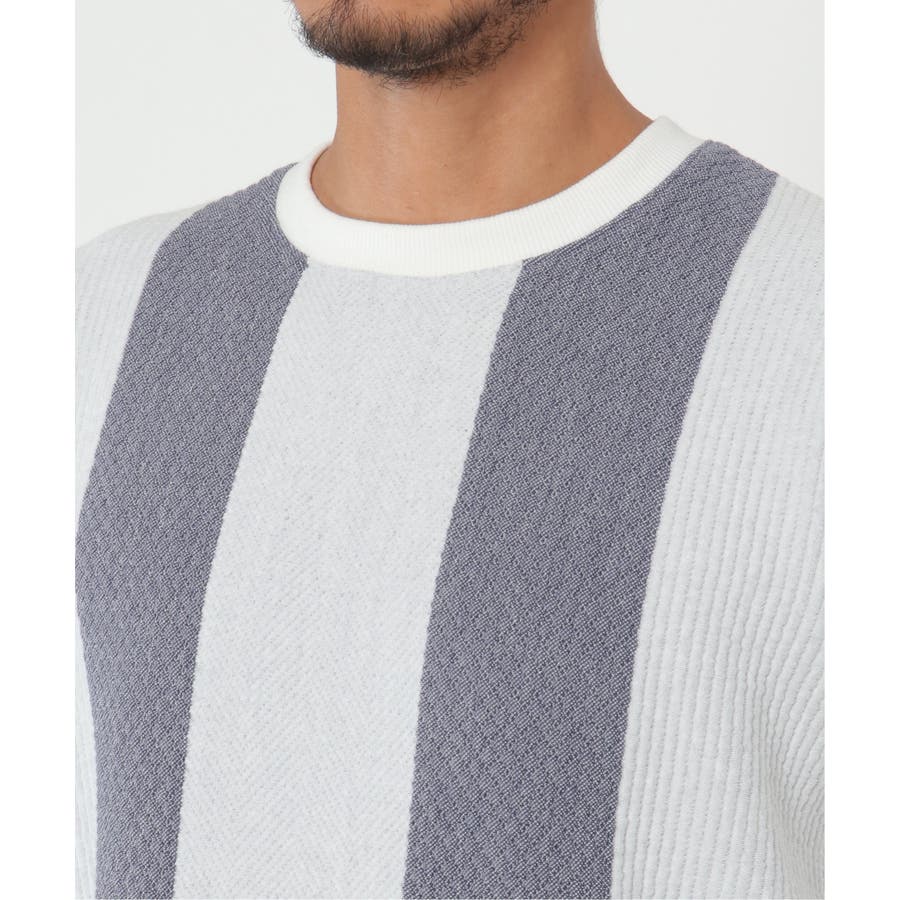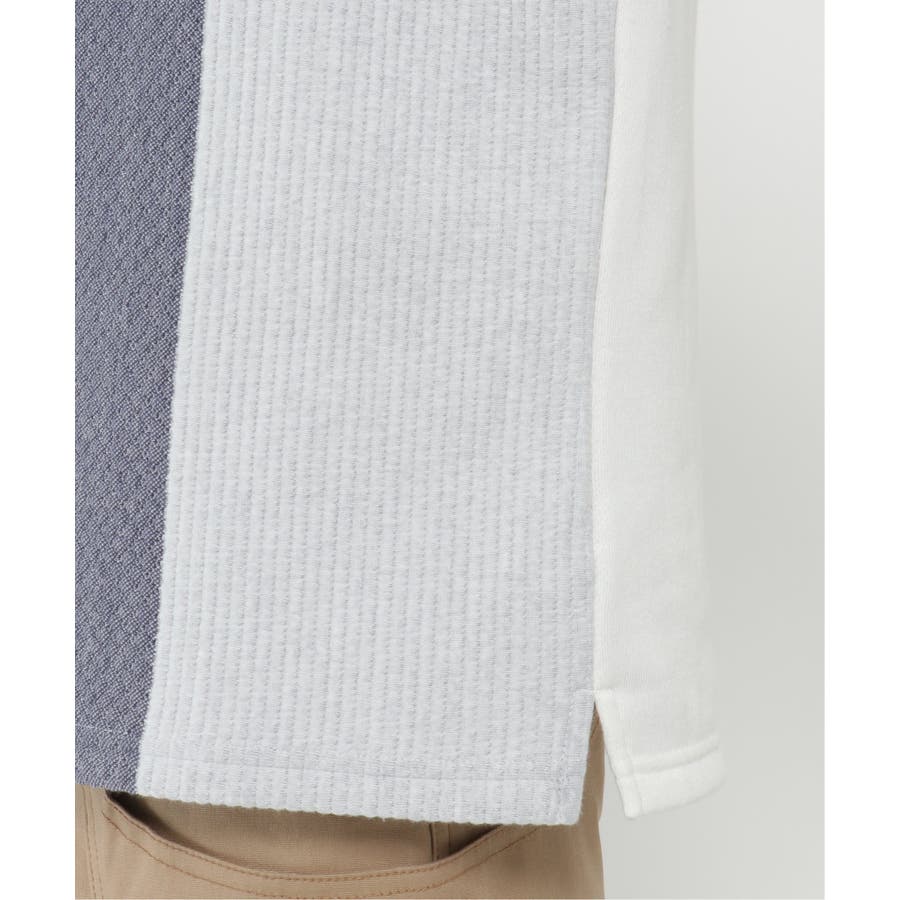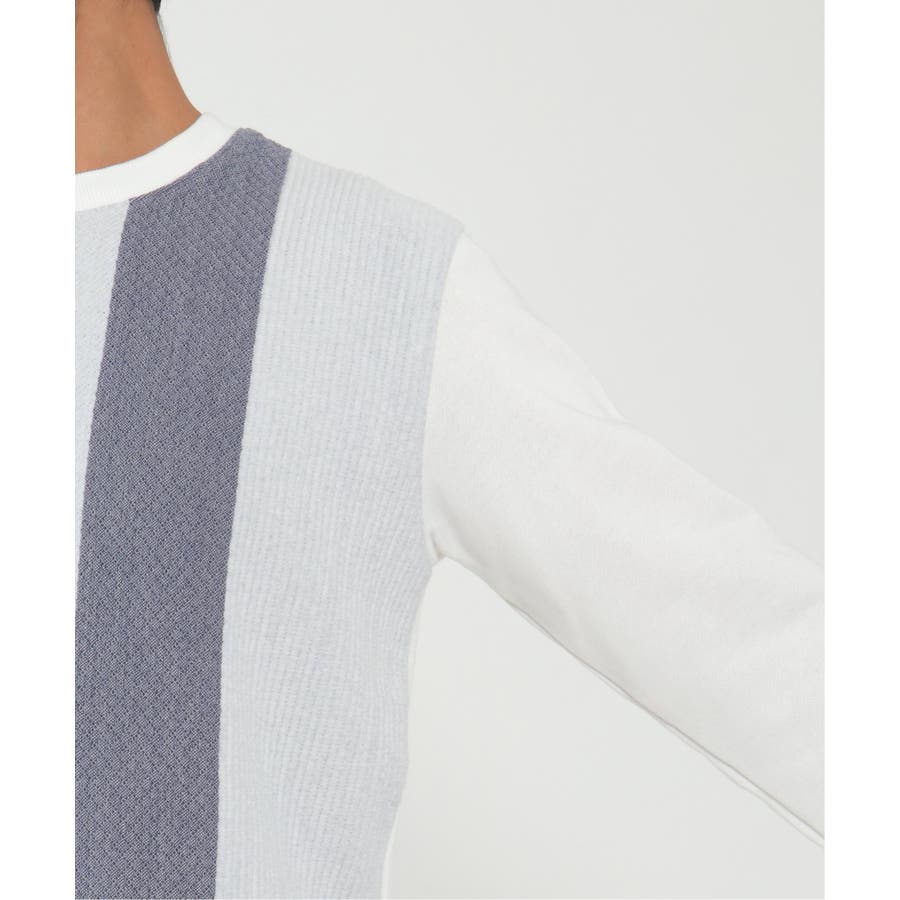 大胆な配色が目を引くニットライクな編地切替トレーナー!