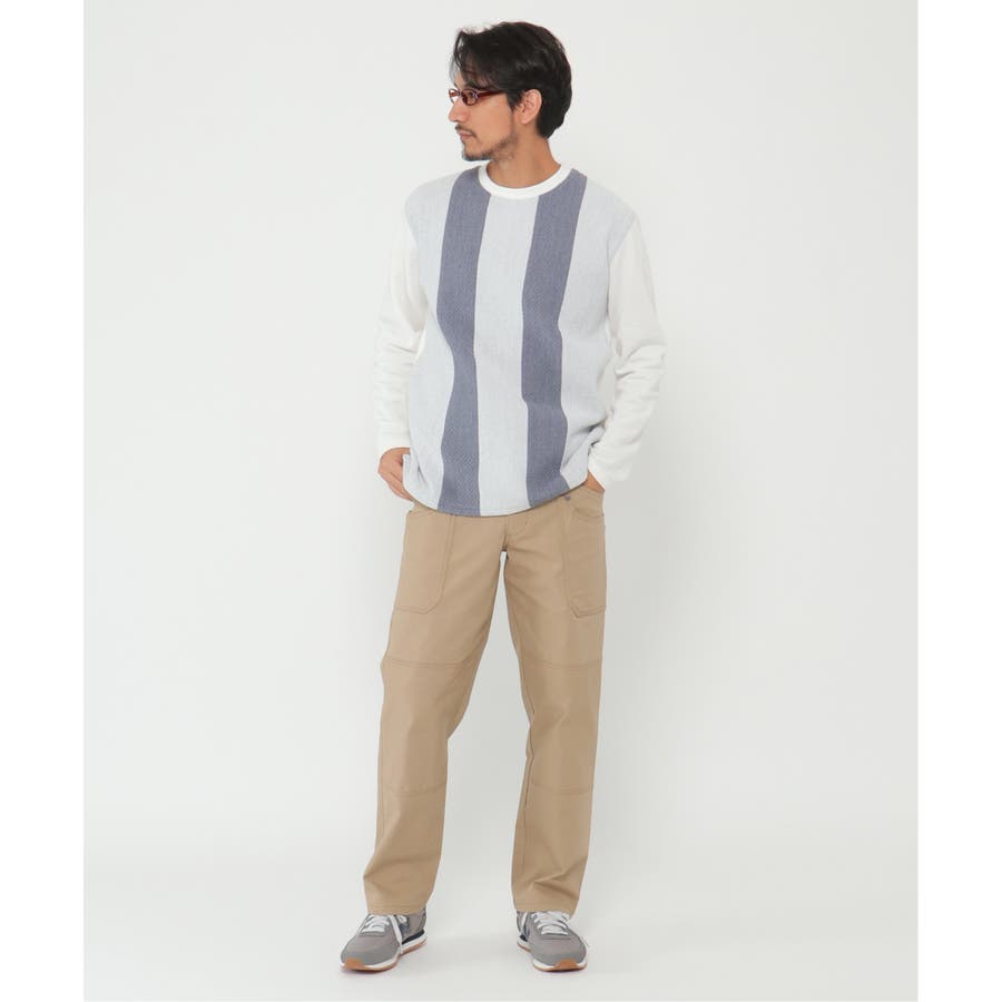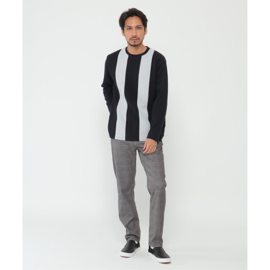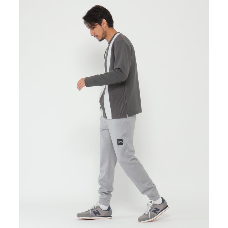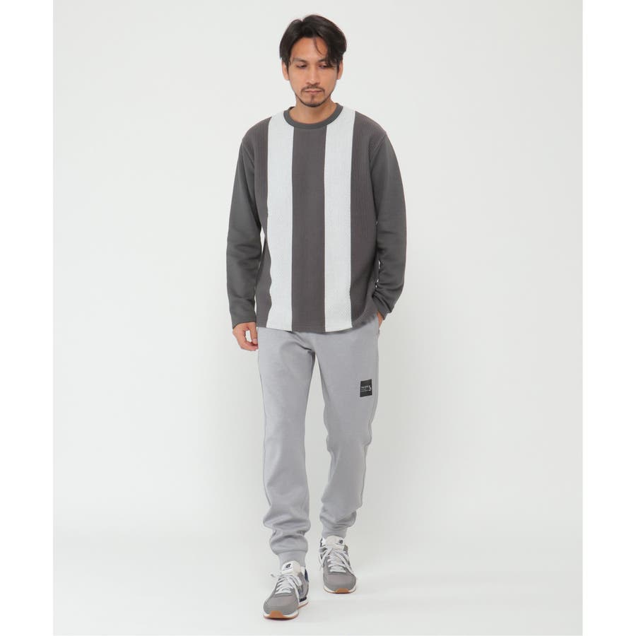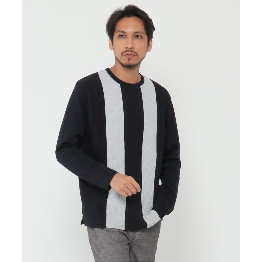 大胆な配色が目を引くニットライクな編地切替トレーナー!