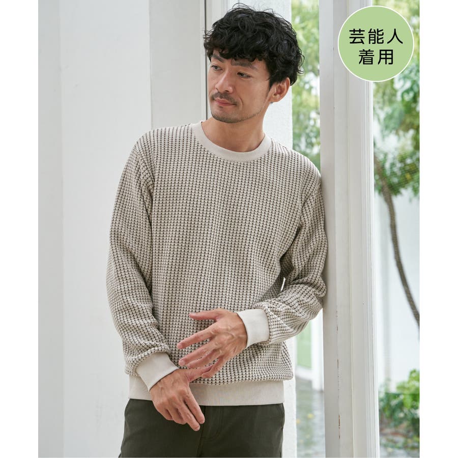 【芸能人着用】ビッグワッフルクルーネックプルオーバー