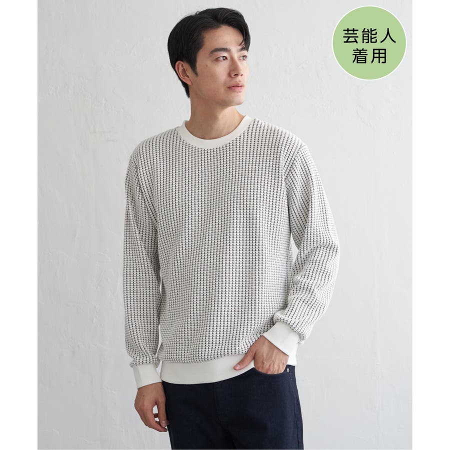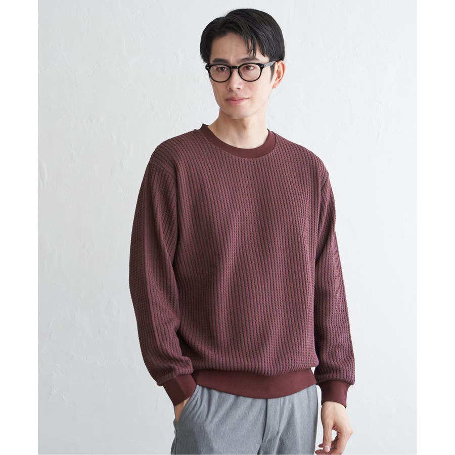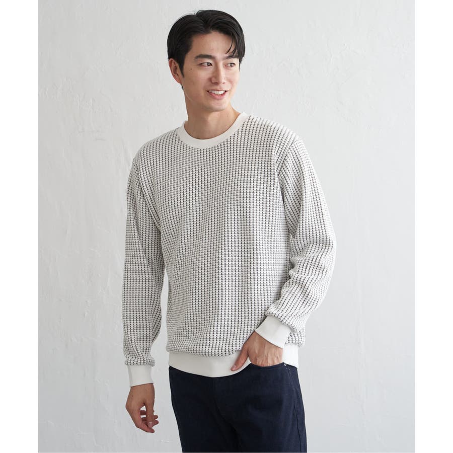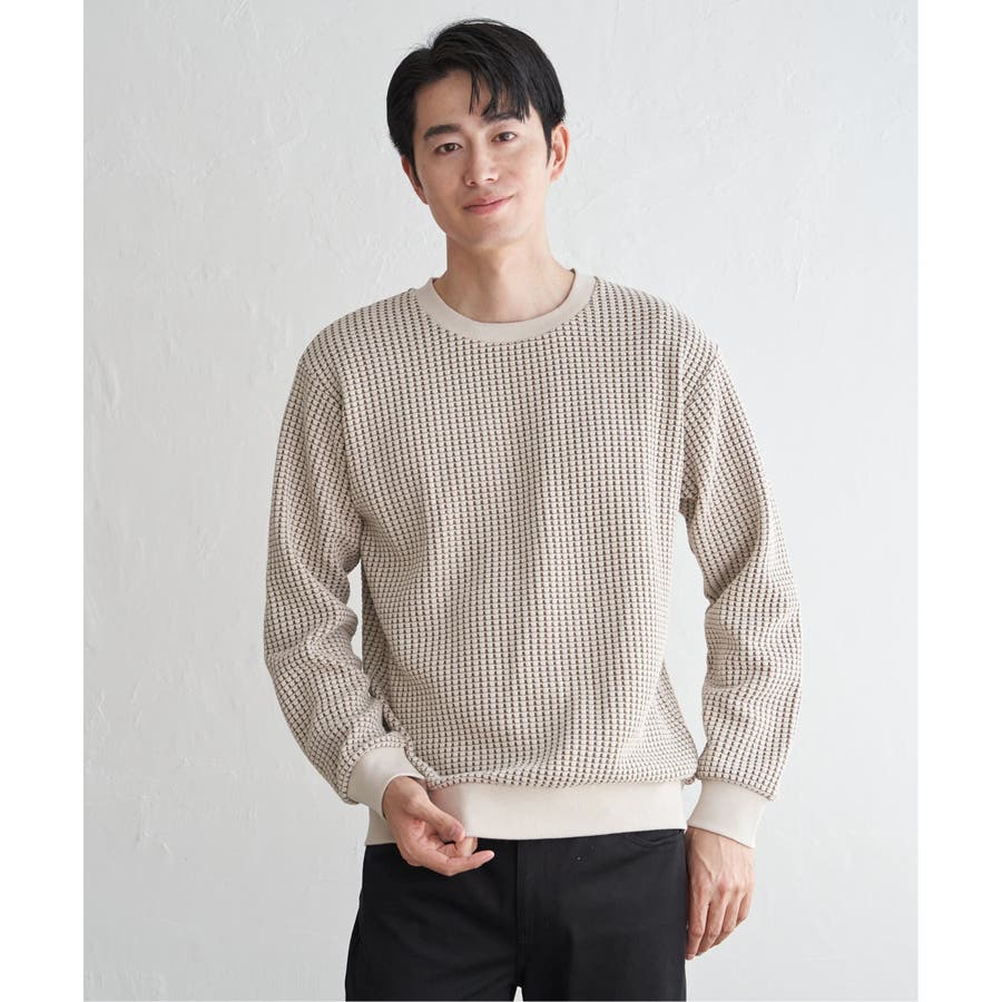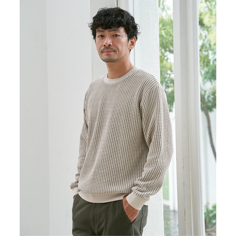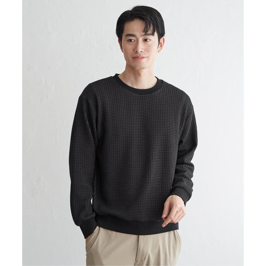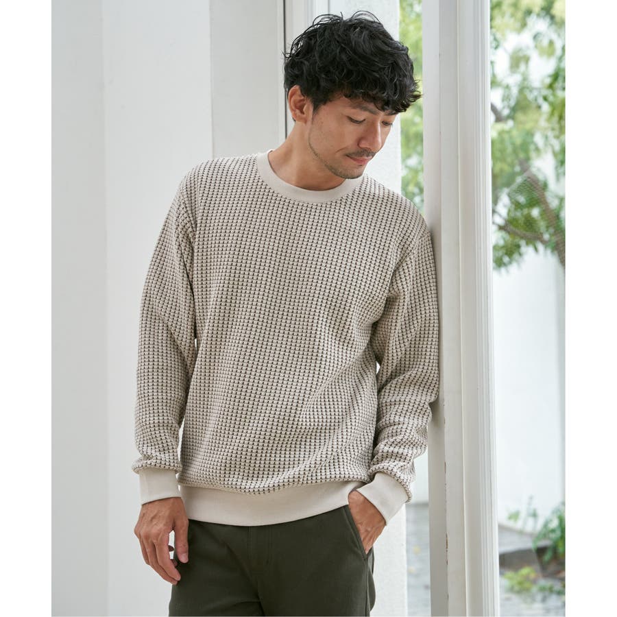 シンプルながら存在感のあるワッフル生地を使用した、クルーネックのプルオーバー。