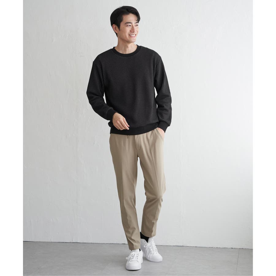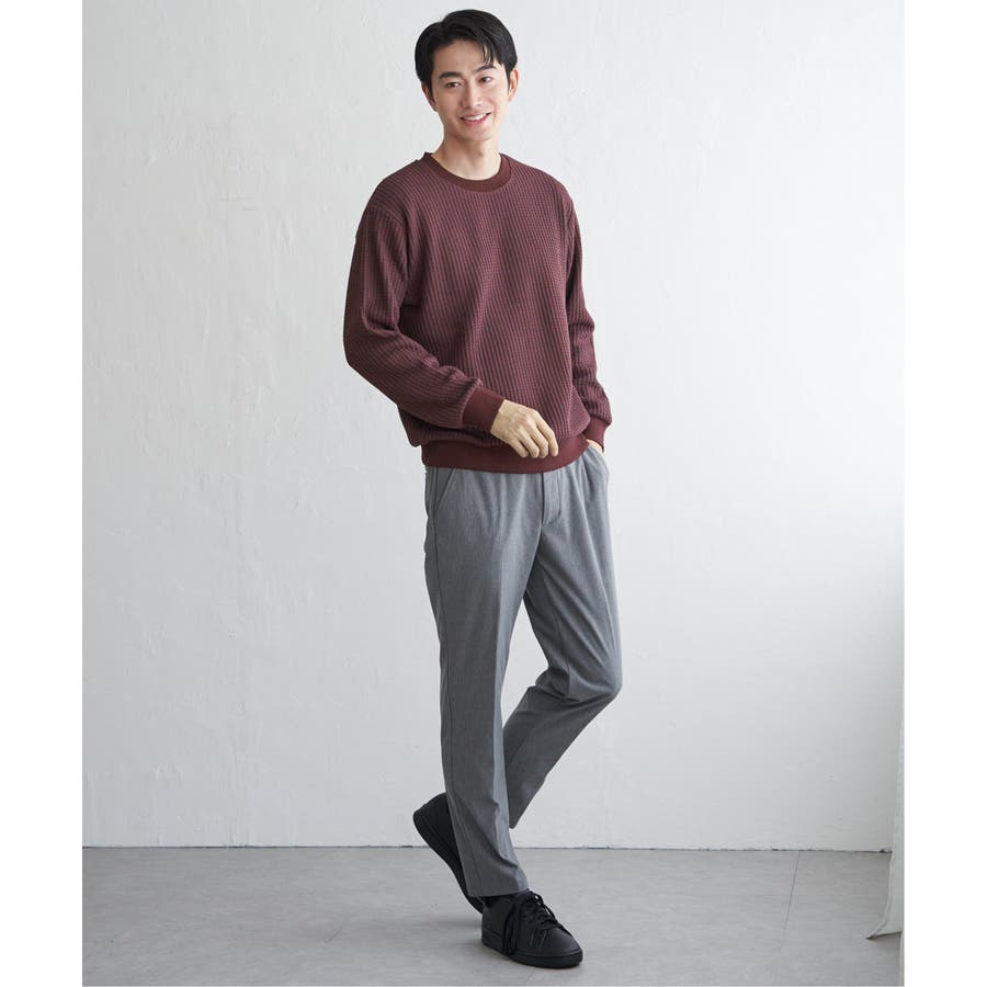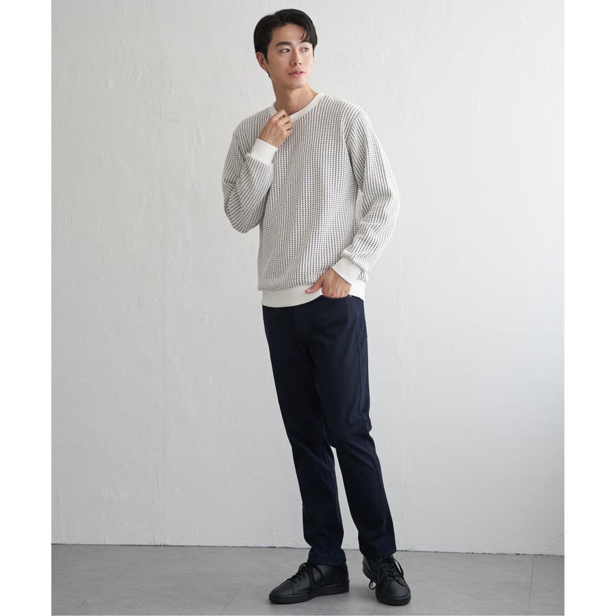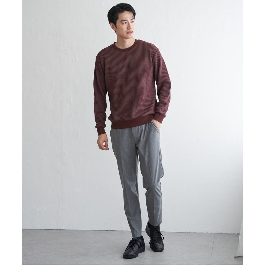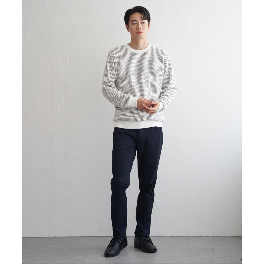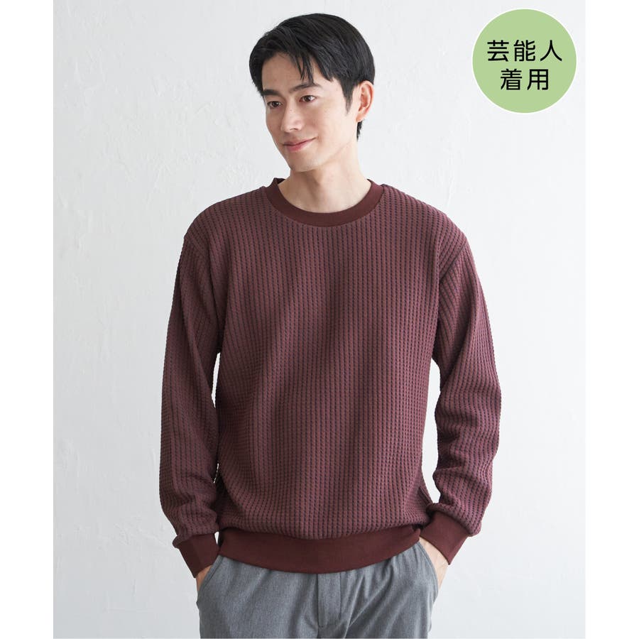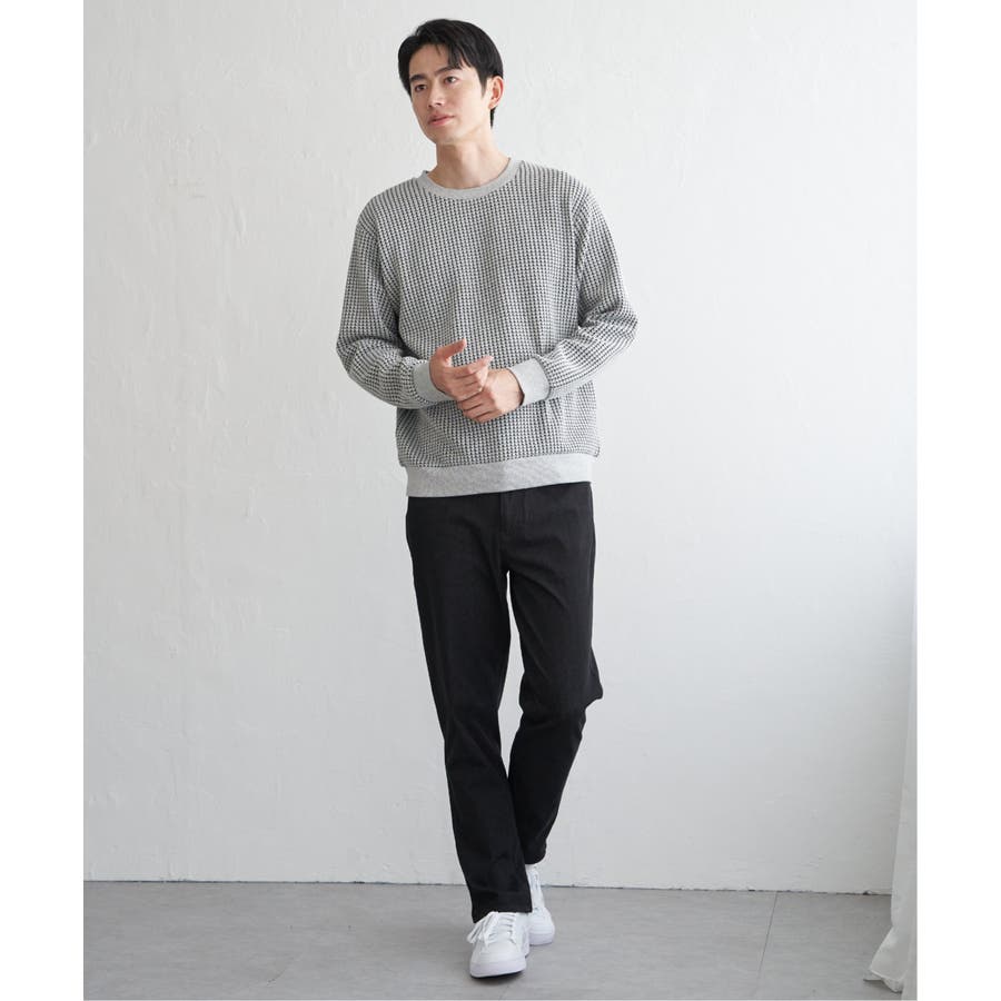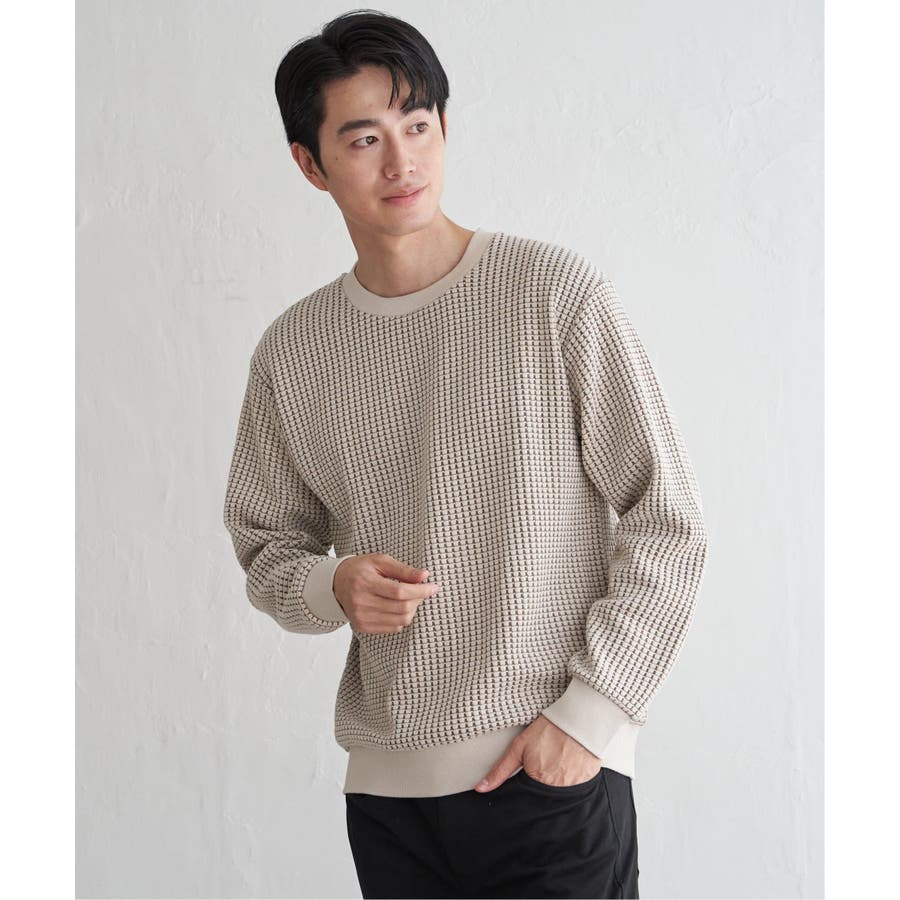 シンプルながら存在感のあるワッフル生地を使用した、クルーネックのプルオーバー。