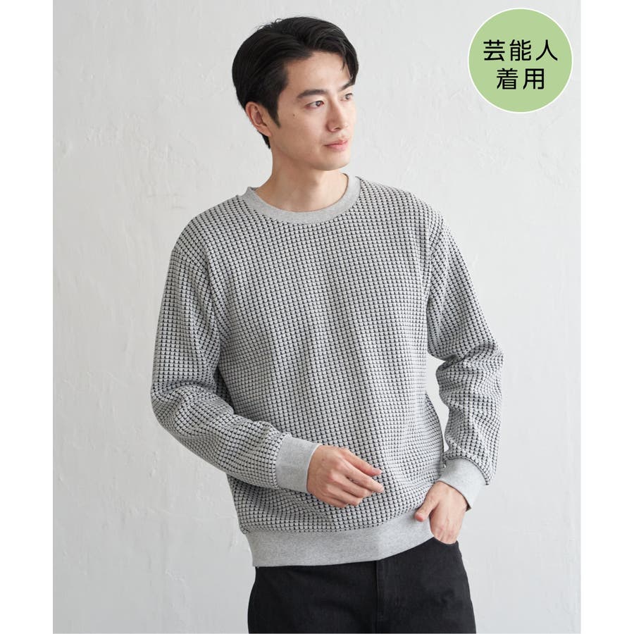 凹凸が特徴的なビッグワッフルのトレーナー。