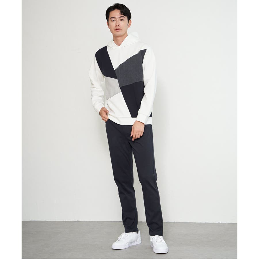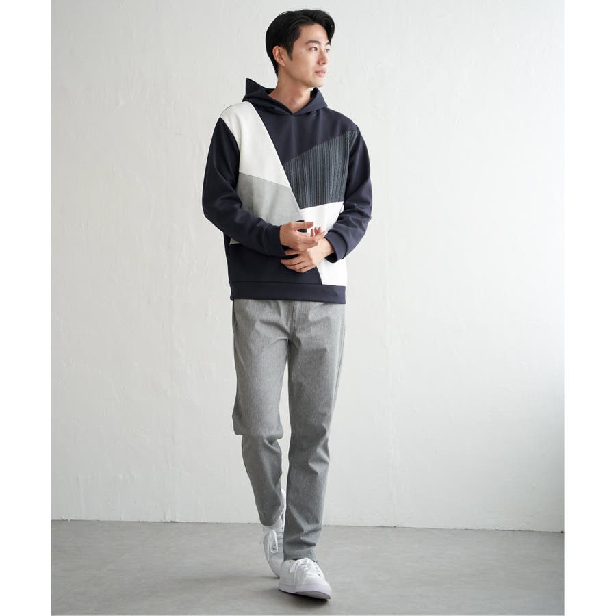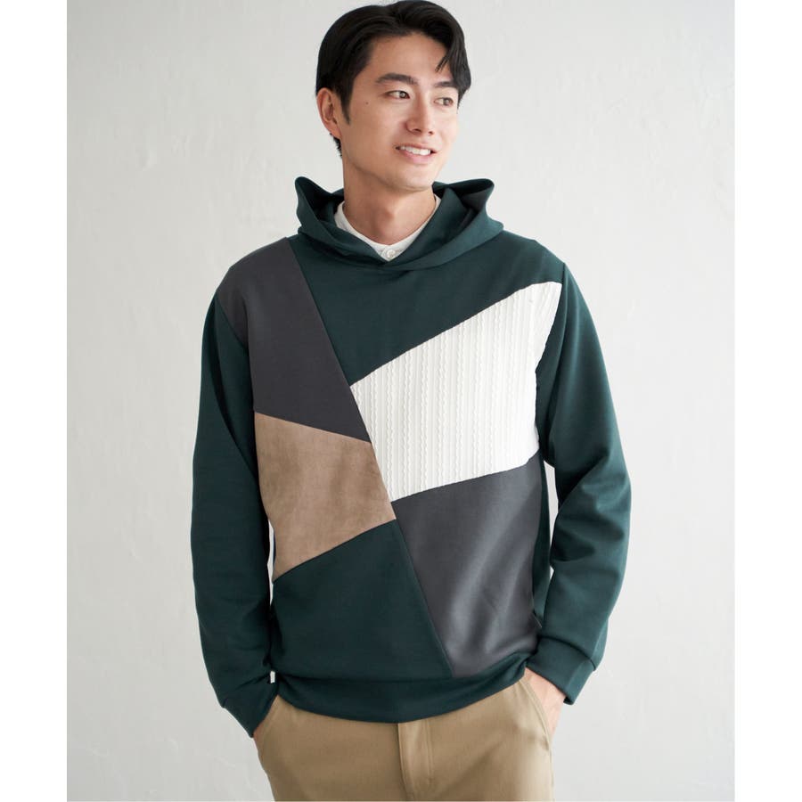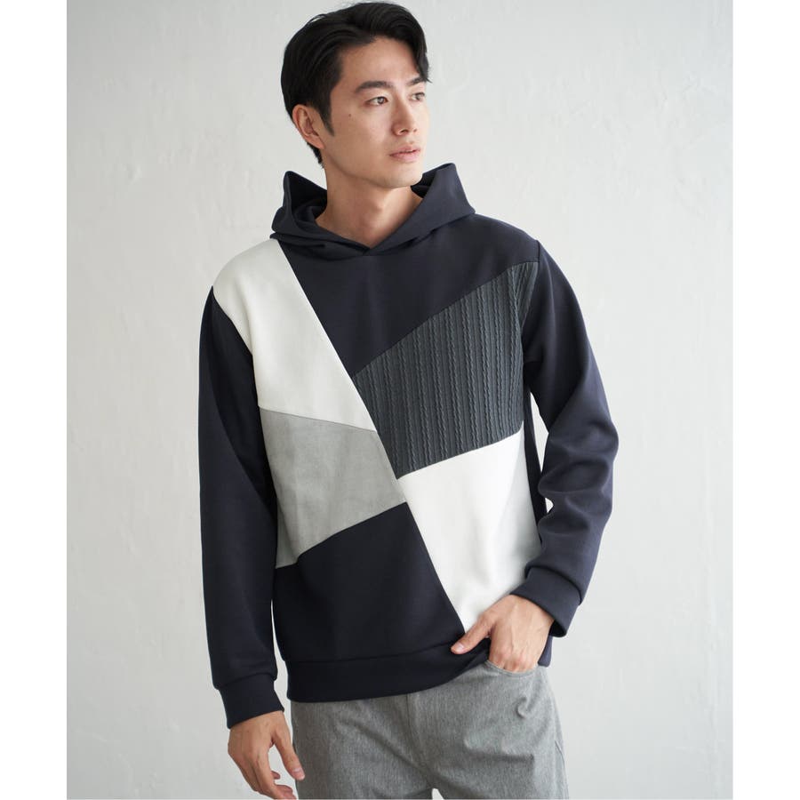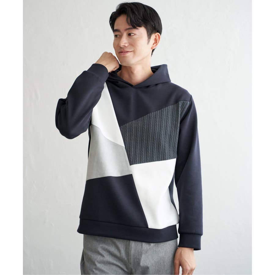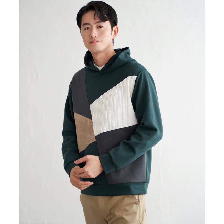 3種の異素材を組み合わせたプルオーバーパーカ。