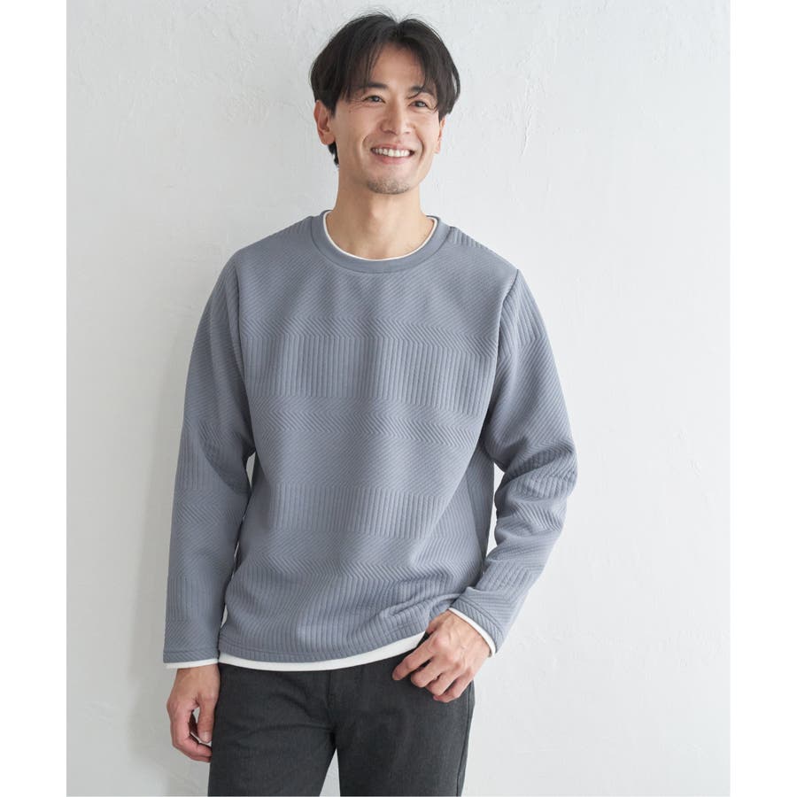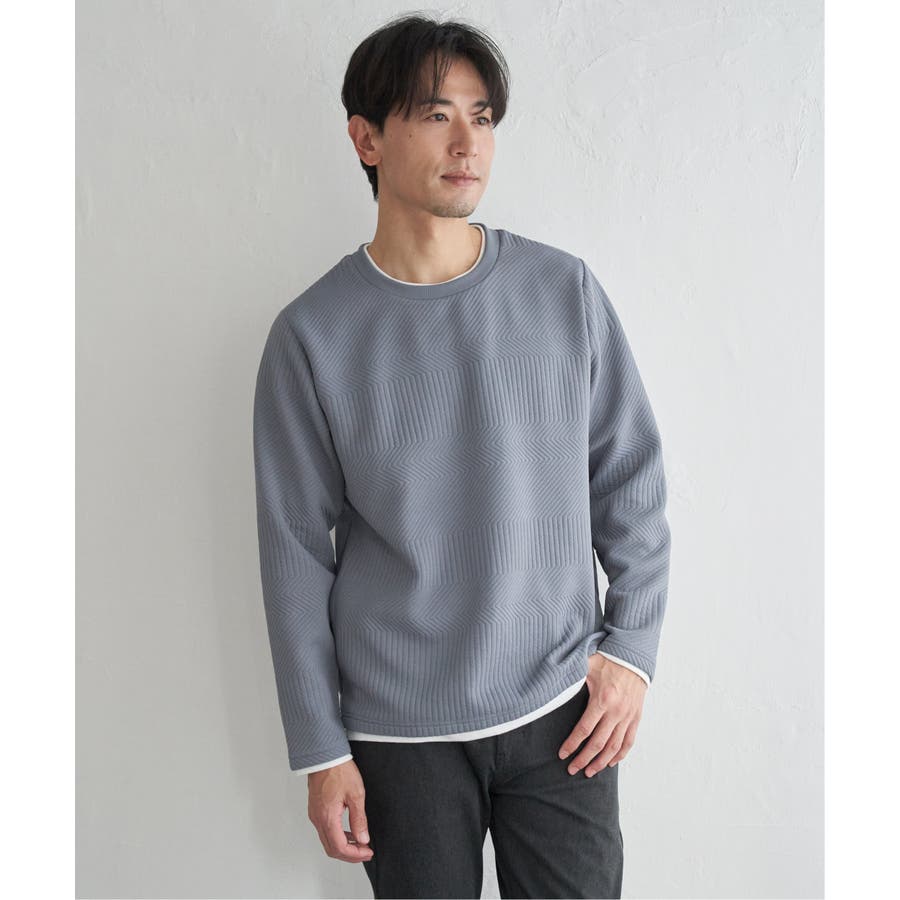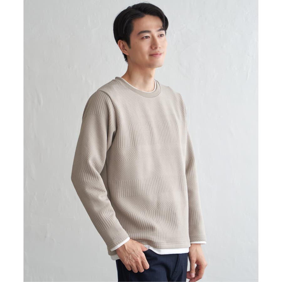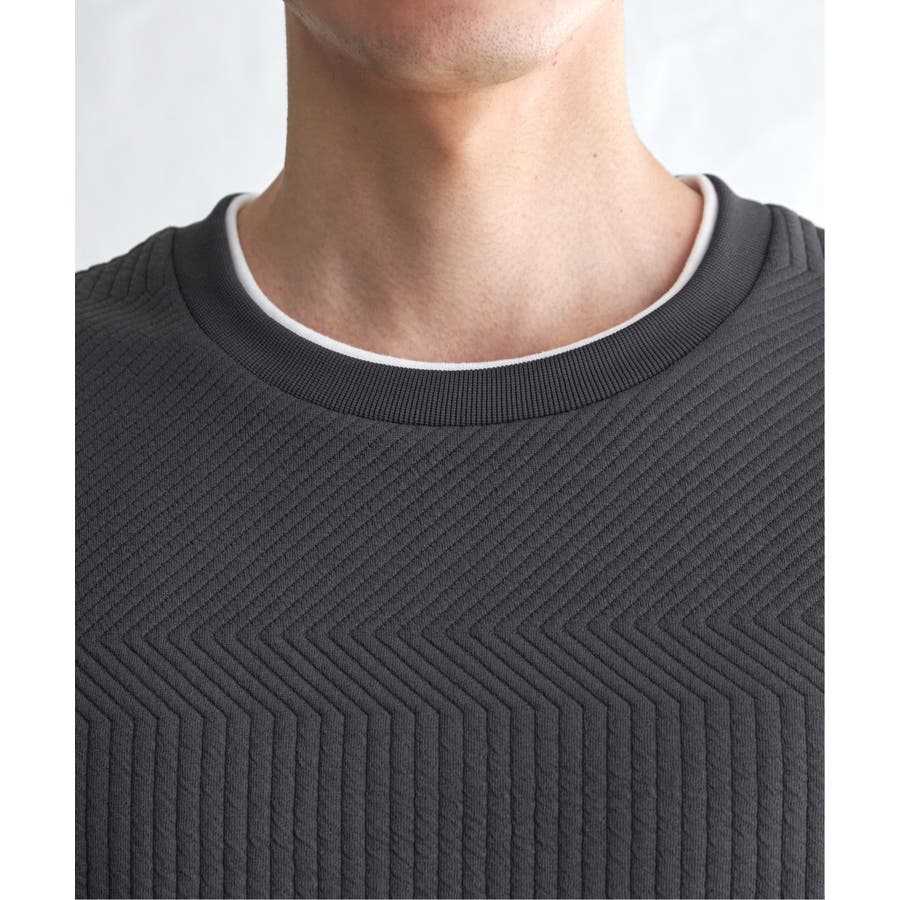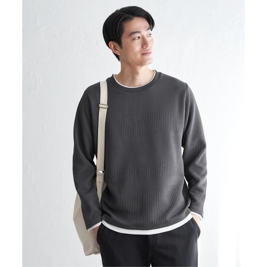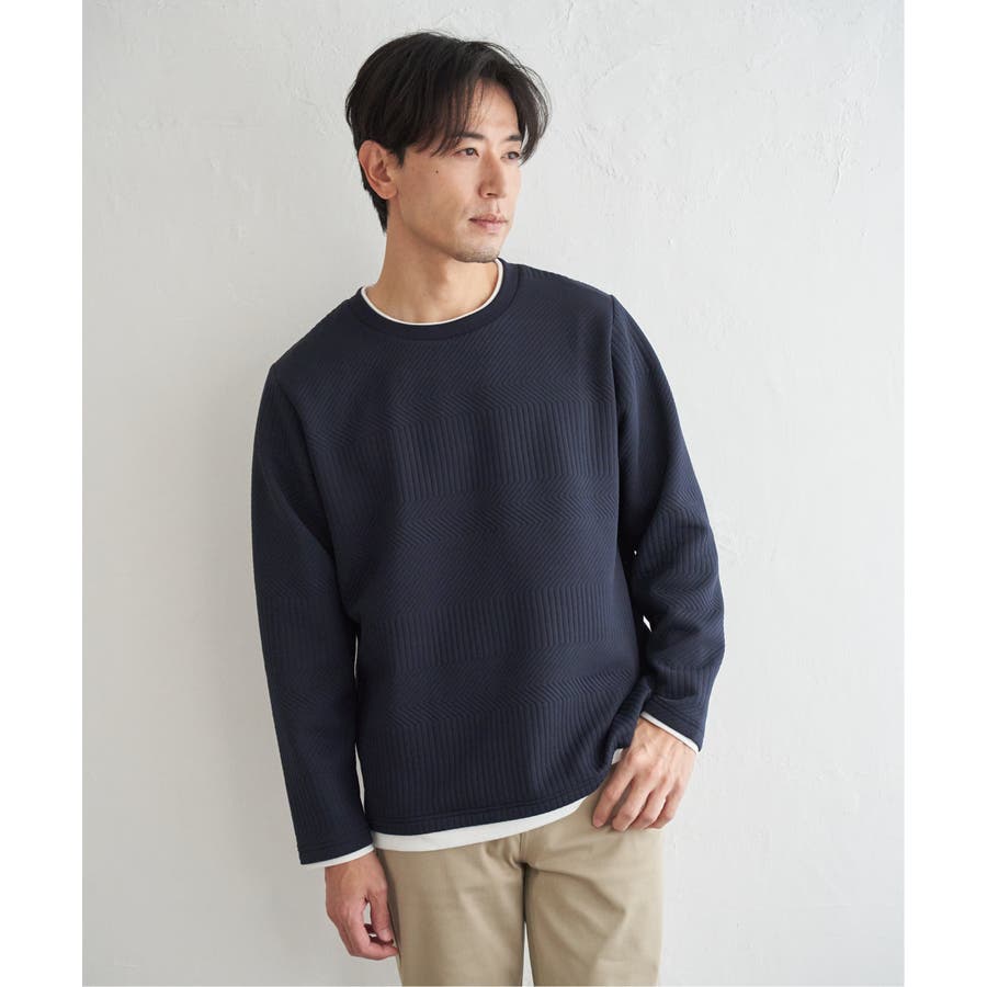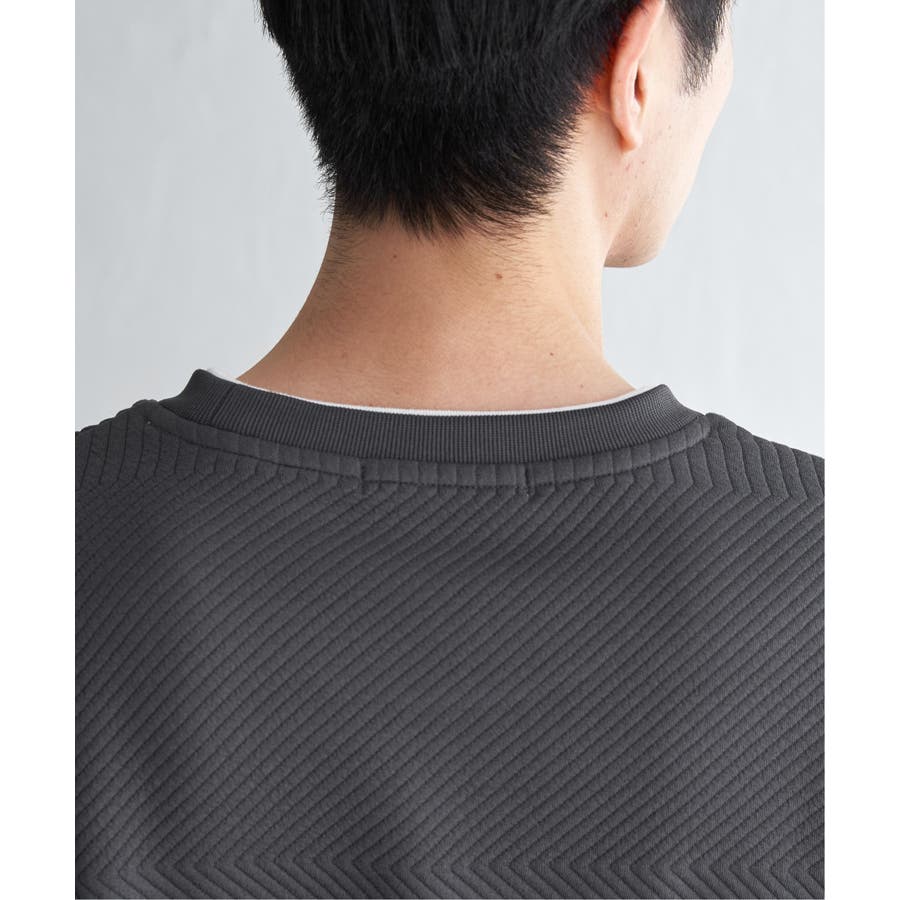 インナーをレイヤードしているように見え方で、ジャケットやアウターのインナーとしてはもちろん、単品でもスタイルを格上げしてくれるアイテムです。