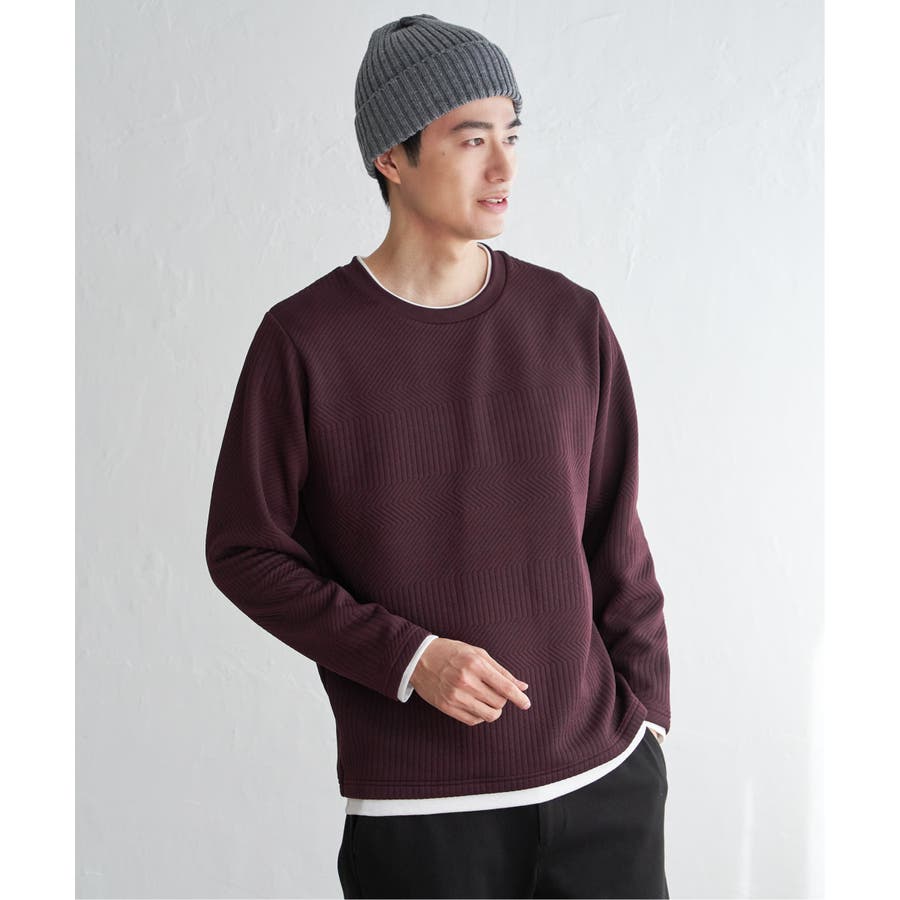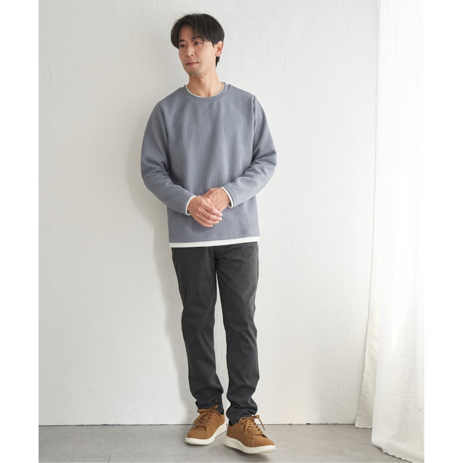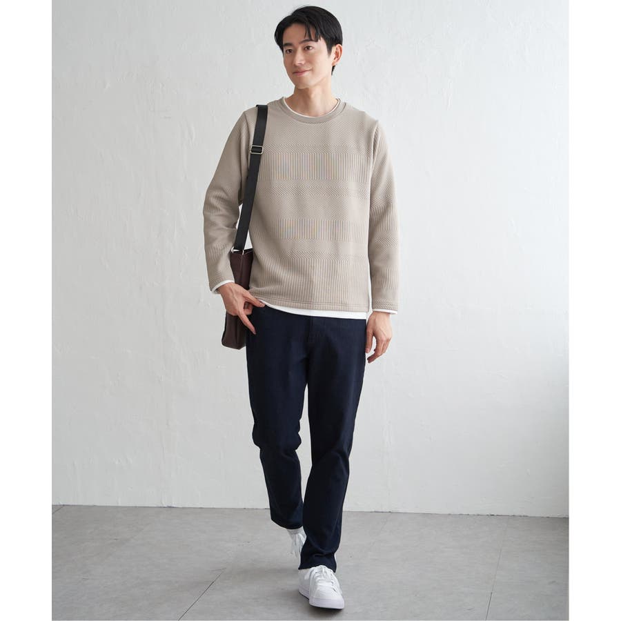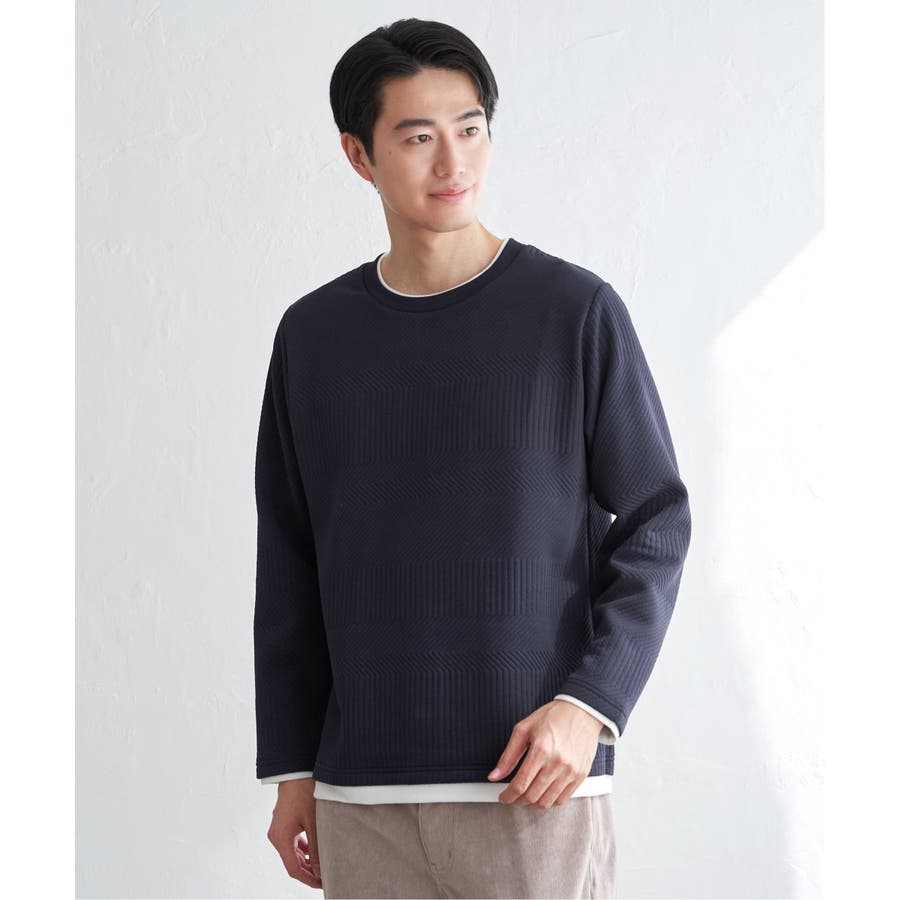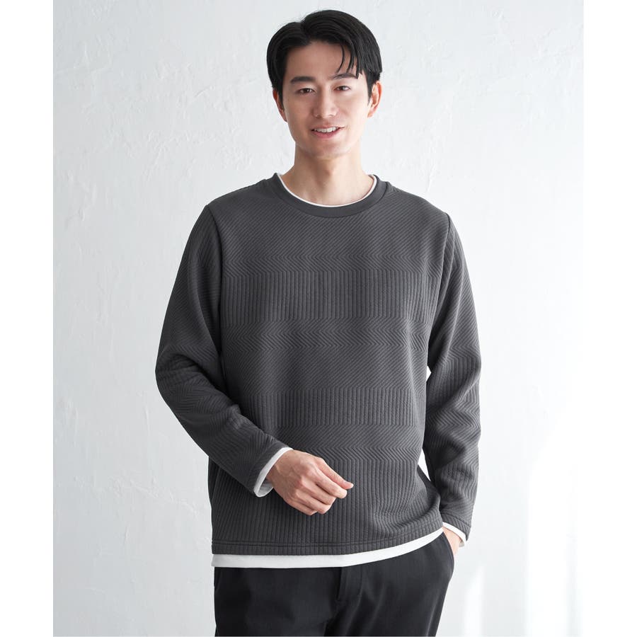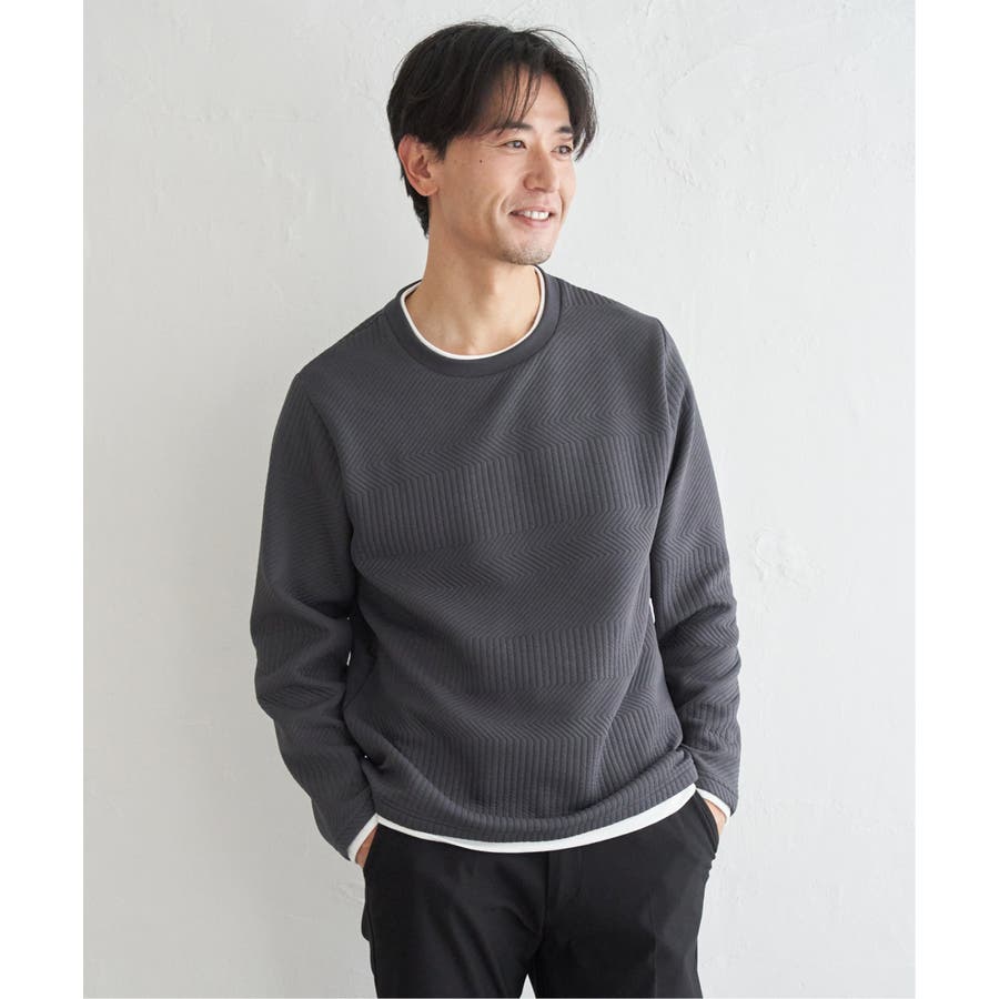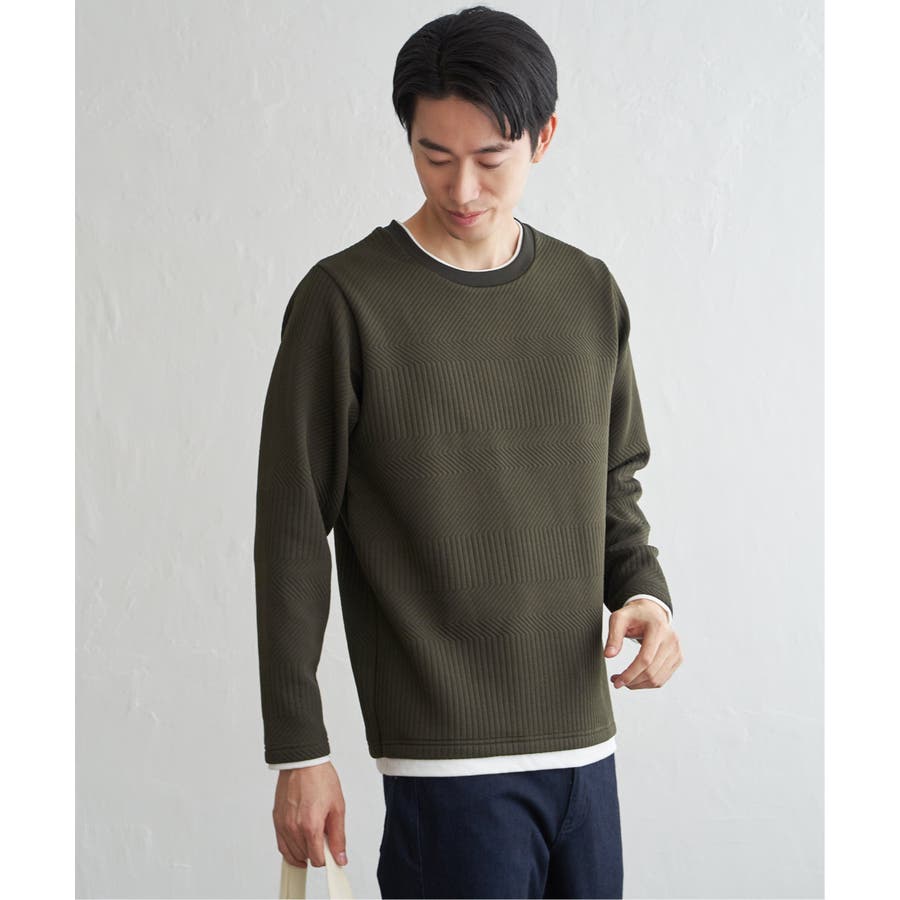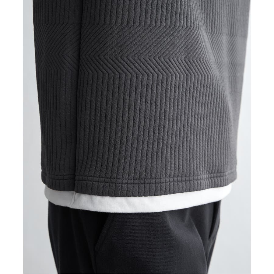 インナーをレイヤードしているように見え方で、ジャケットやアウターのインナーとしてはもちろん、単品でもスタイルを格上げしてくれるアイテムです。