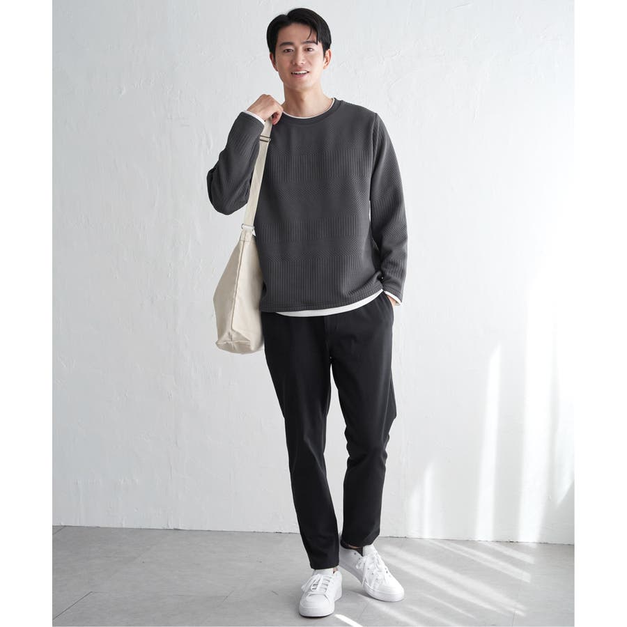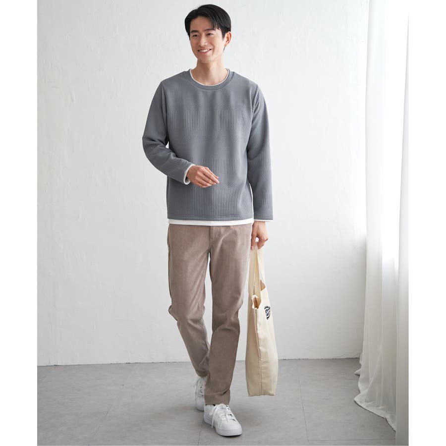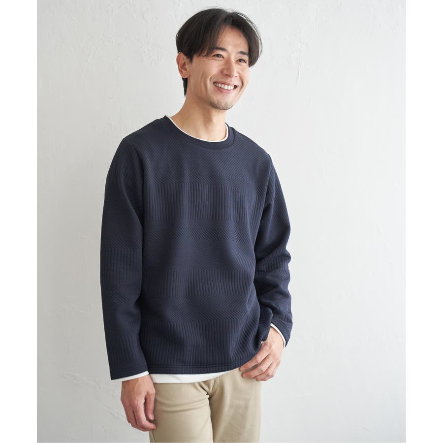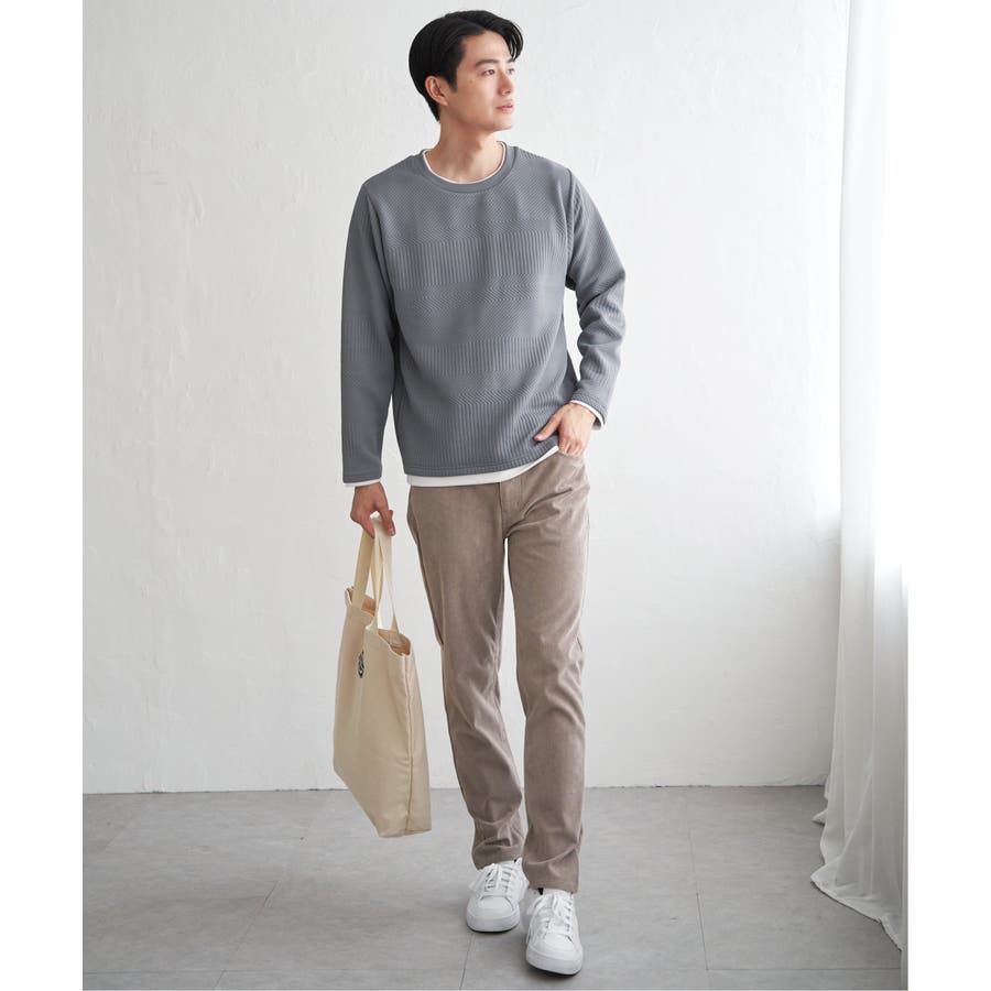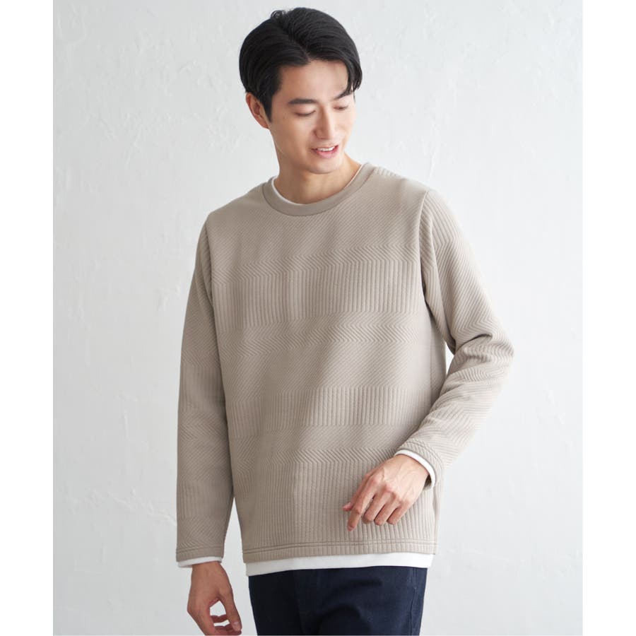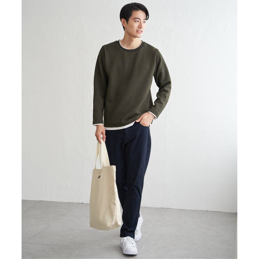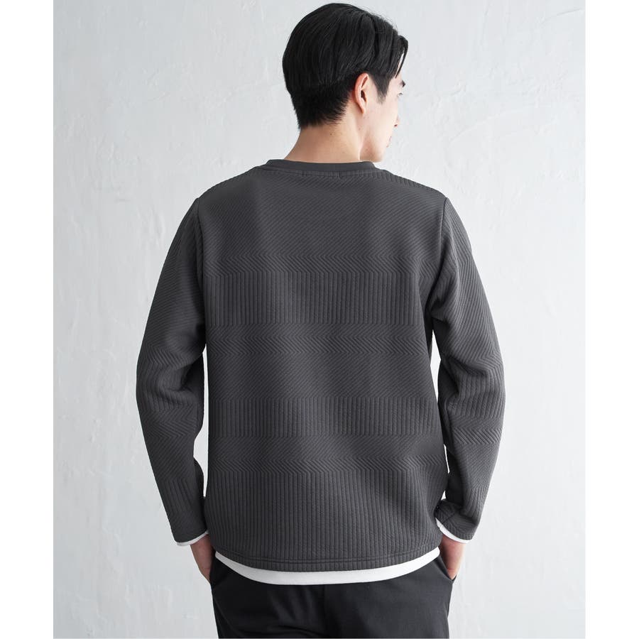インナーをレイヤードしているように見え方で、ジャケットやアウターのインナーとしてはもちろん、単品でもスタイルを格上げしてくれるアイテムです。