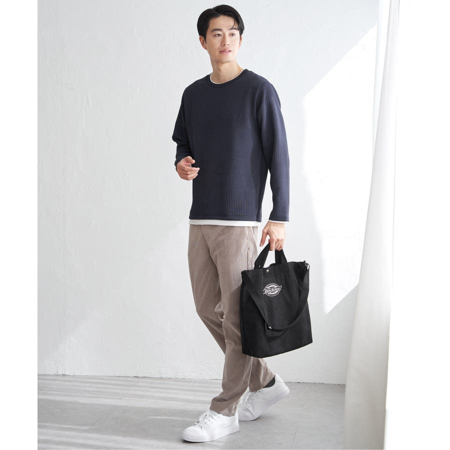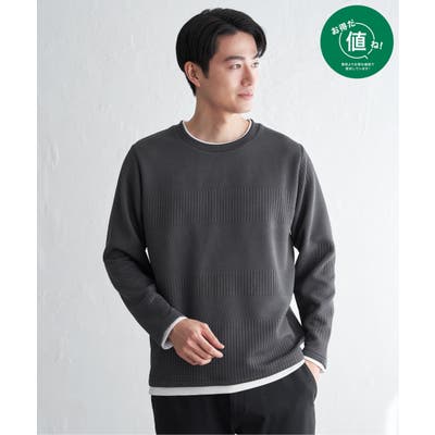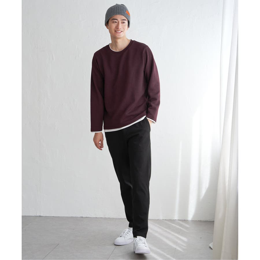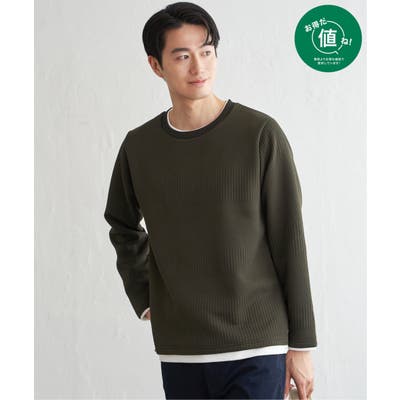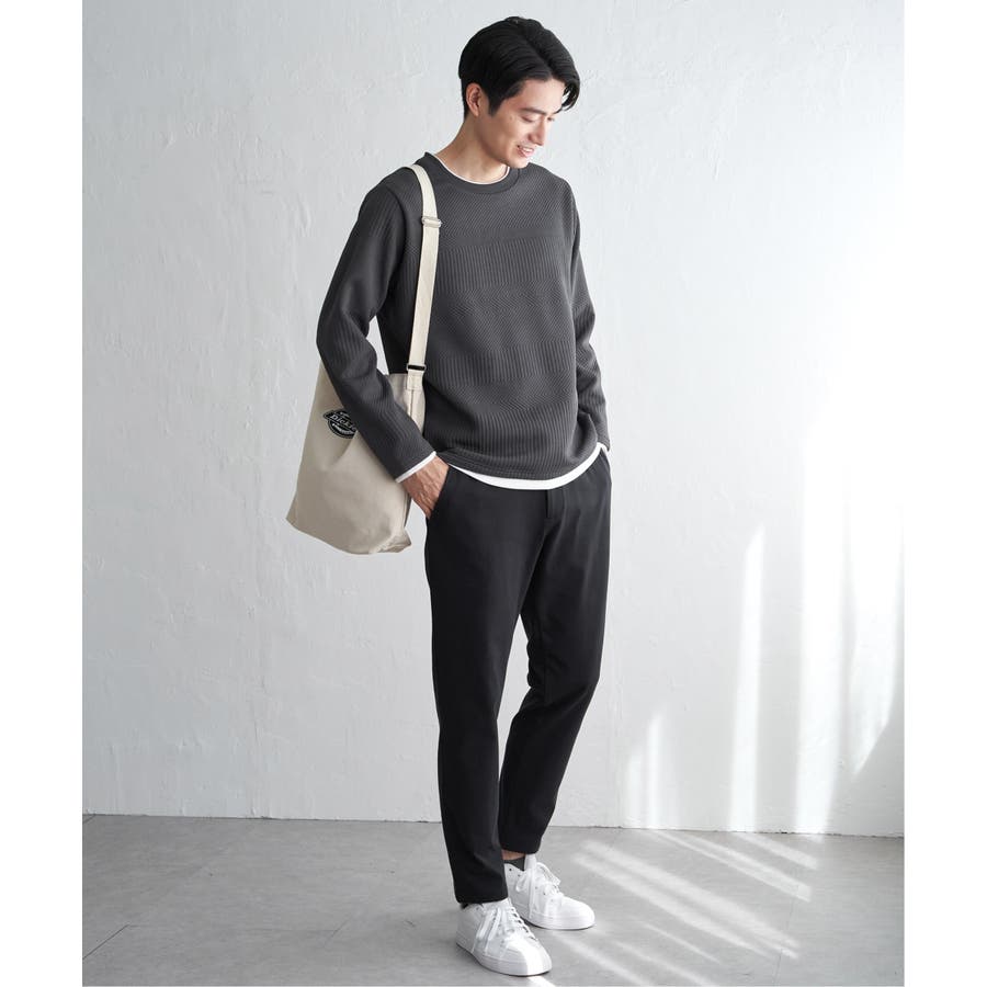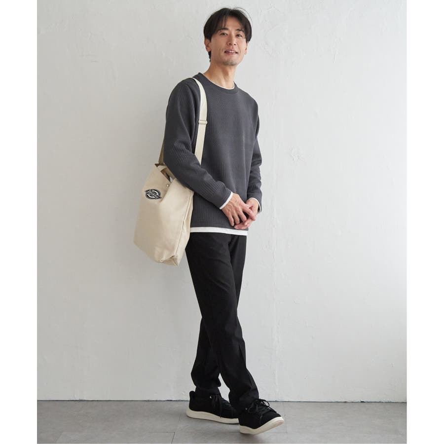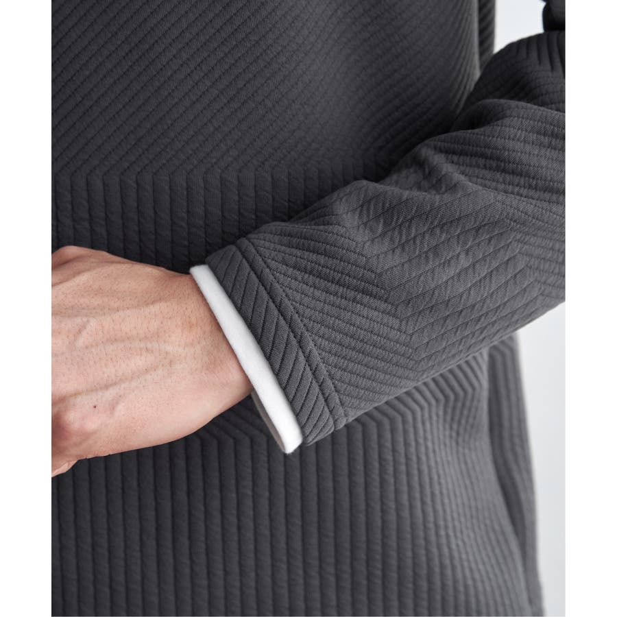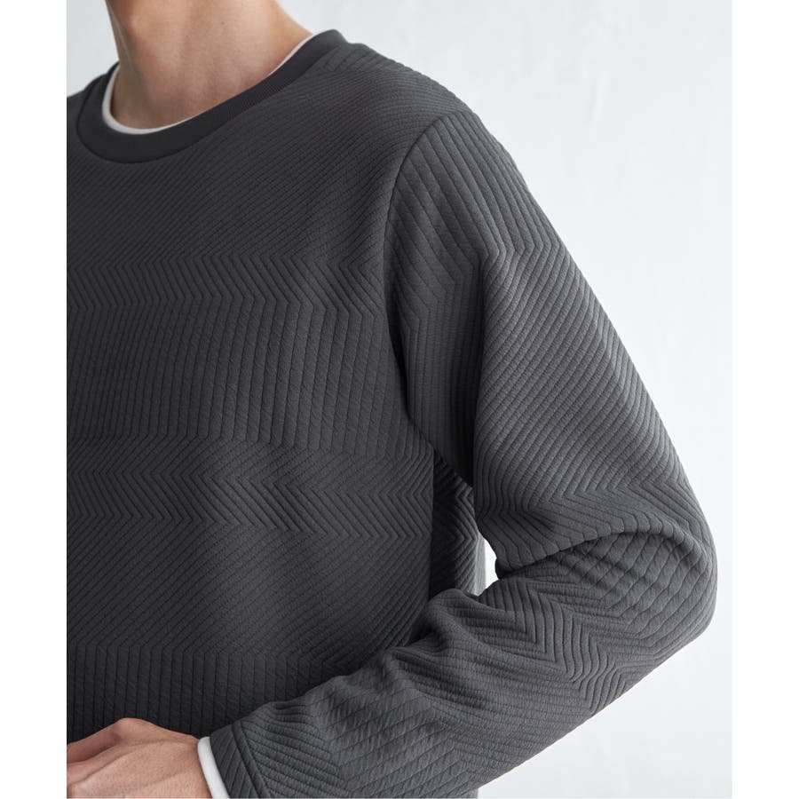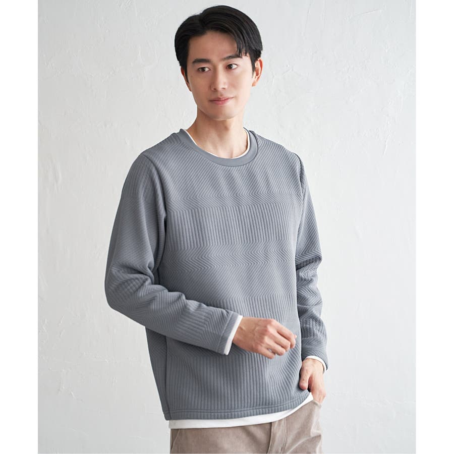 インナーをレイヤードしているように見え方で、ジャケットやアウターのインナーとしてはもちろん、単品でもスタイルを格上げしてくれるアイテムです。