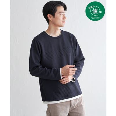 長袖TシャツのフェイクレイヤードロンT。
