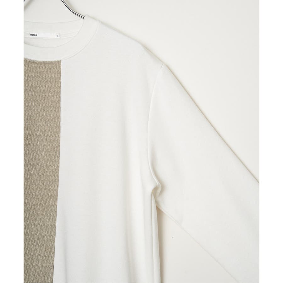 凹凸のあるふくれジャカードと、裏起毛したポンチの異素材を組み合わせているところが ikka ポイント。