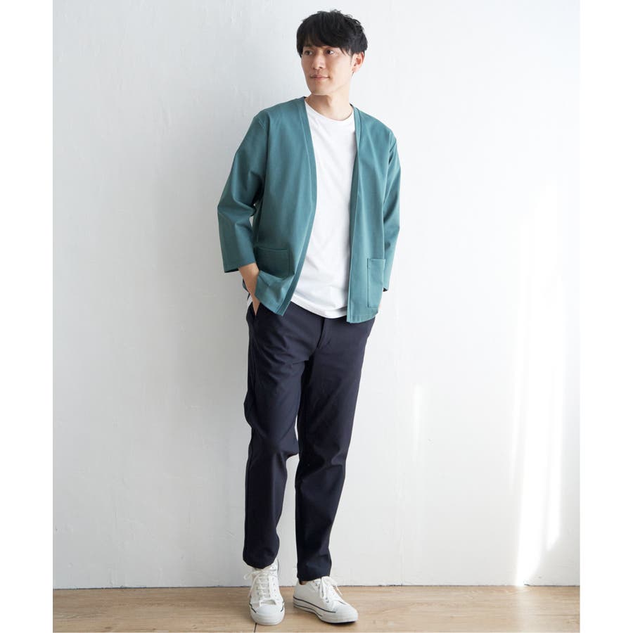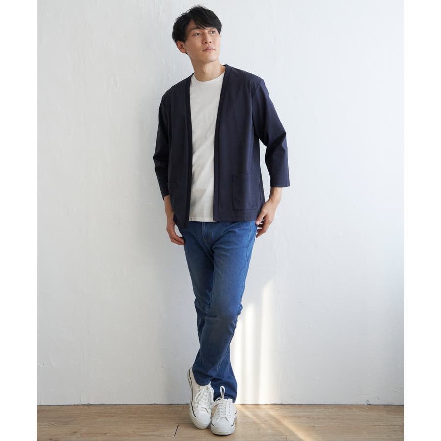 軽めの羽織りがほしい時に便利なボタンレスデザインです。