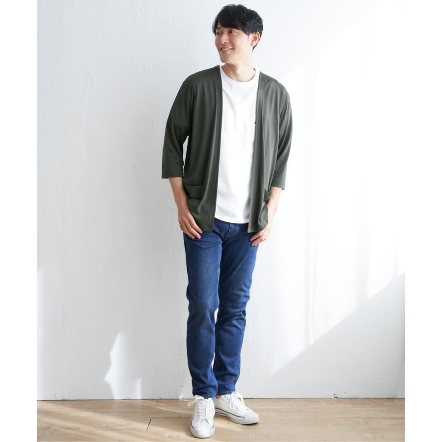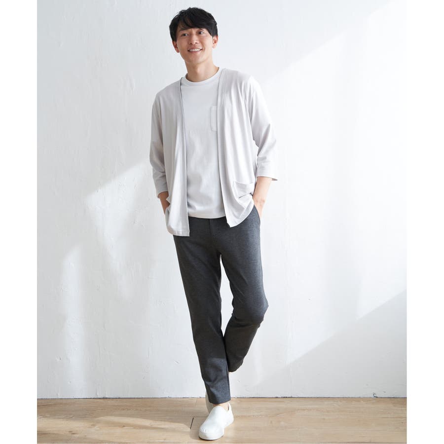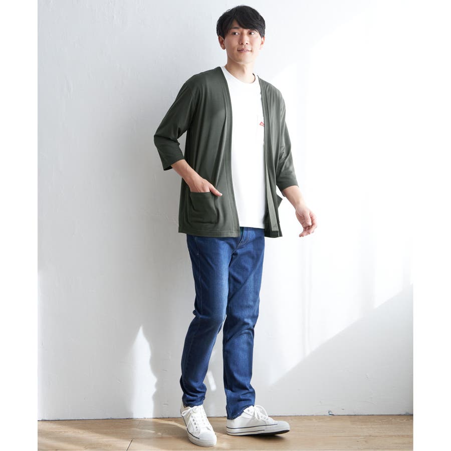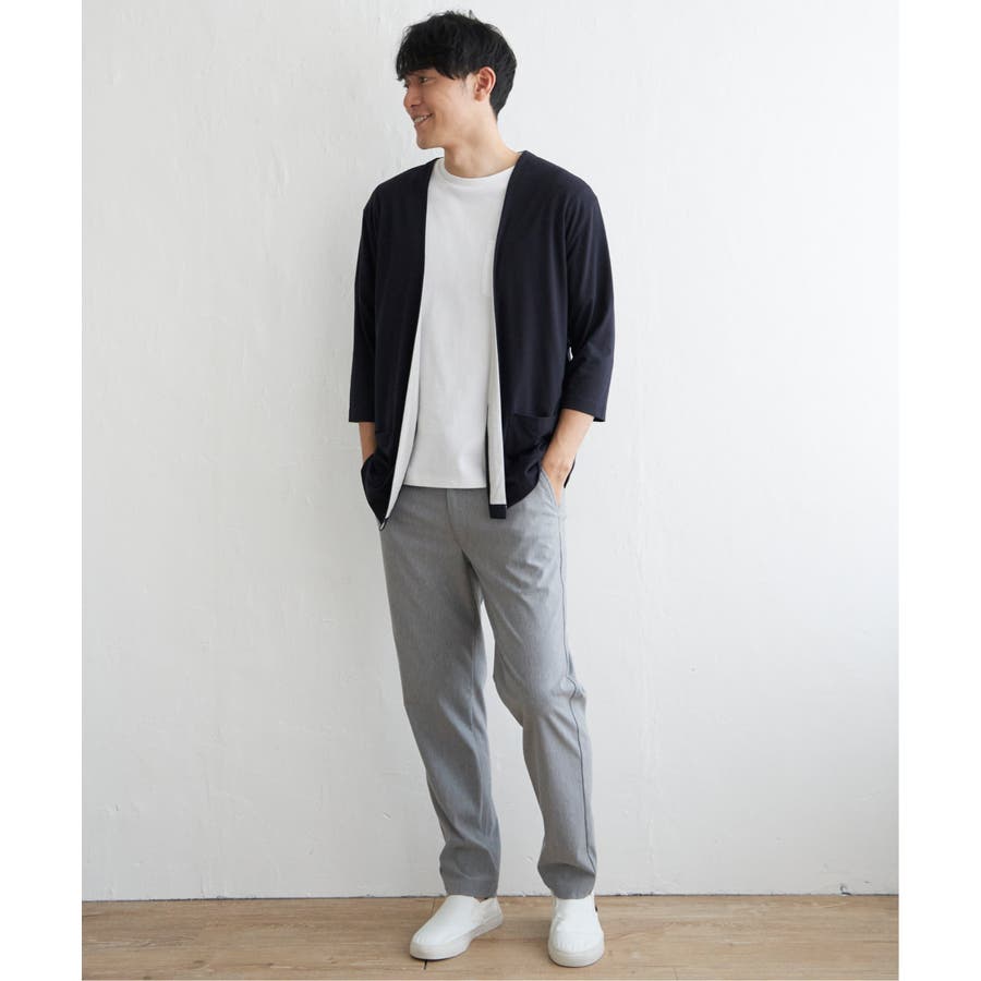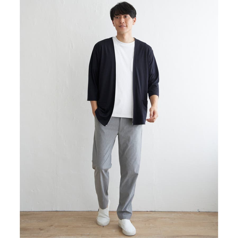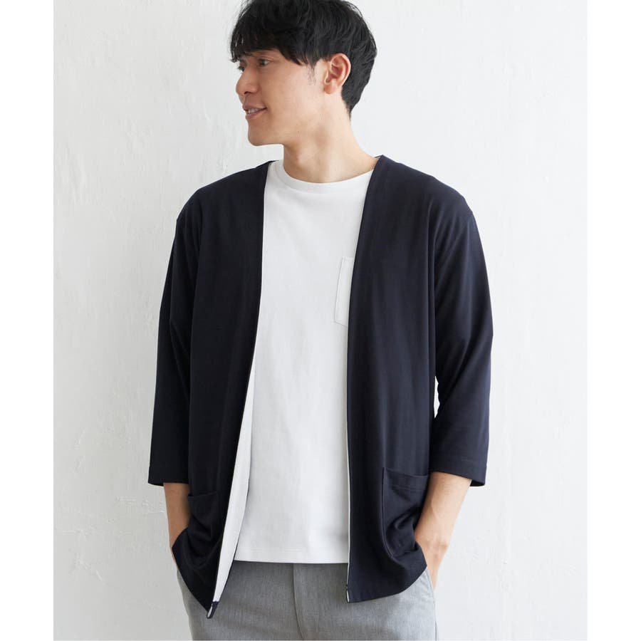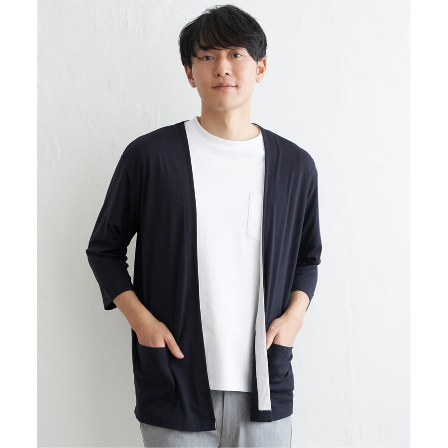軽めの羽織りがほしい時に便利な、7分袖&ボタンレスのカーディガン。