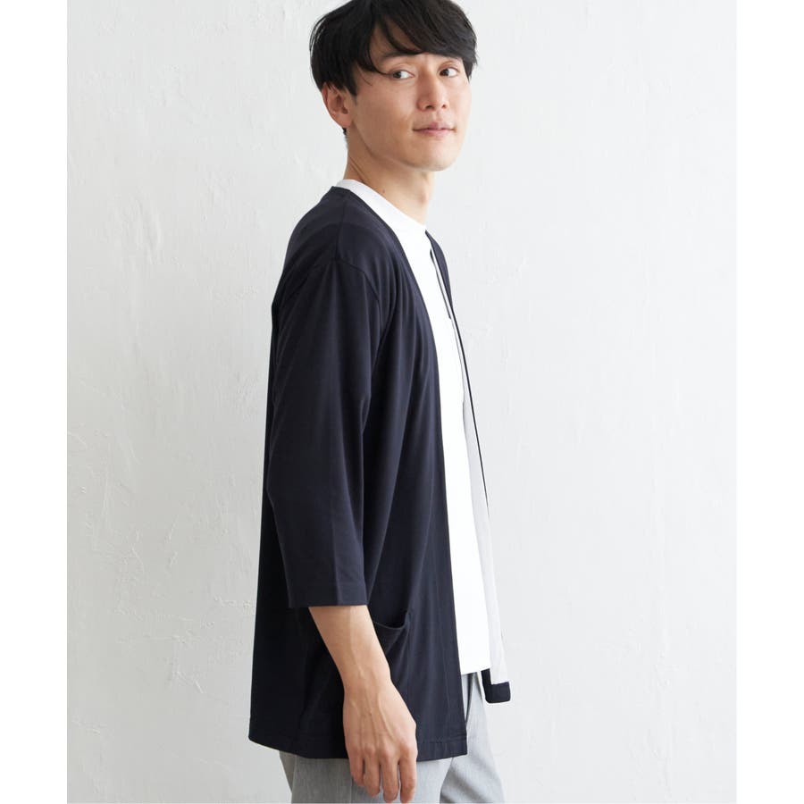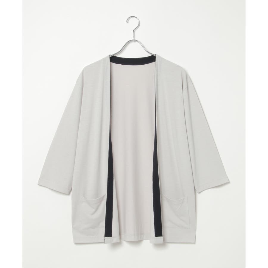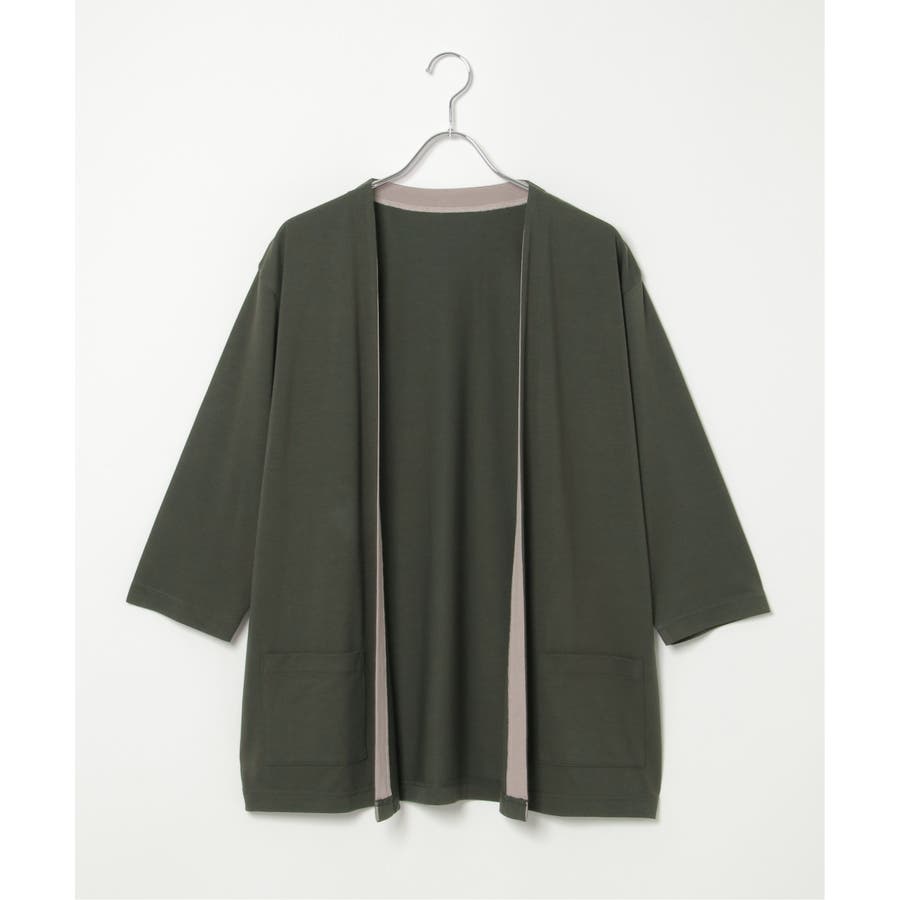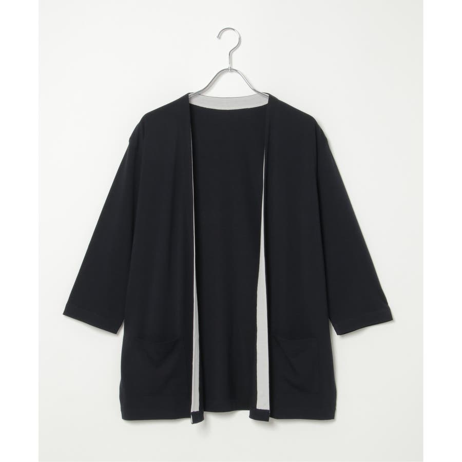 7分バイカラーボタンレスカーディガン