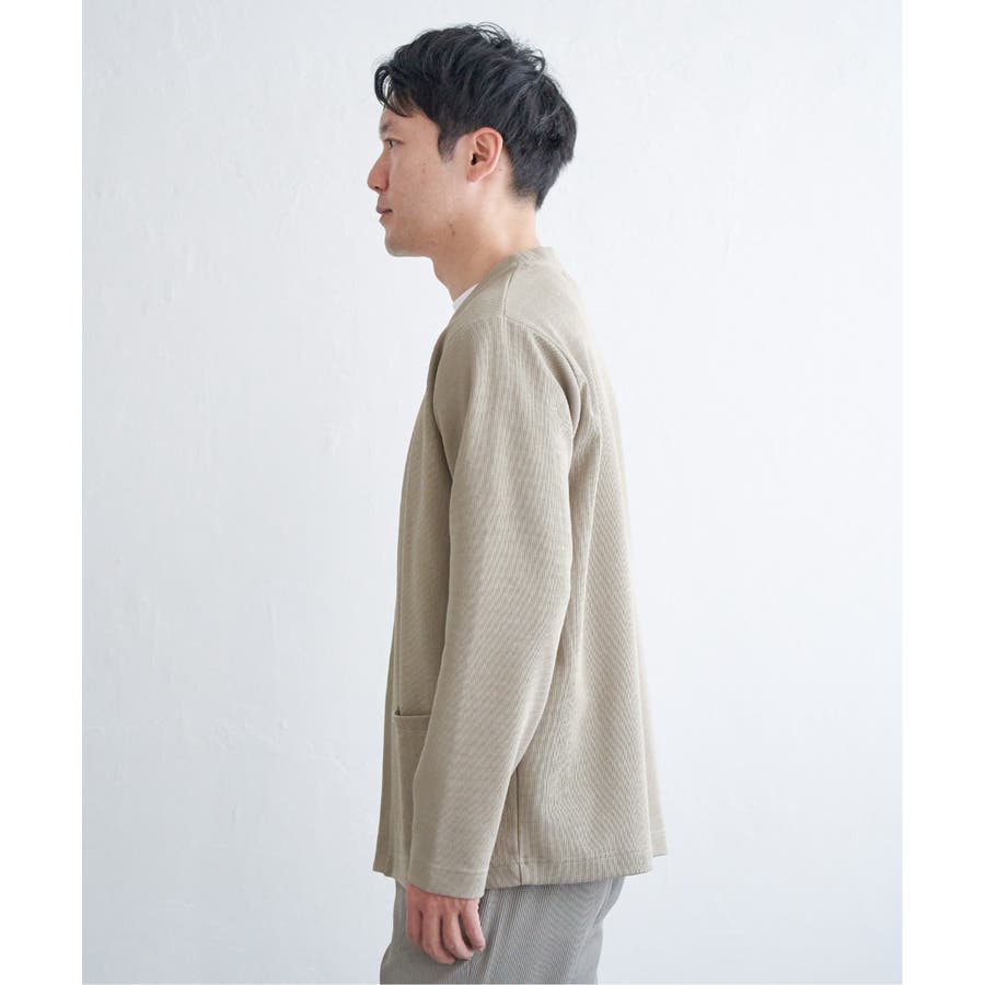 吸水速乾性を備えたハイパフォーマンスなカノコ素材のボタンレスカーディガン。