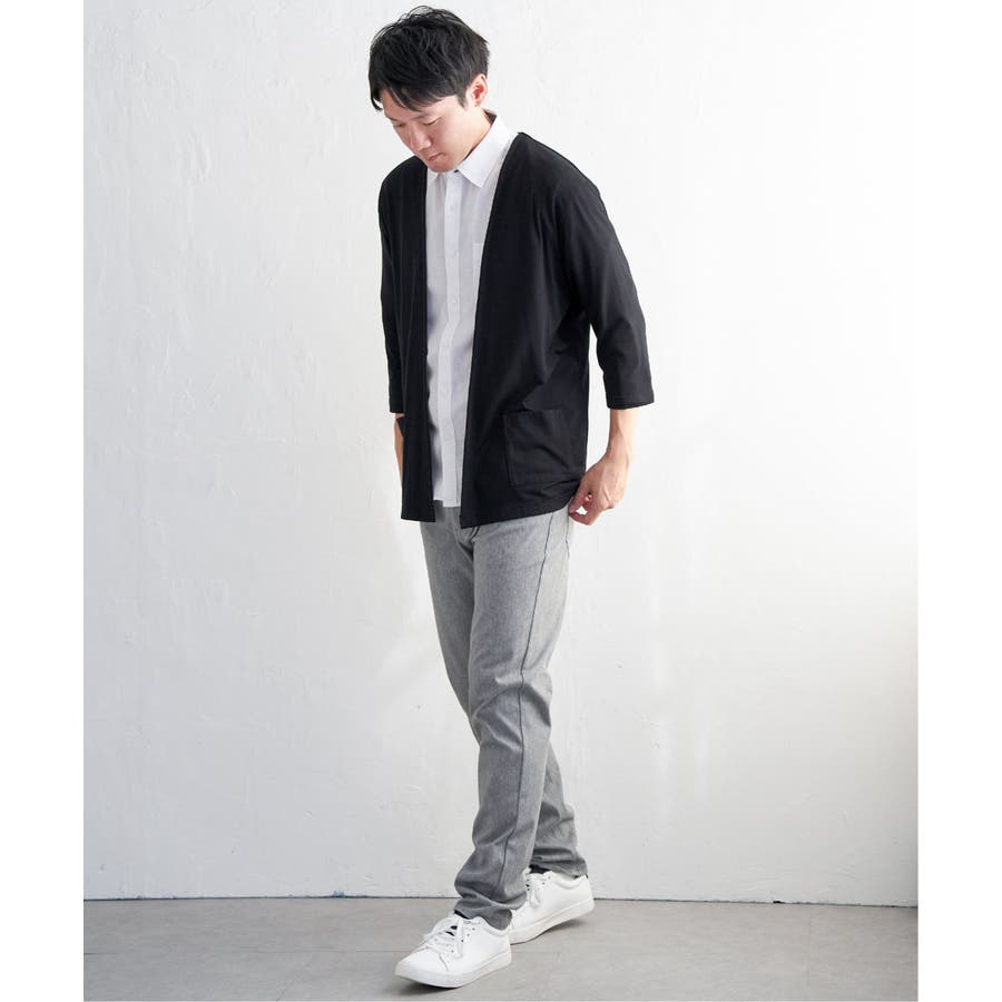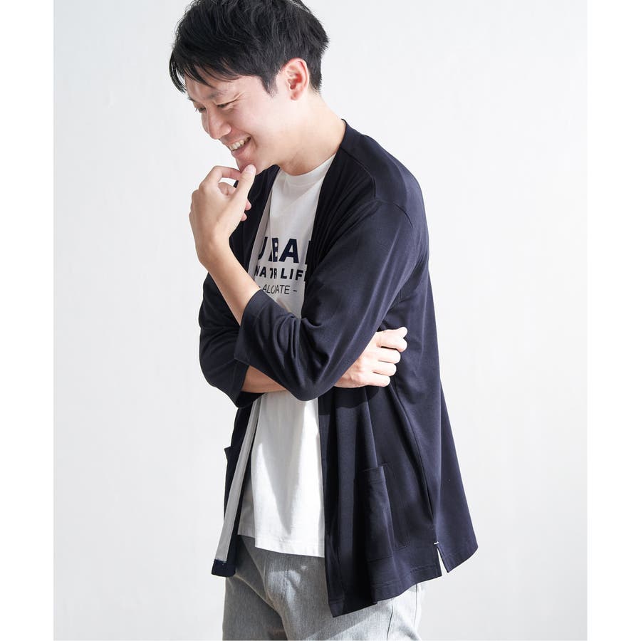 サラッと羽織れるボタンレスタイプの7分袖カーディガンです。