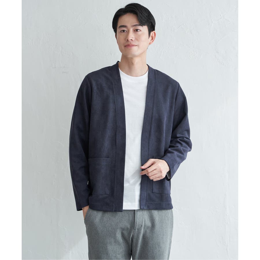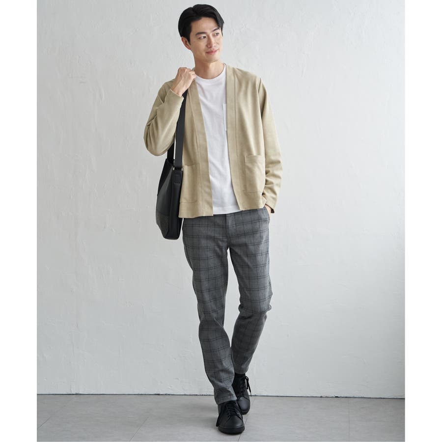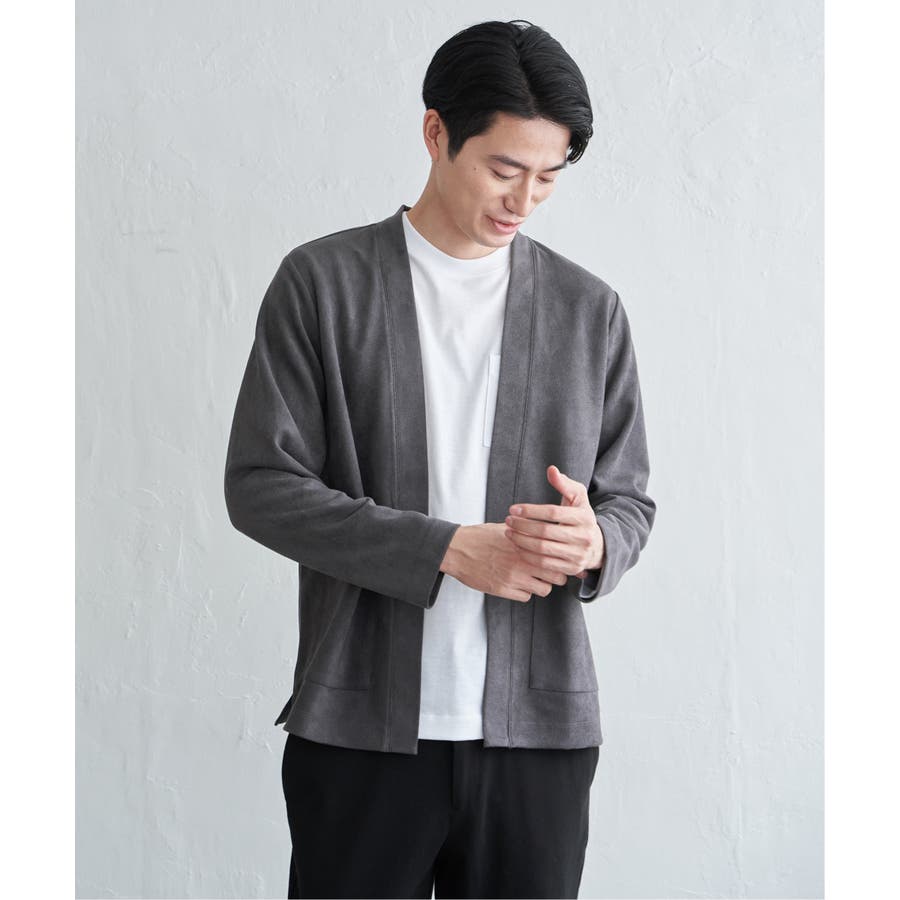 フェイクスエードのカーディガンと、着回し力の高い長袖Tシャツを組み合わせた便利な2点セット。