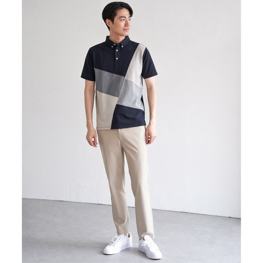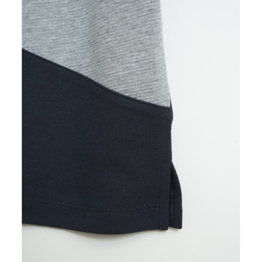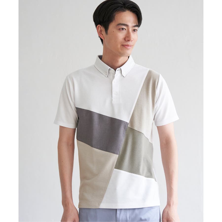 鹿の子・リップル・布帛の異素材切り替えコンビのポロシャツ。