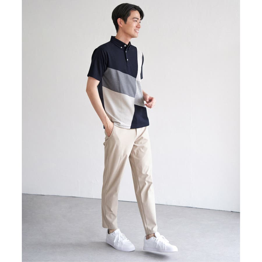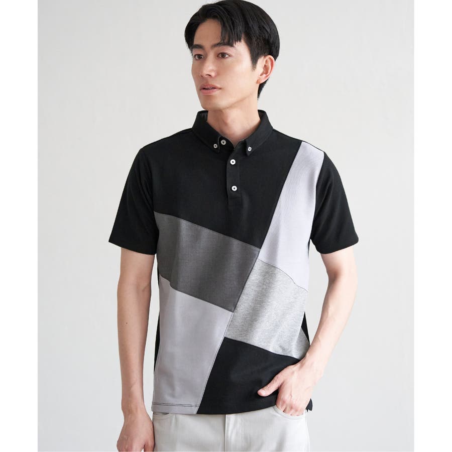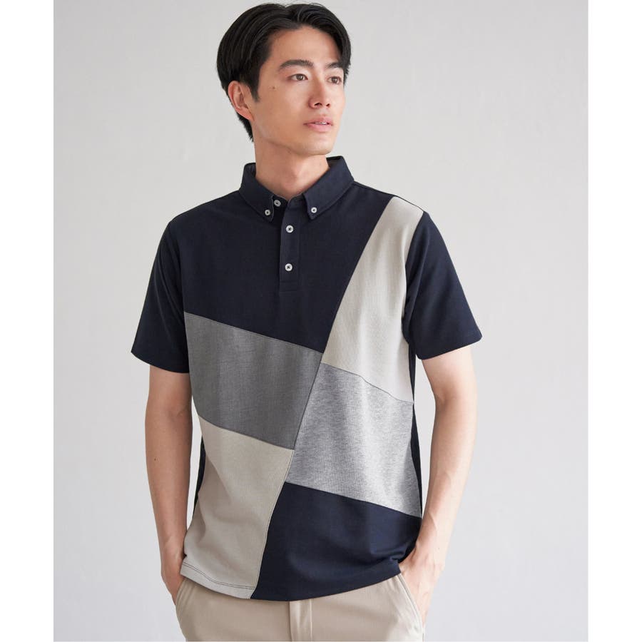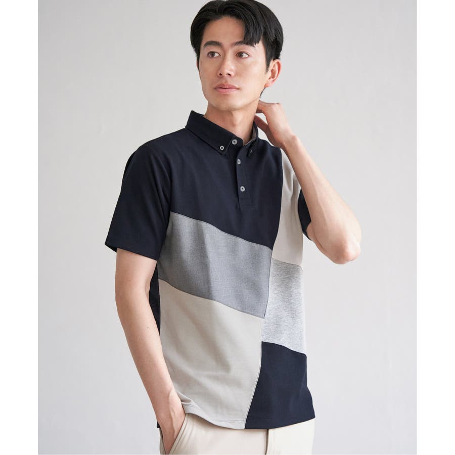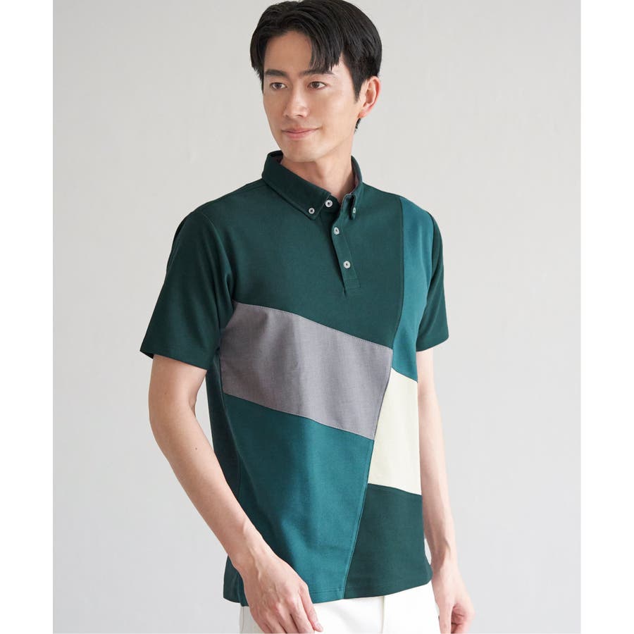 ブロックス鹿の子ナナメ切り替えポロシャツ
