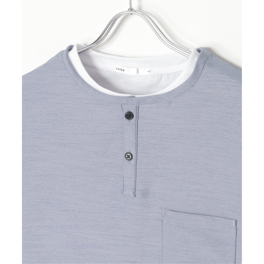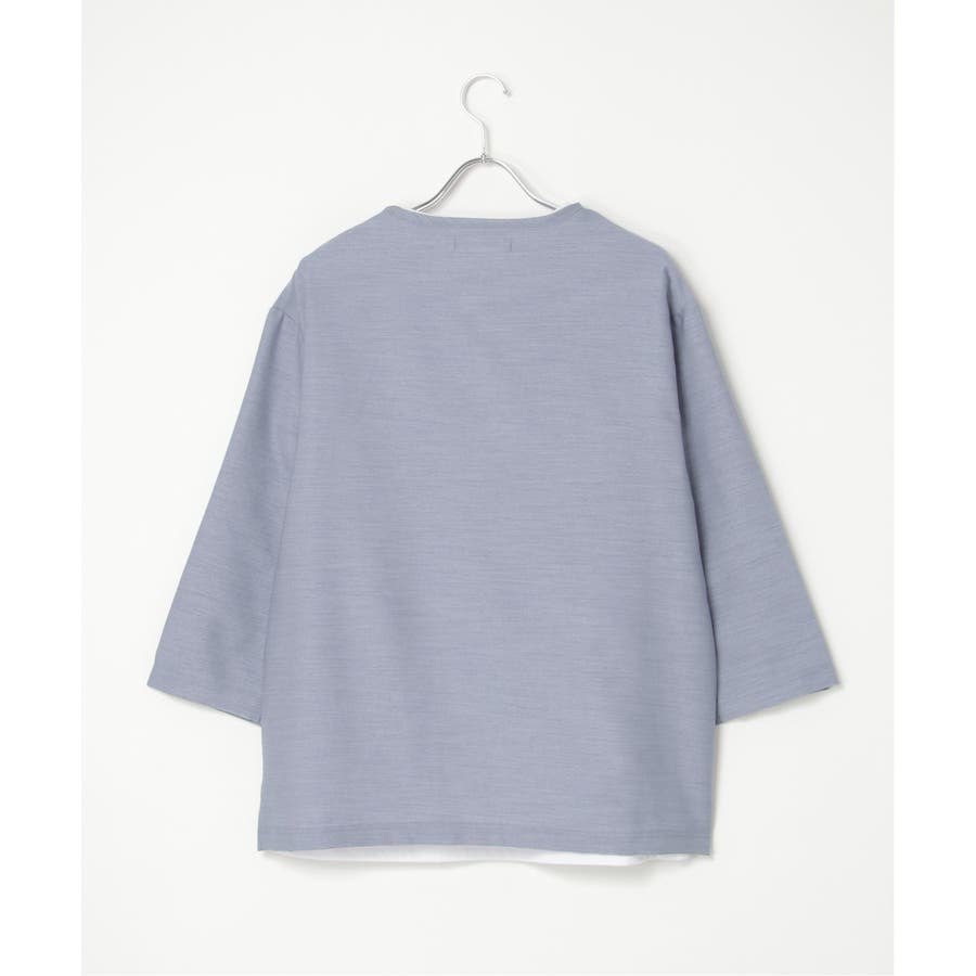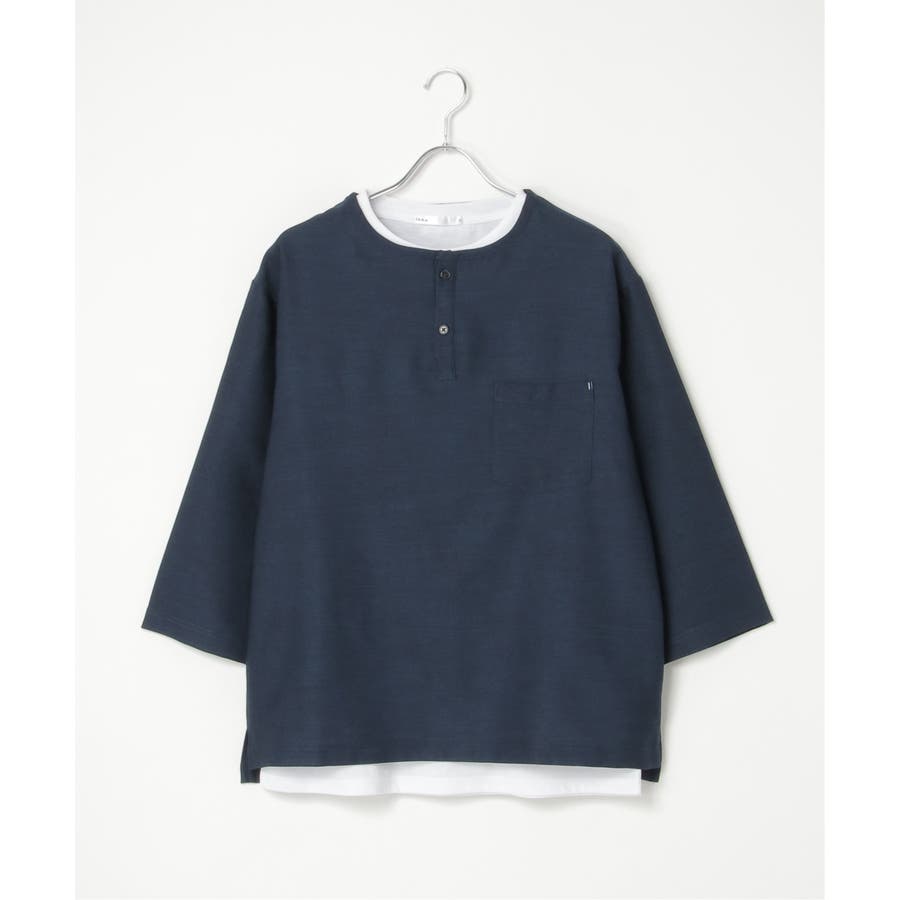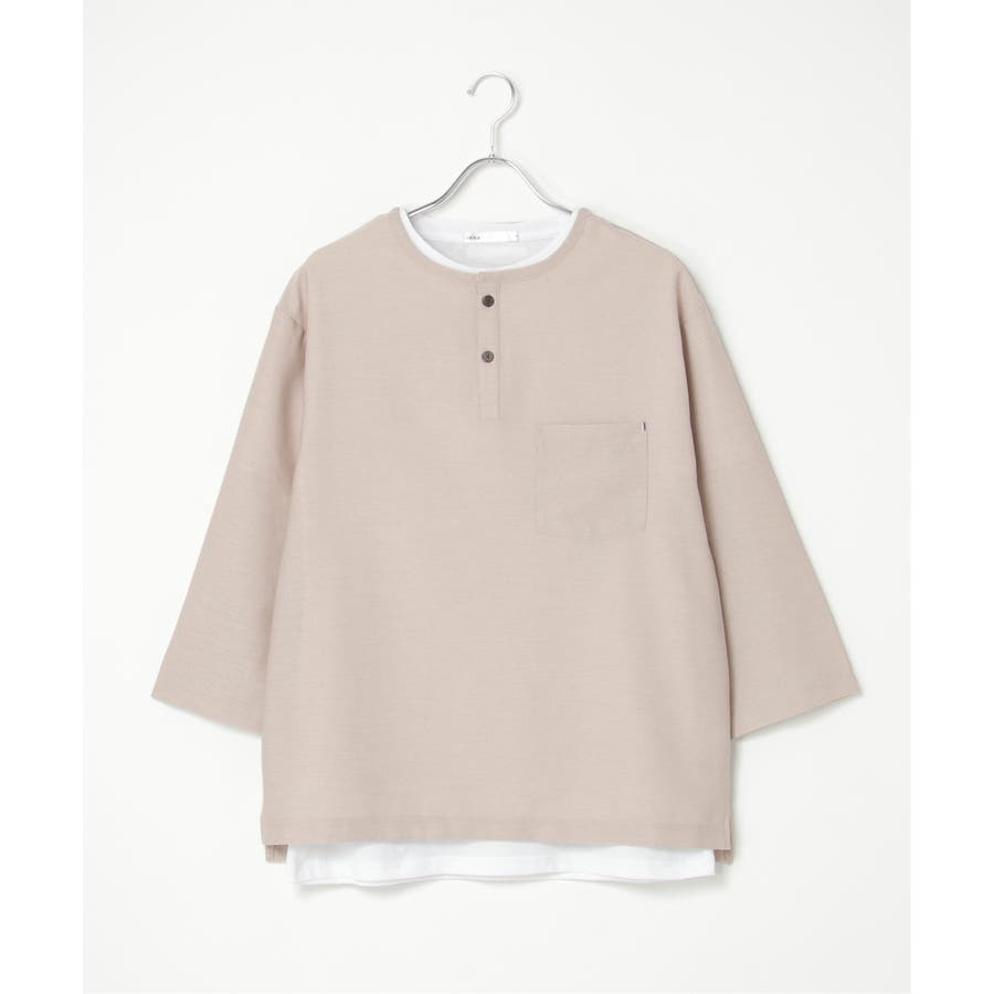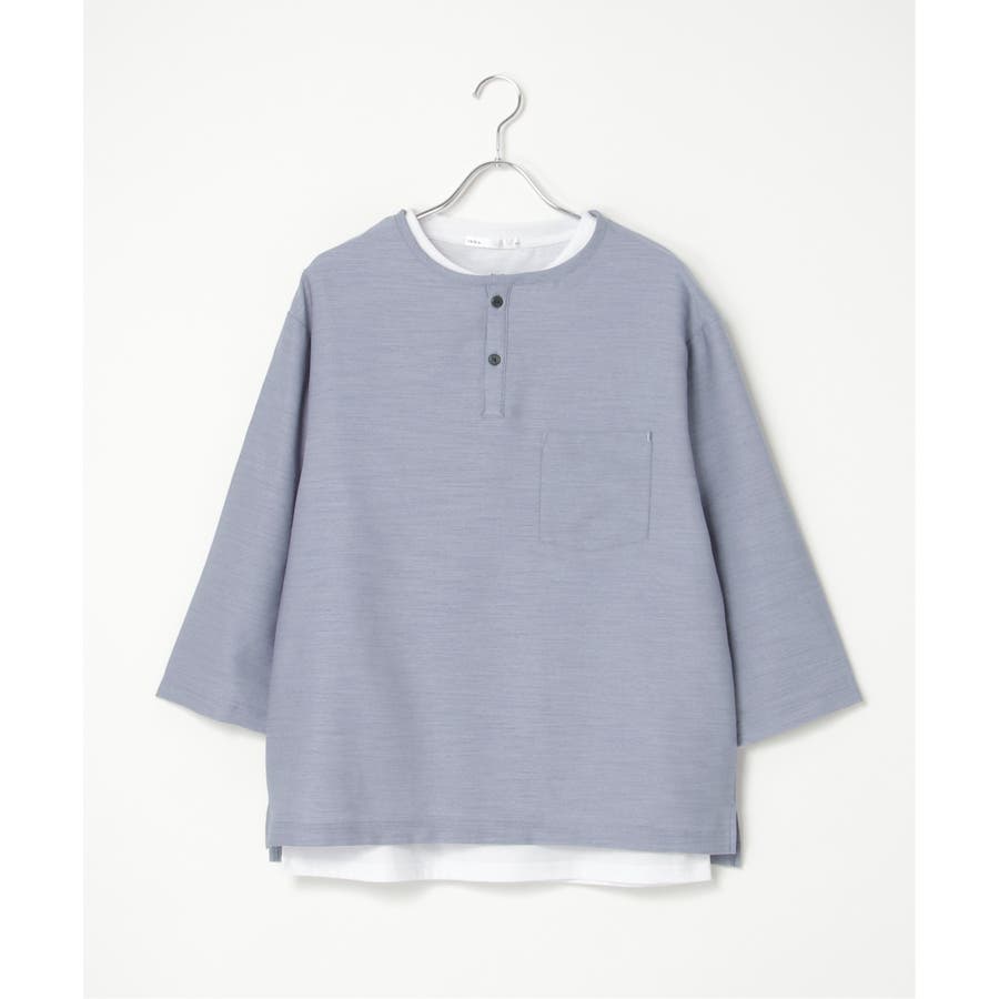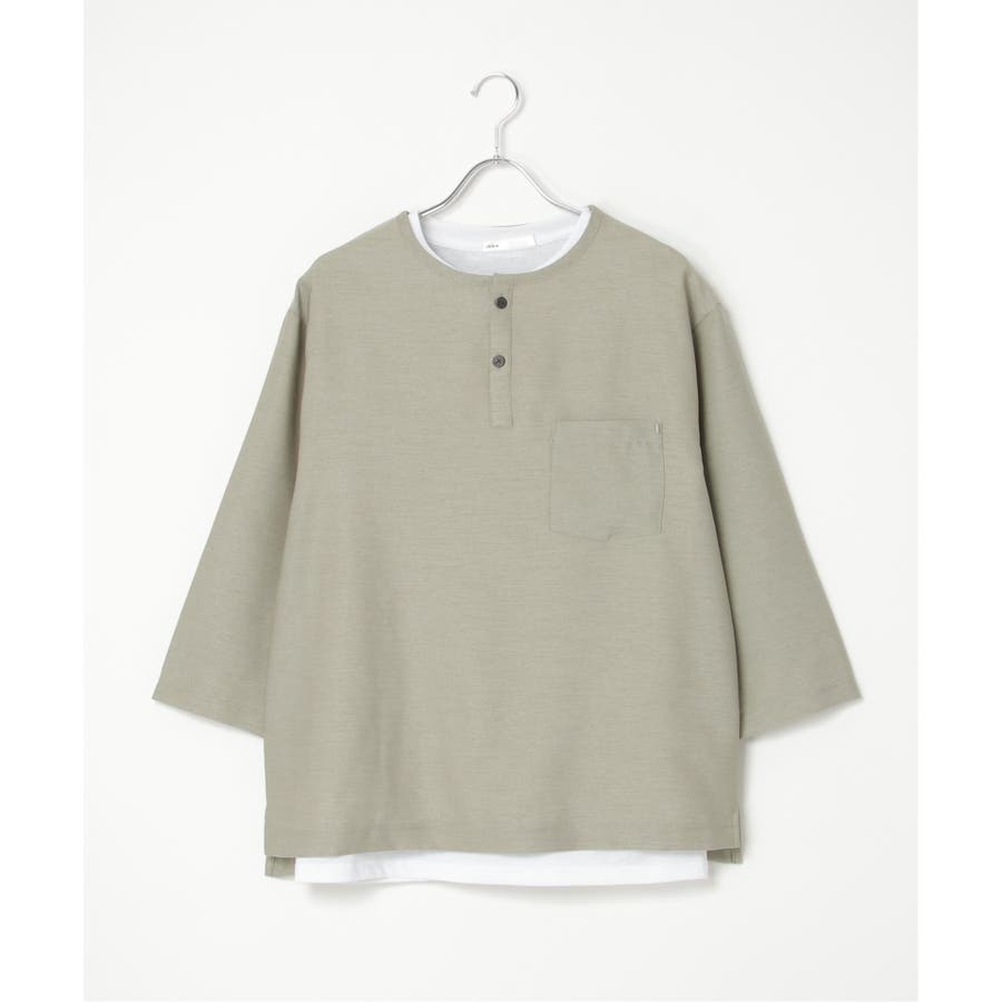ヘンリーネックのトップスに、半袖インナーが付いたセットアイテム。