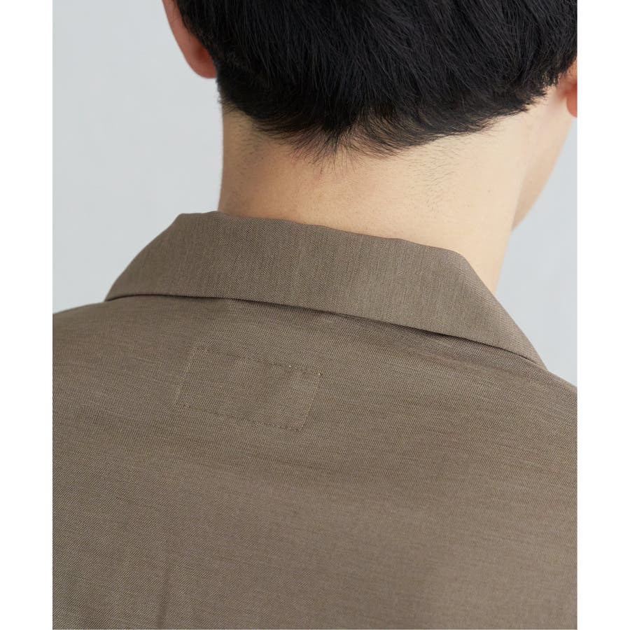 前身頃上部で大胆に切り替えたオープンカラーシャツ。