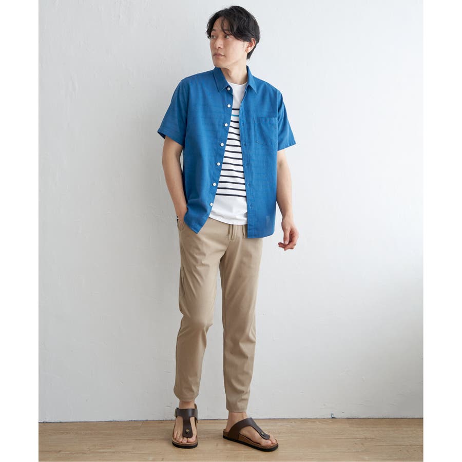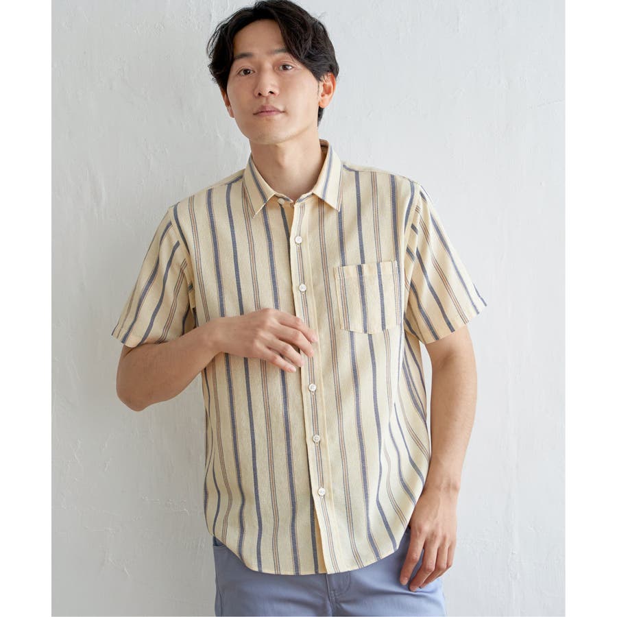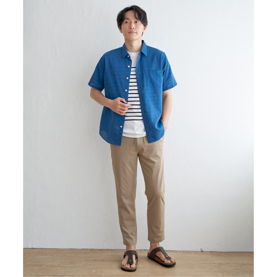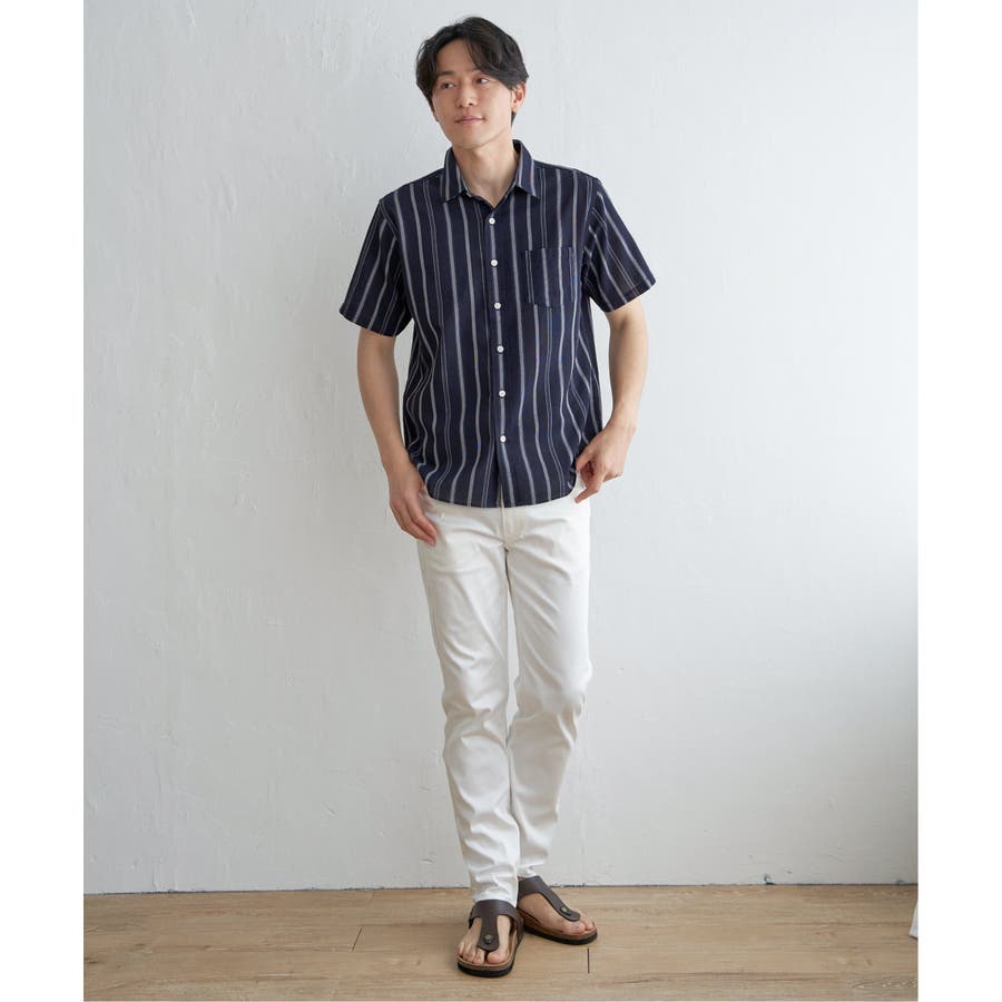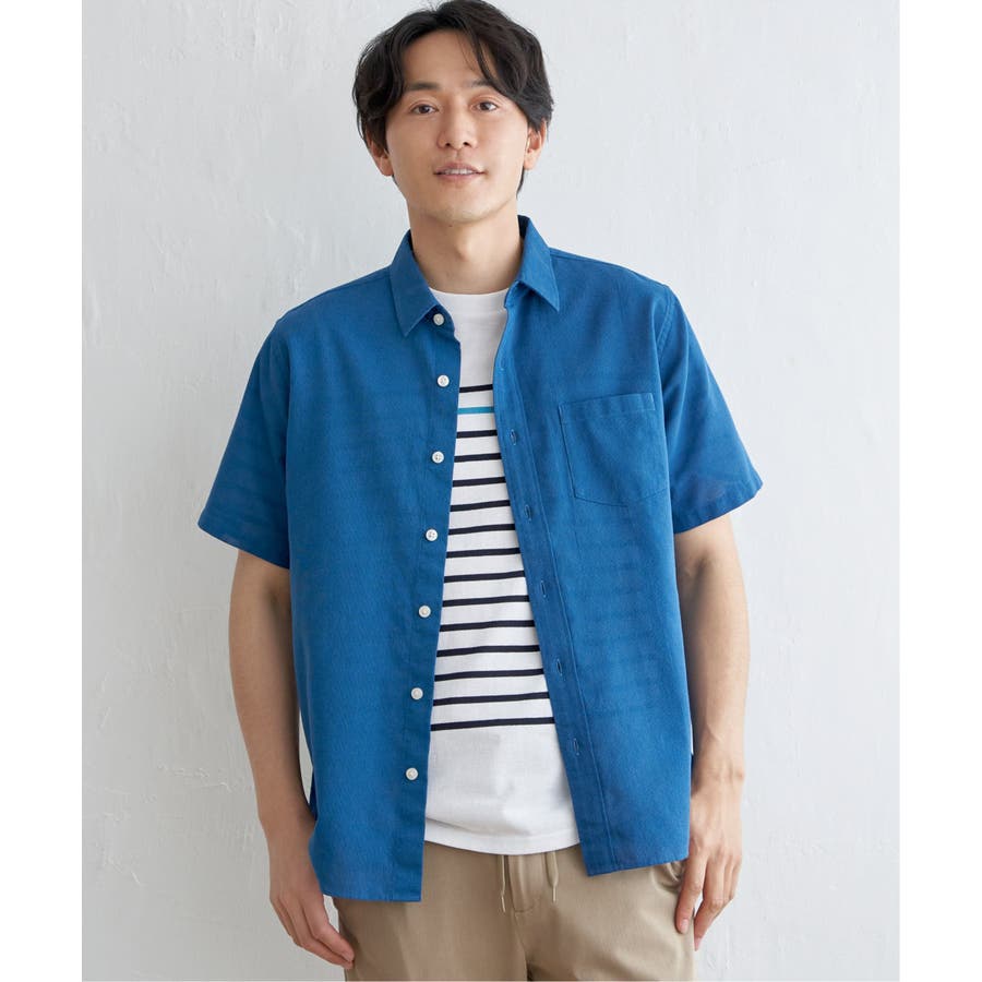 肌触りと通気性に優れたパナマ織りの半袖シャツ。