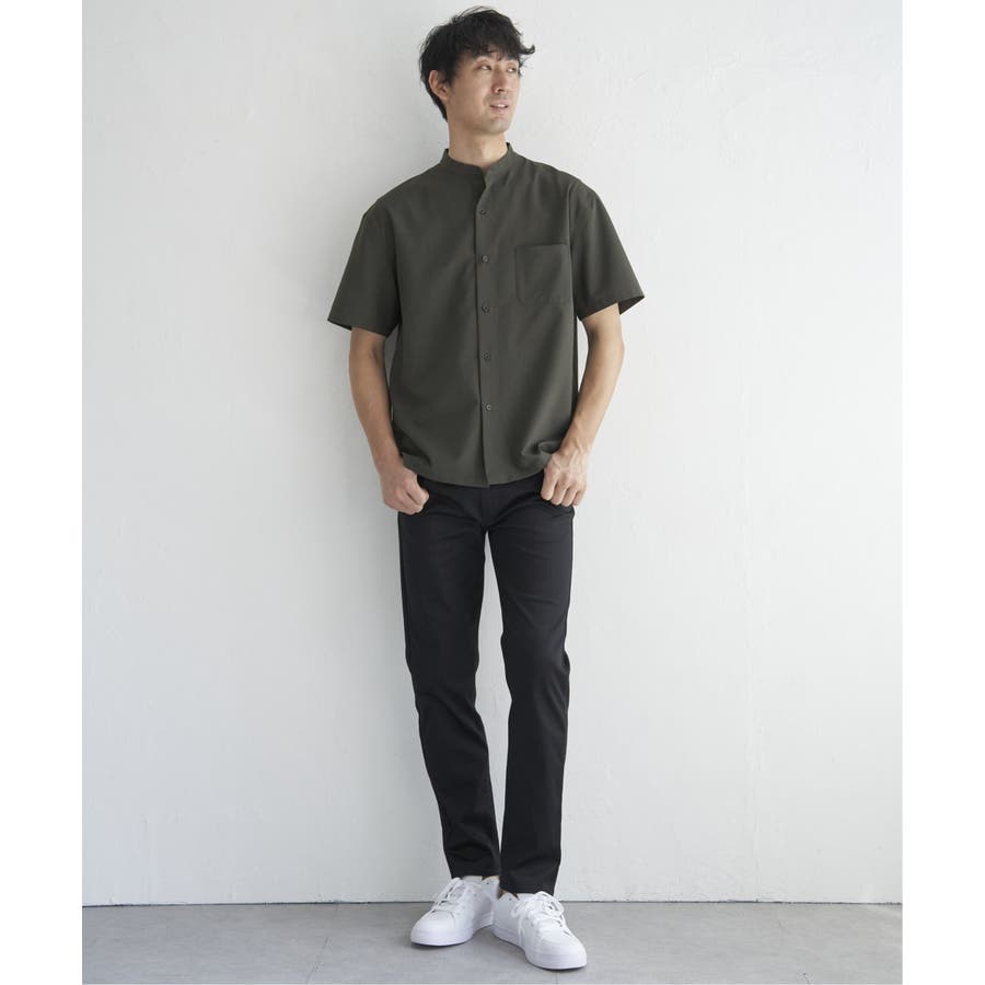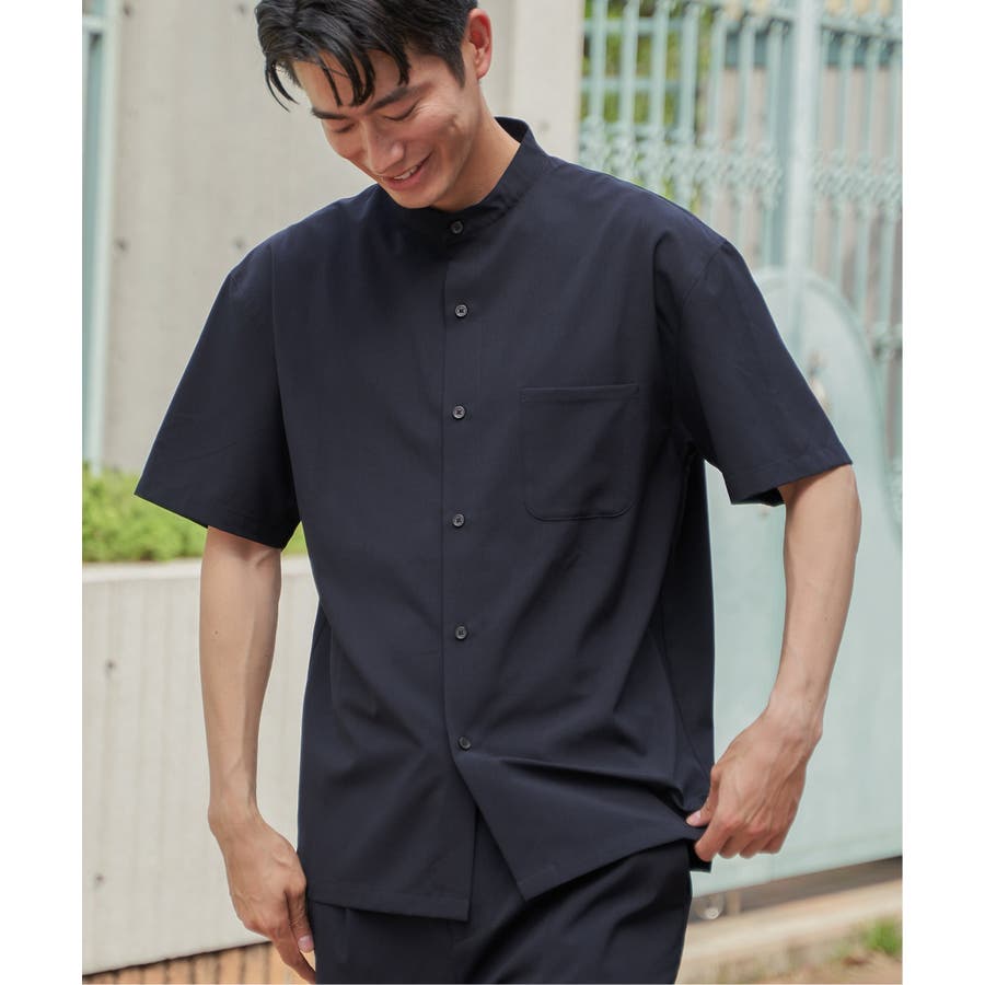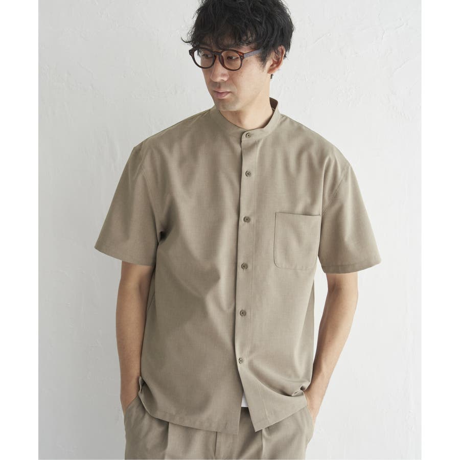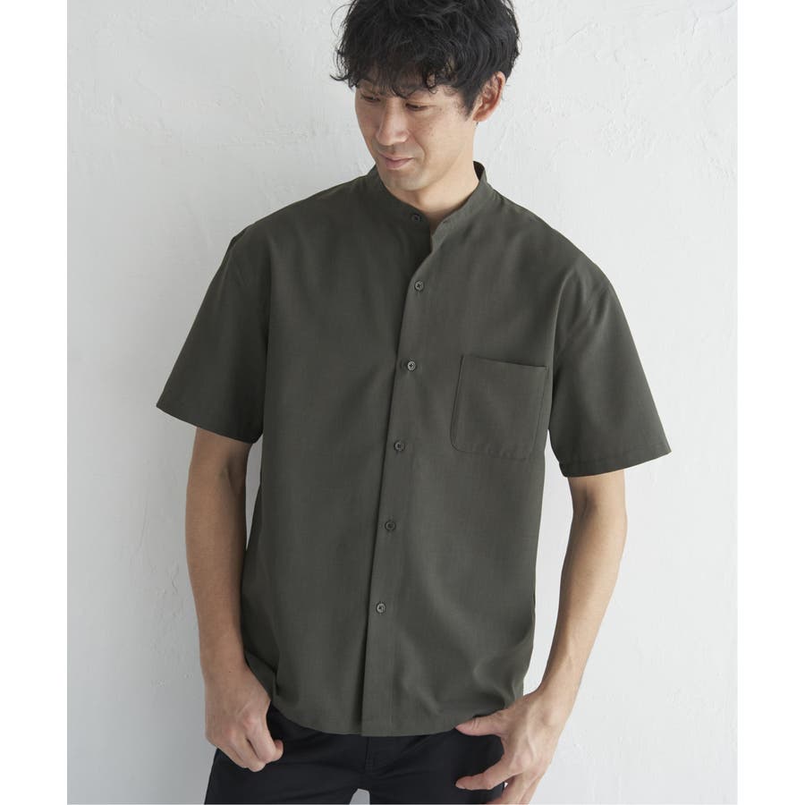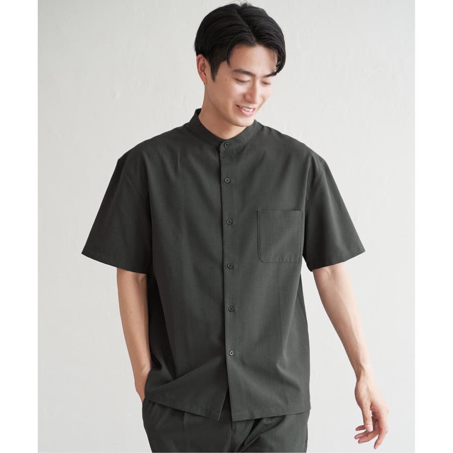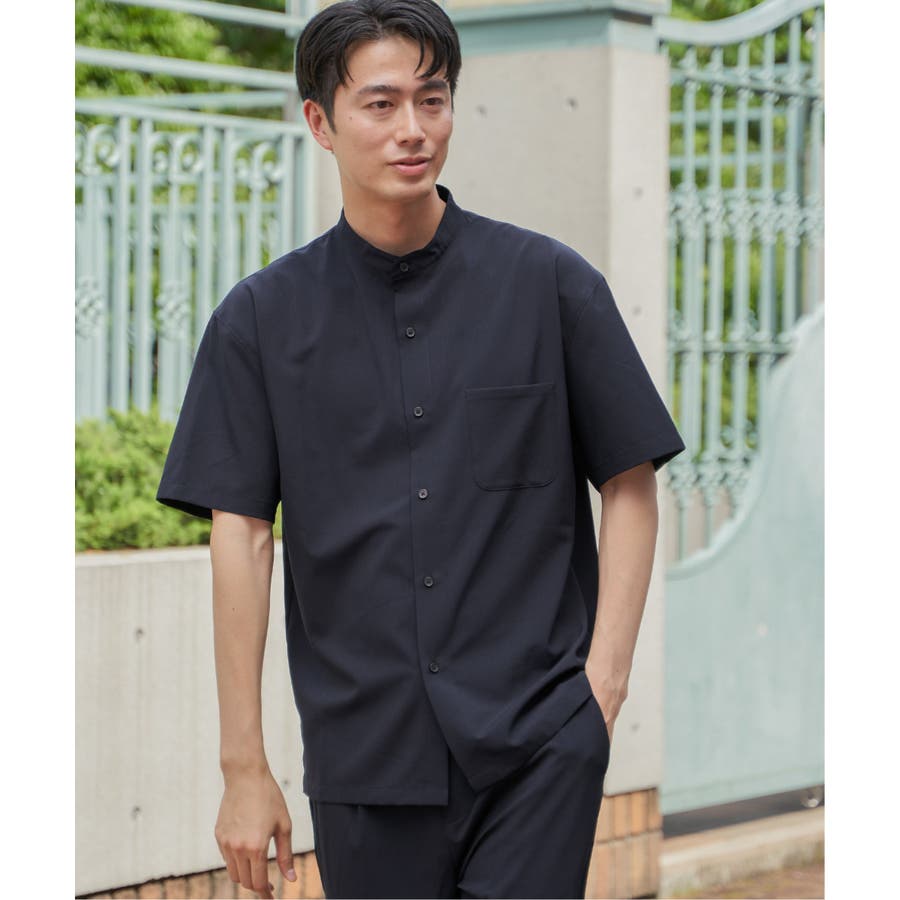 機能素材が魅力の着心地抜群のバンドカラーシャツ。