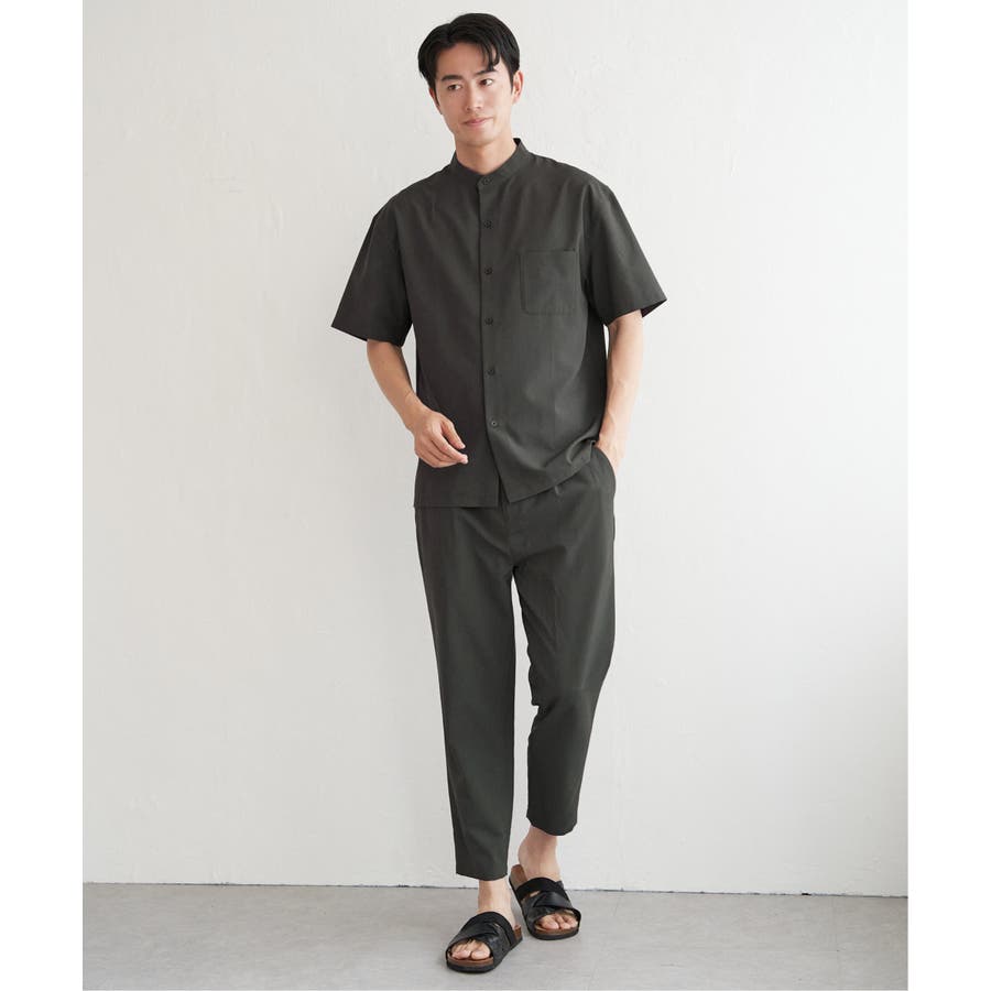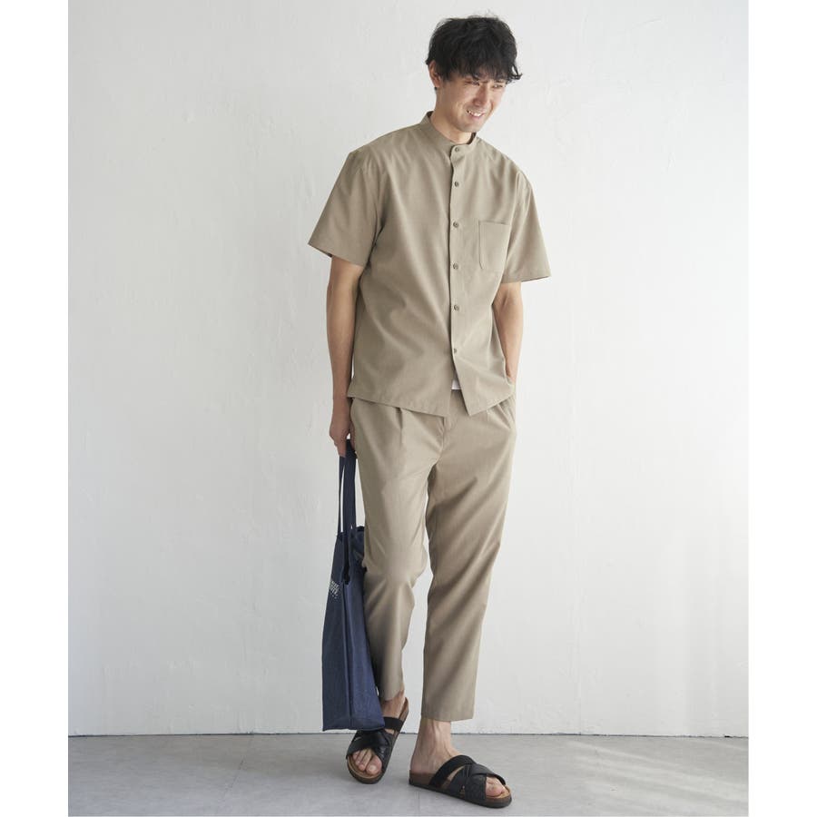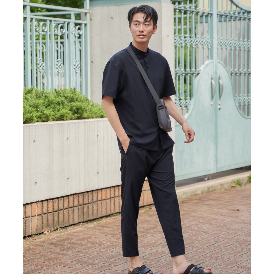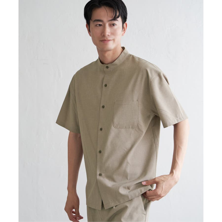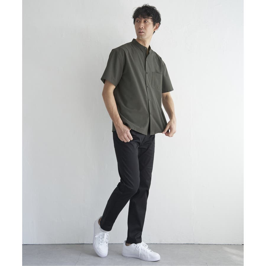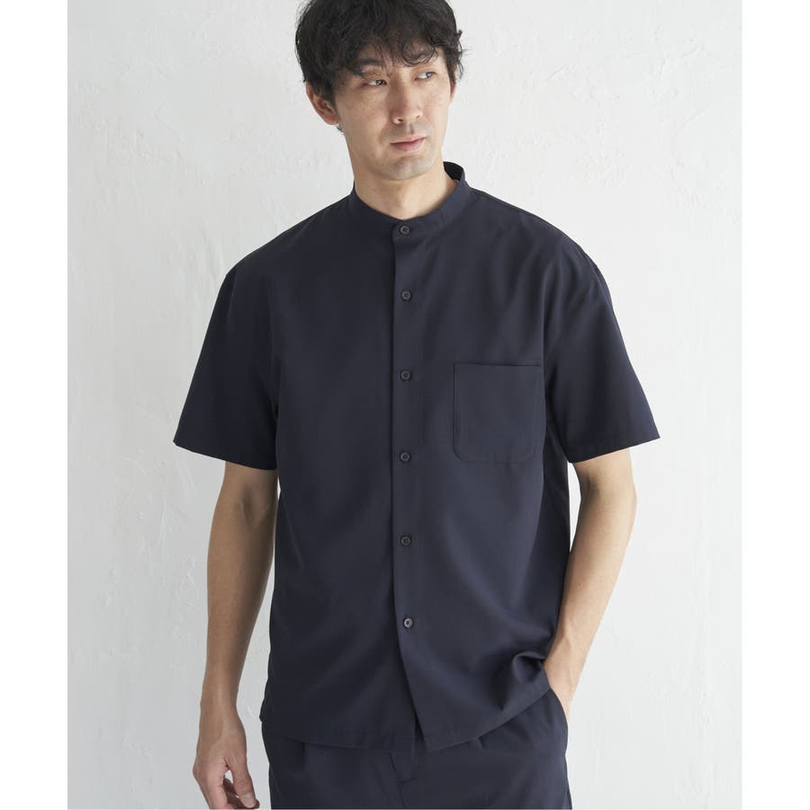 機能素材が魅力の着心地抜群のバンドカラーシャツ。